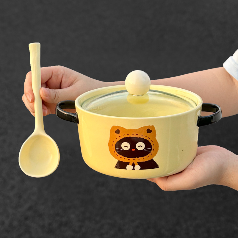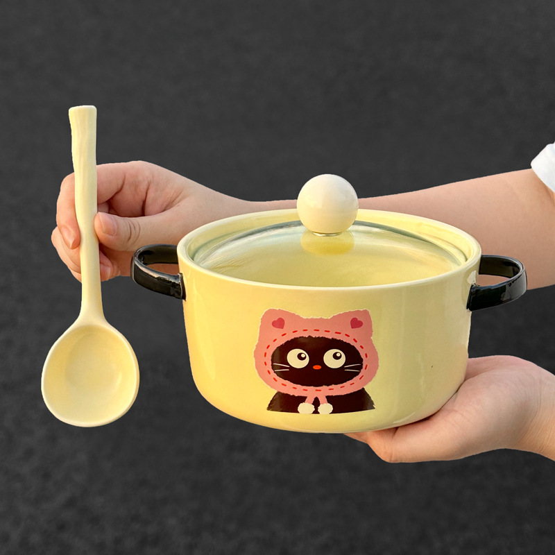 Ins 스타일 귀여운 고양이 세라믹 즉석 국수 그릇 소녀 생일 선물 동반식을위한 학생 기숙사 즉석 국수 그릇스토어 가기