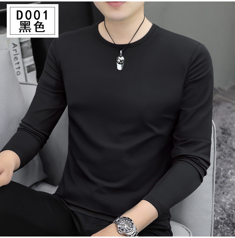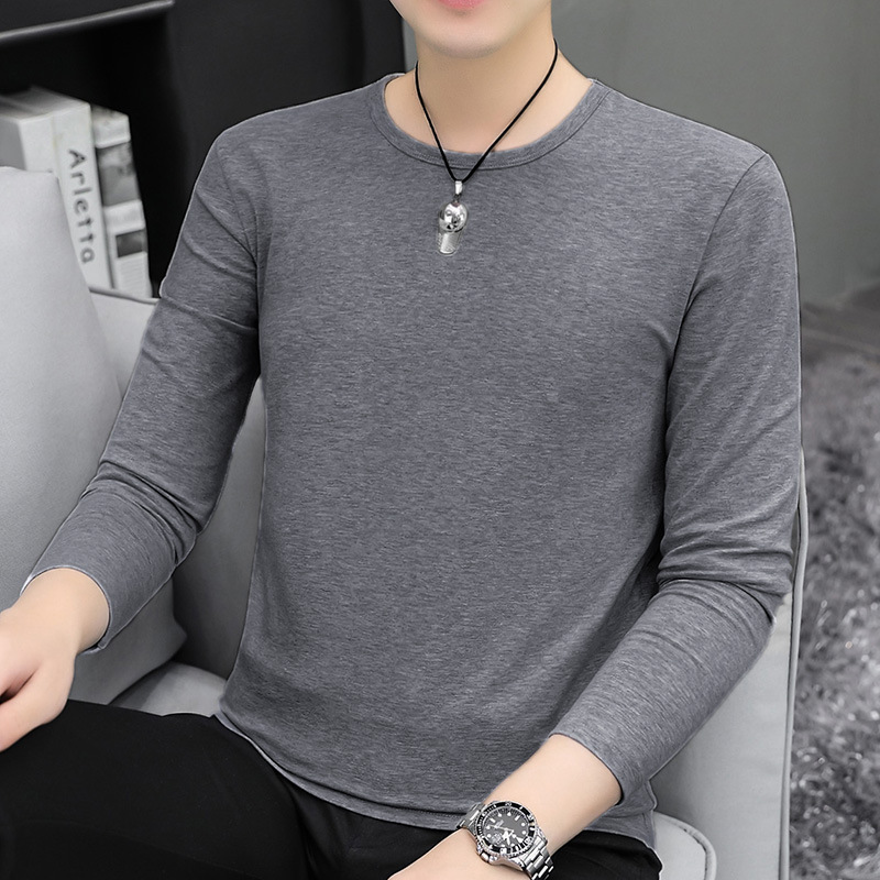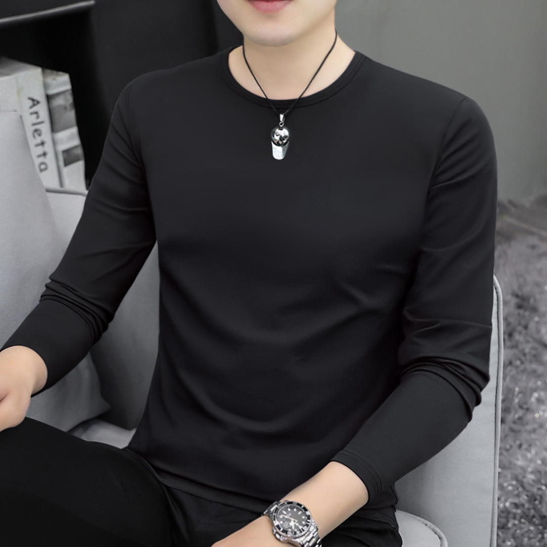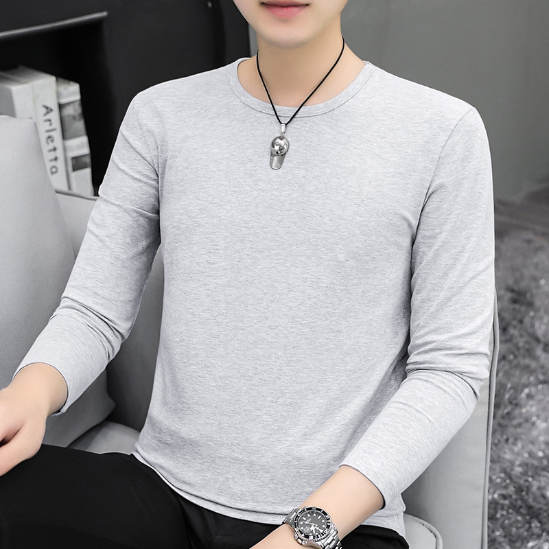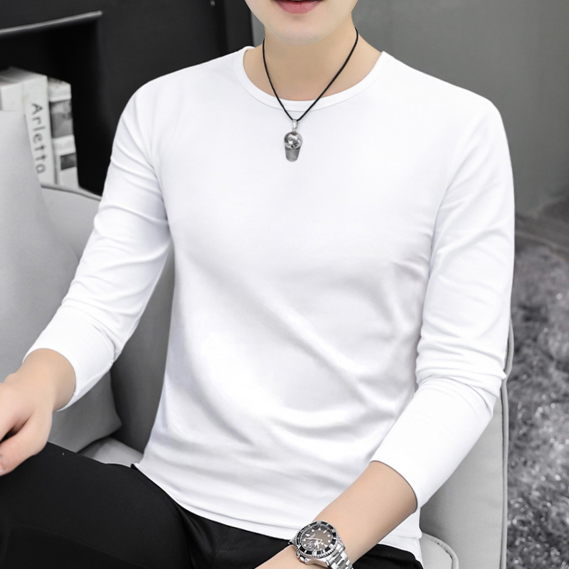 남자 긴팔 티셔츠 솔리드 컬러 퓨어 코튼 화이트 라운드 넥 가을과 겨울 캐주얼 올매치 베이스 셔츠 탑스토어 가기