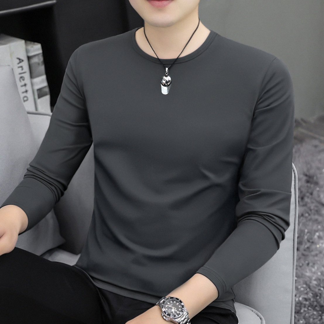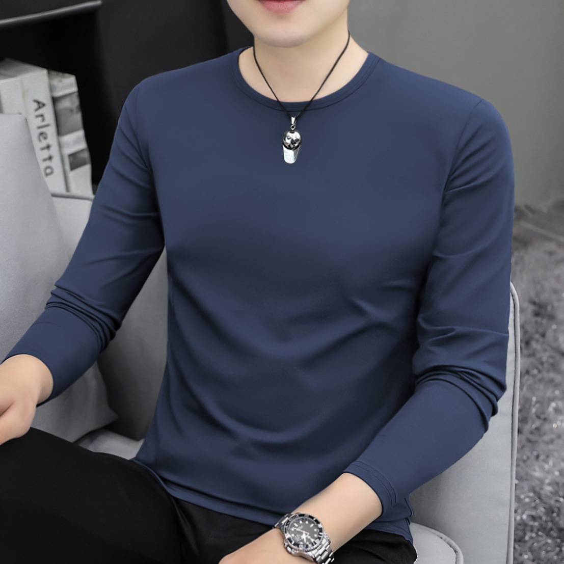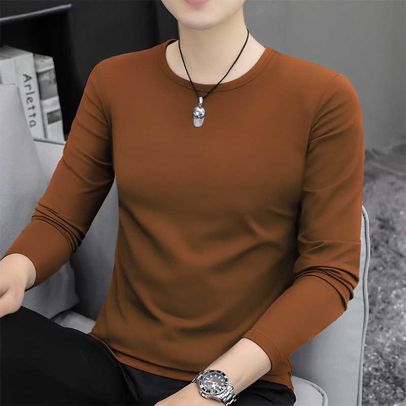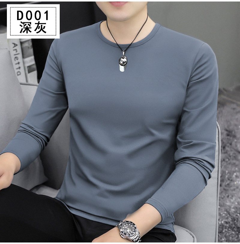 남자 긴팔 티셔츠 솔리드 컬러 퓨어 코튼 화이트 라운드 넥 가을과 겨울 캐주얼 올매치 베이스 셔츠 탑스토어 가기