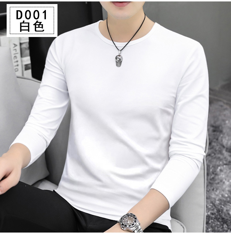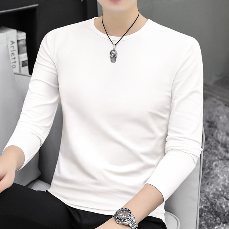 남자 긴팔 티셔츠 솔리드 컬러 퓨어 코튼 화이트 라운드 넥 가을과 겨울 캐주얼 올매치 베이스 셔츠 탑