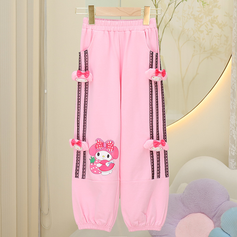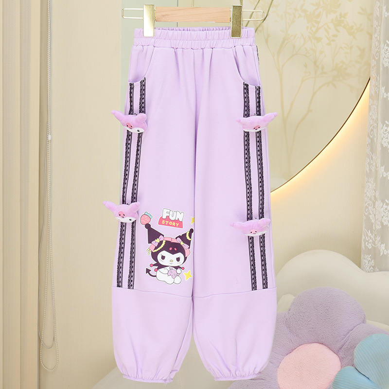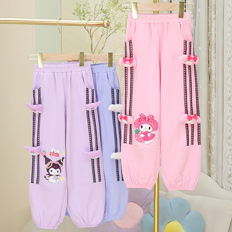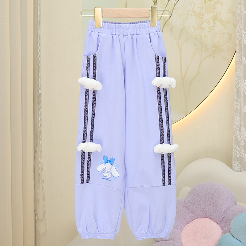 2024 가을과 겨울 새로운 소녀 면화 느슨한 운동복 어린이 귀여운 외부 착용 긴 바지 캐주얼 스포츠 바지 트렌디
