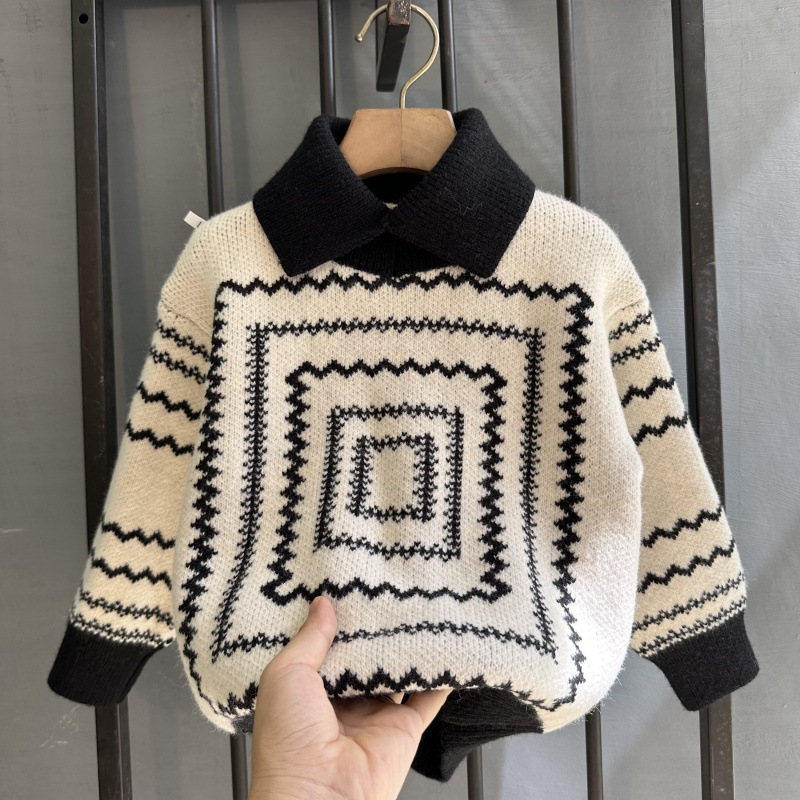 한국식 폴로 칼라 어린이 스웨터 레트로 스타일 소년 가을과 겨울 두꺼운 새 겨울 아기의 스웨터 플립 칼라 패션