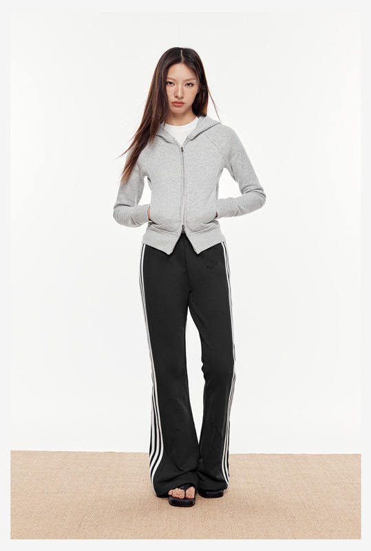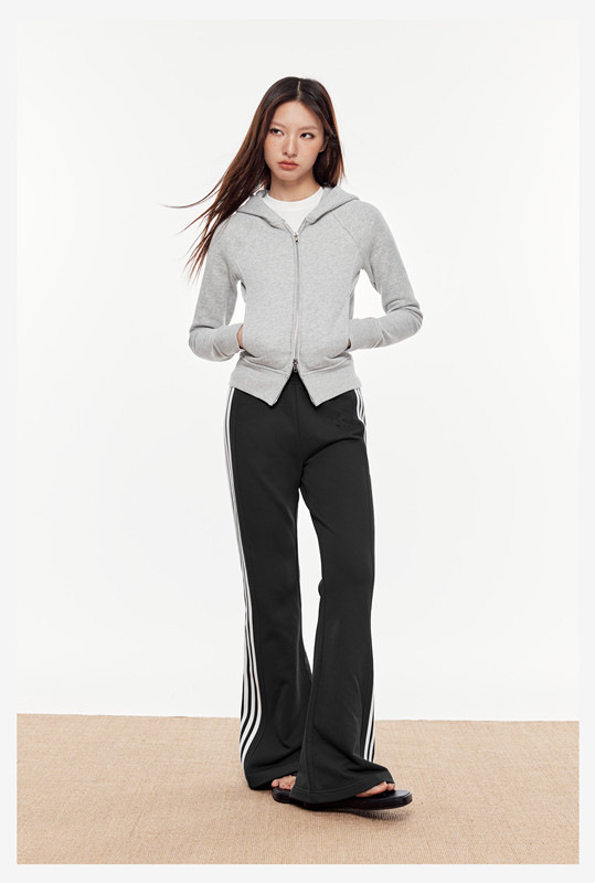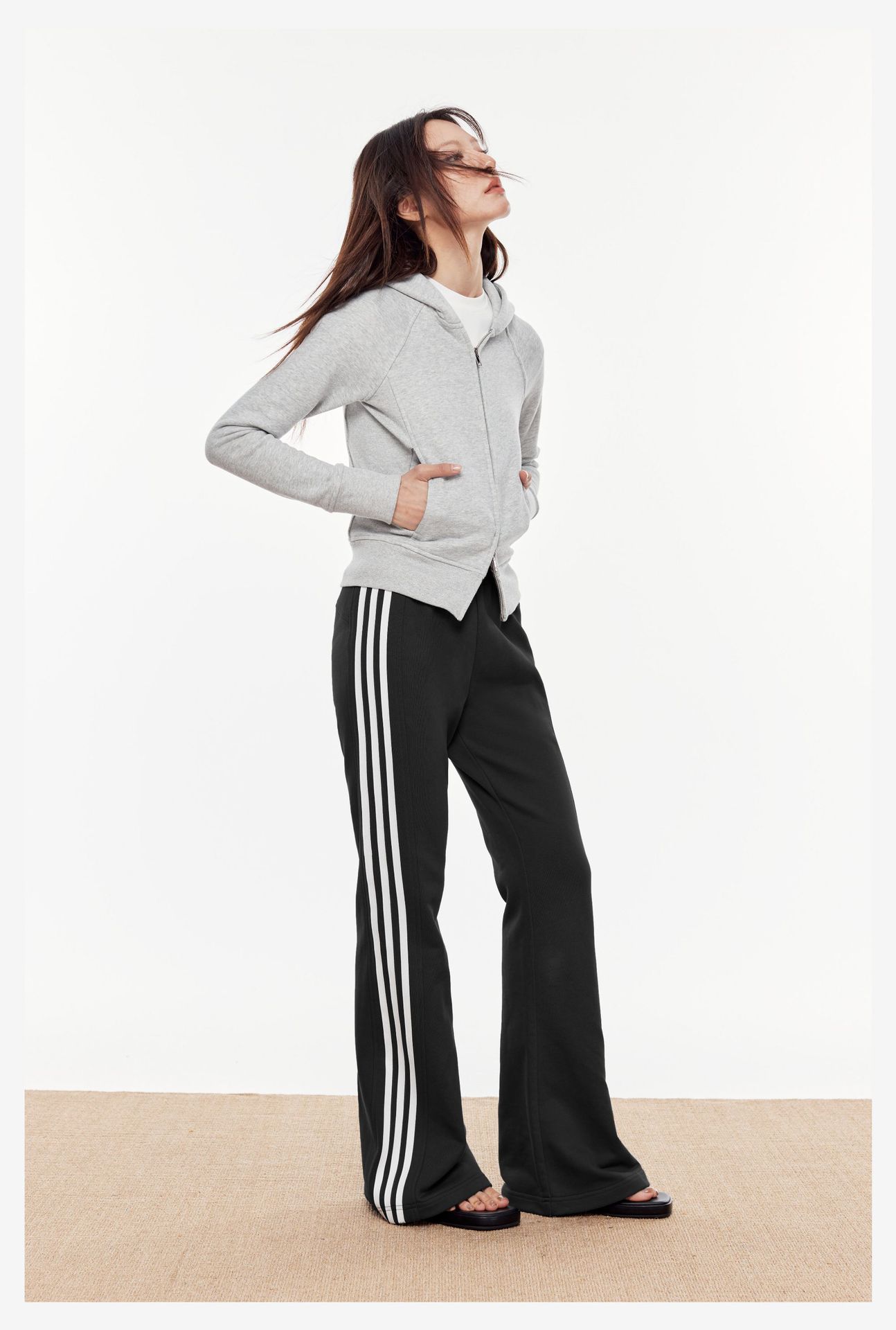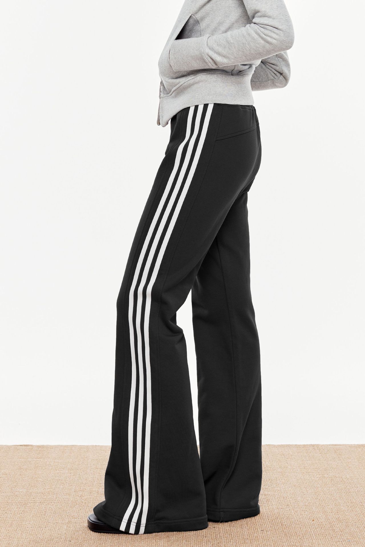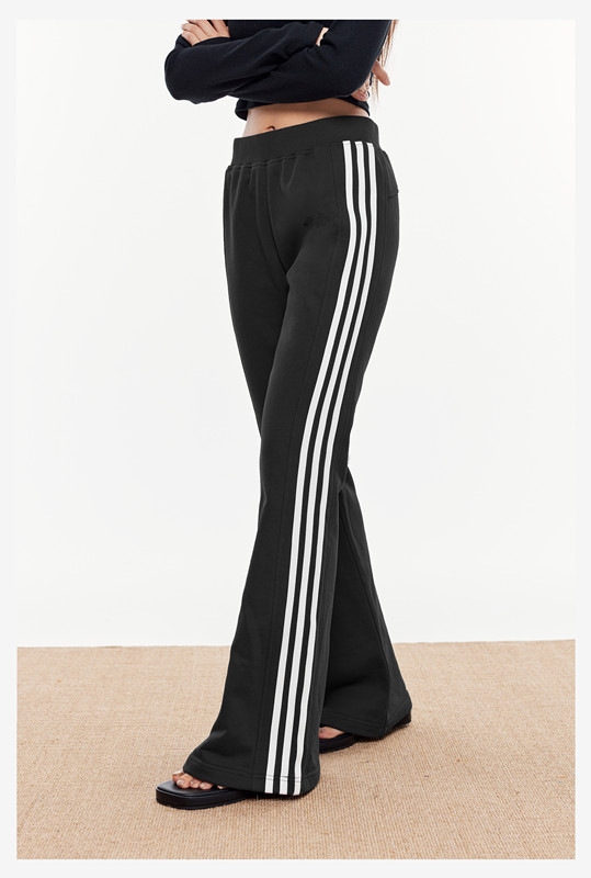 도매 블랙 3 바 스트라이프 마이크로 플레어 팬츠 여성 가을 및 겨울 스포츠 슬림 걸레 와이드 레그 캐주얼 말굽 바지