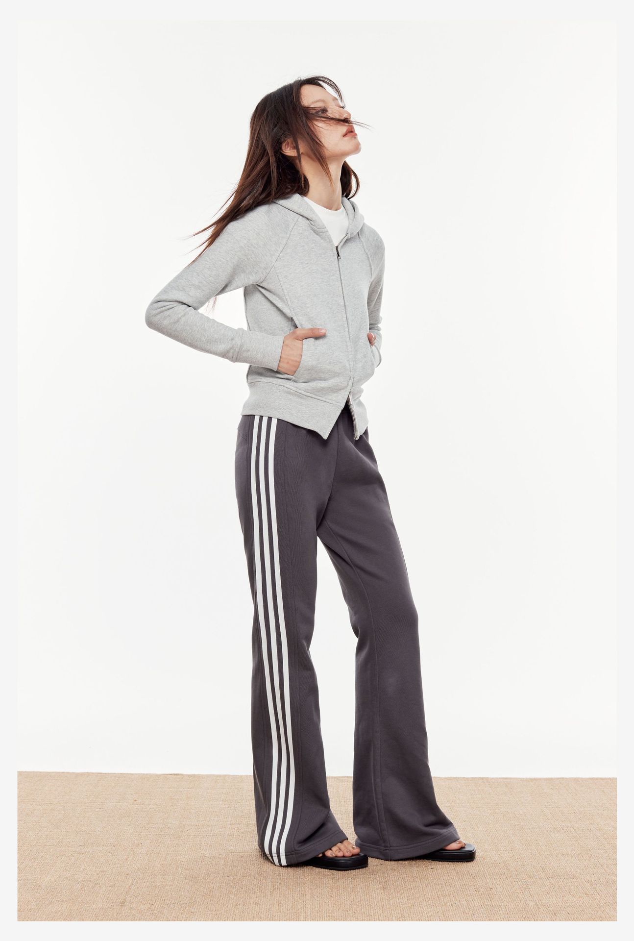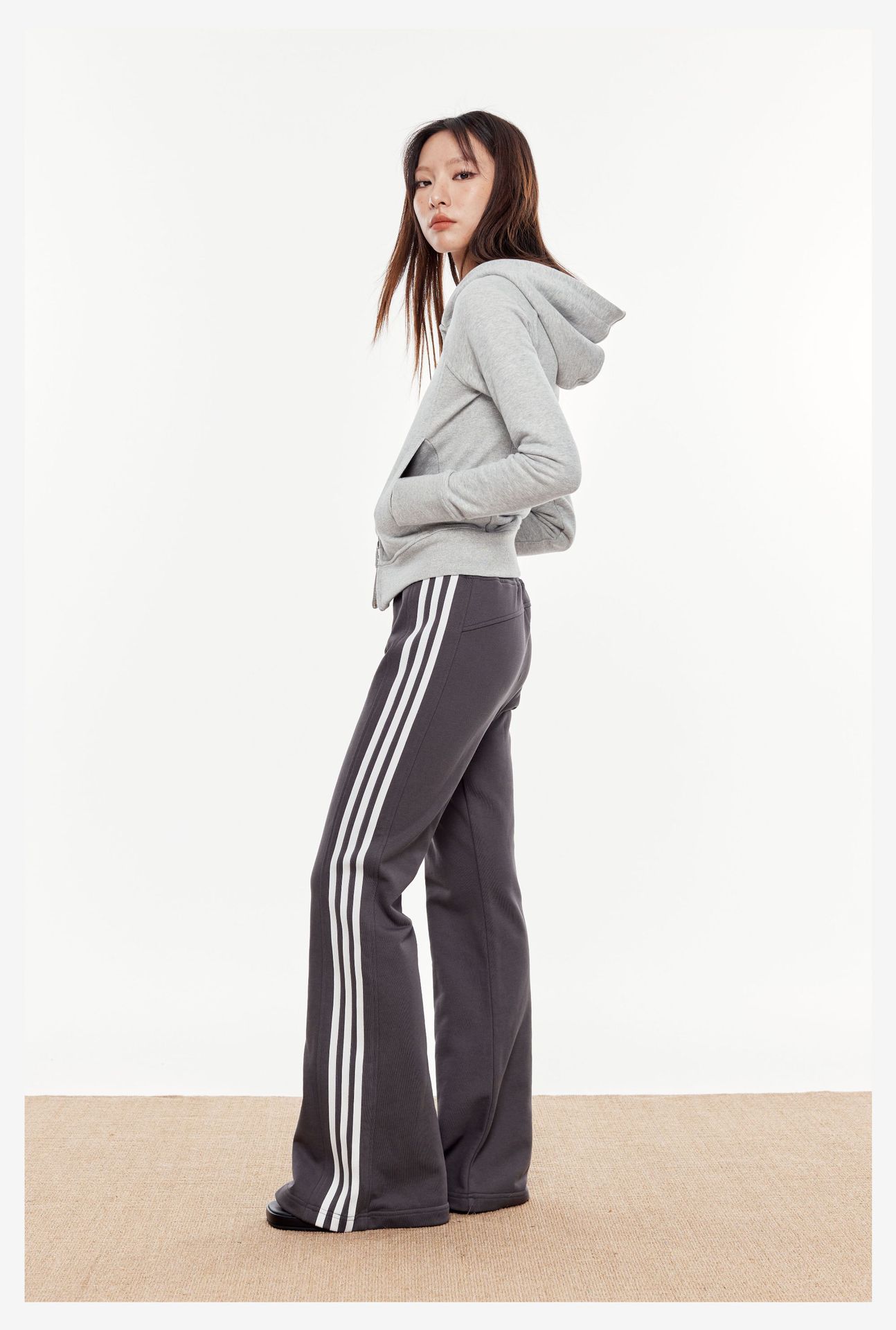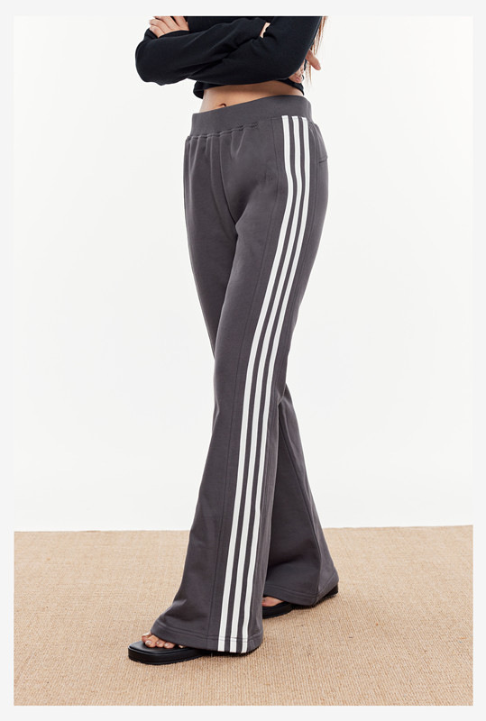 도매 블랙 3 바 스트라이프 마이크로 플레어 팬츠 여성 가을 및 겨울 스포츠 슬림 걸레 와이드 레그 캐주얼 말굽 바지스토어 가기