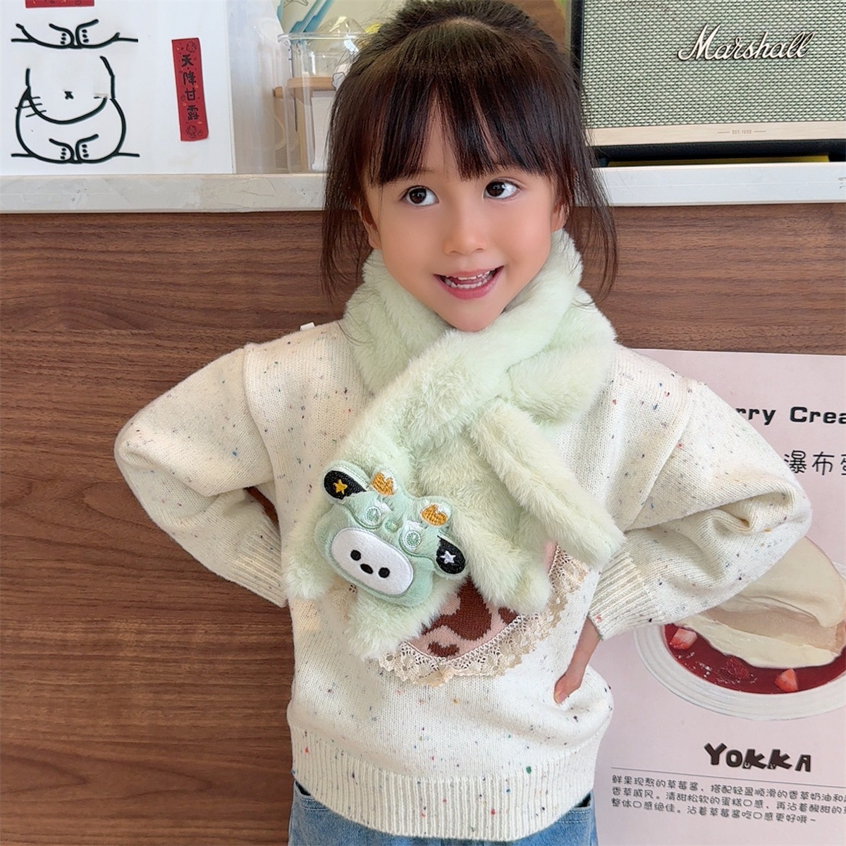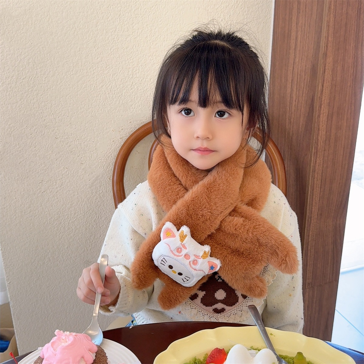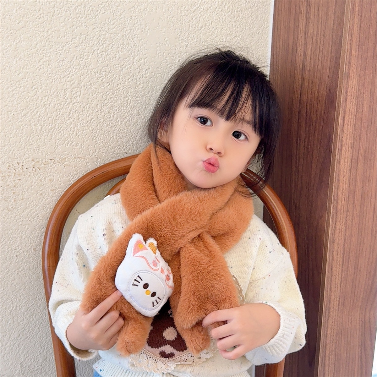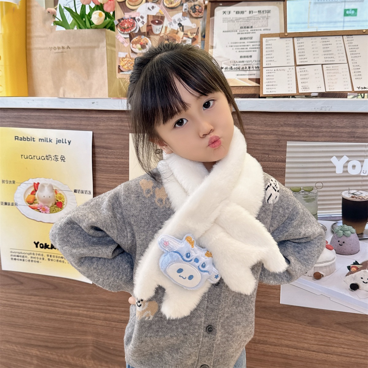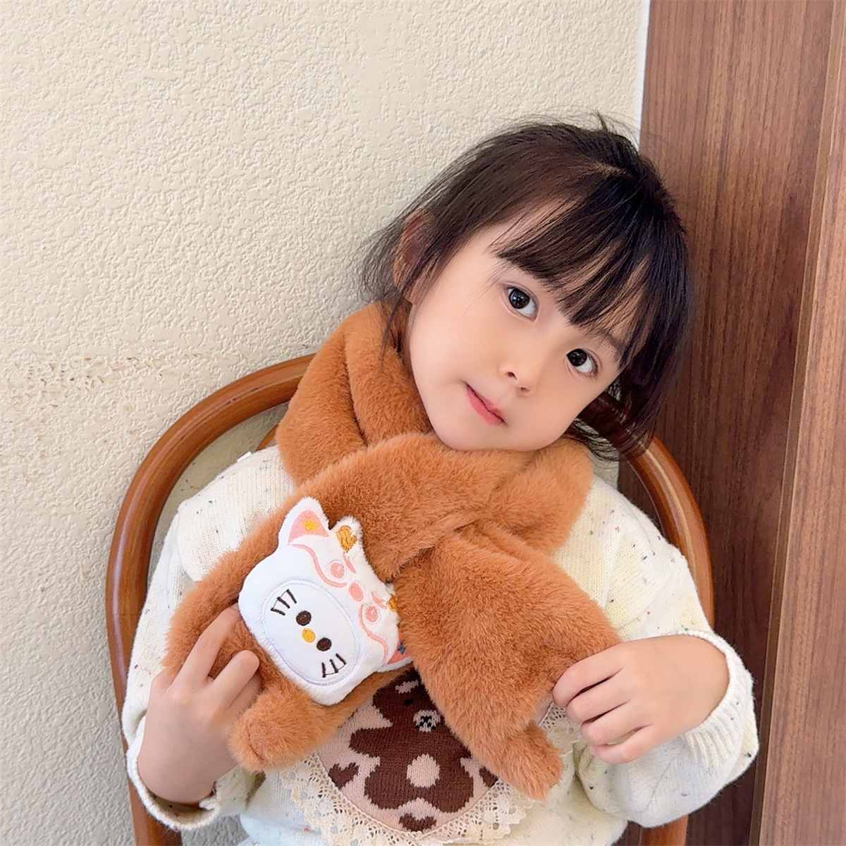 2024 새로운 겨울 어린이 스카프 여성의 하이 엔드 감각 플러시 화이트 귀여운 패션 따뜻한 부모-자식 스카프 올 매치스토어 가기