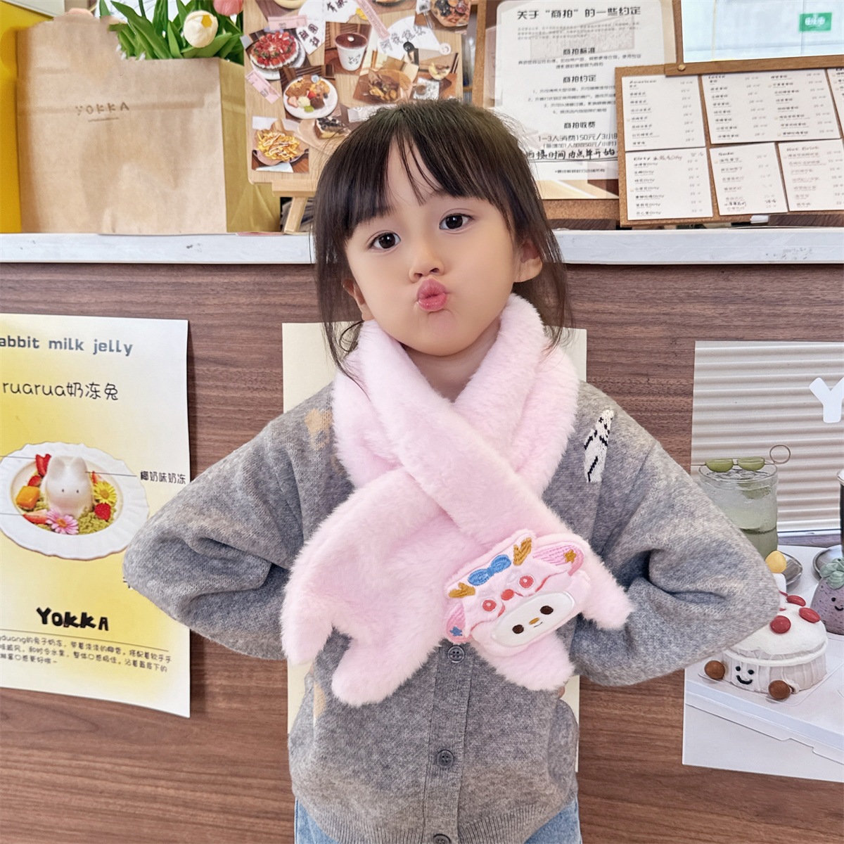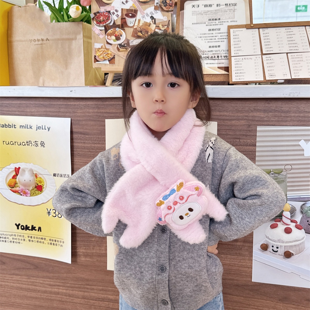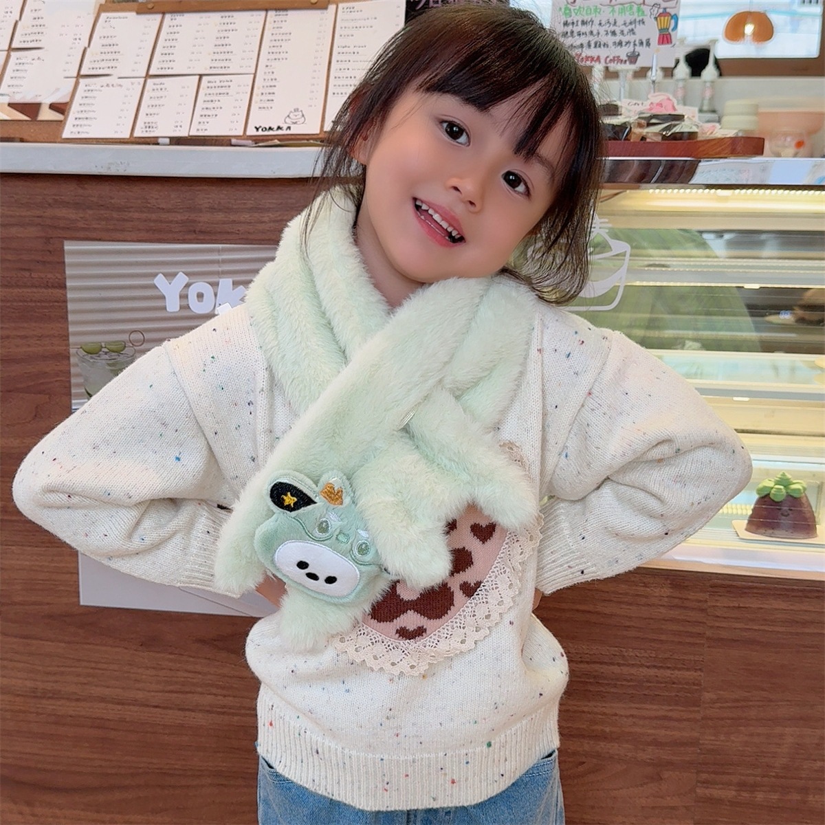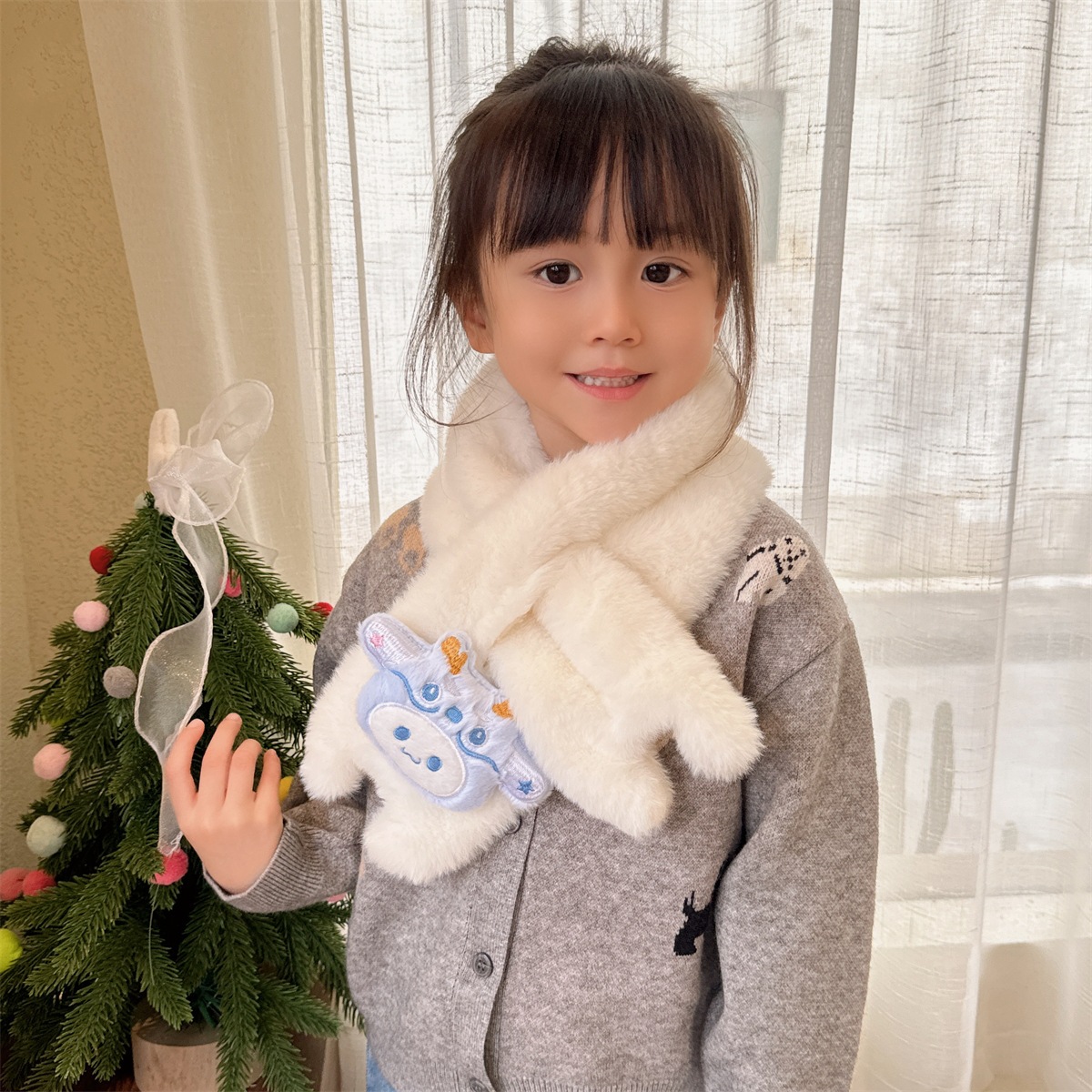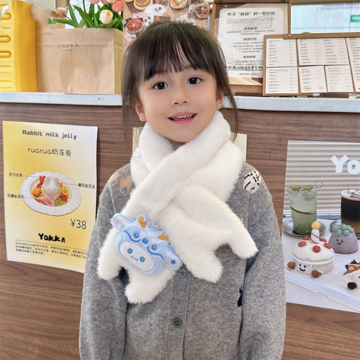2024 새로운 겨울 어린이 스카프 여성의 하이 엔드 감각 플러시 화이트 귀여운 패션 따뜻한 부모-자식 스카프 올 매치스토어 가기