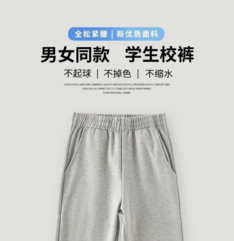 남학생 봄, 여름, 가을 바지 초등학교 어린이 순면 스트레이트 다리 바지 그레이 고등학교 큰 소년 소녀 번들 다리 스포츠 바지스토어 가기