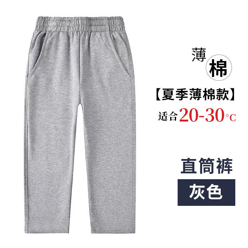 남학생 봄, 여름, 가을 바지 초등학교 어린이 순면 스트레이트 다리 바지 그레이 고등학교 큰 소년 소녀 번들 다리 스포츠 바지