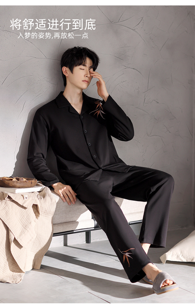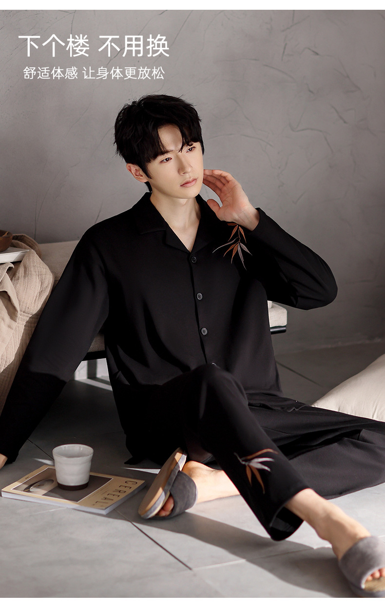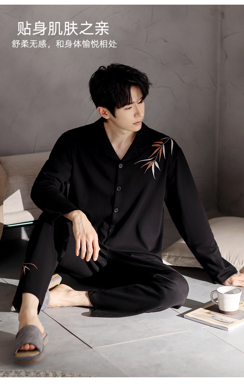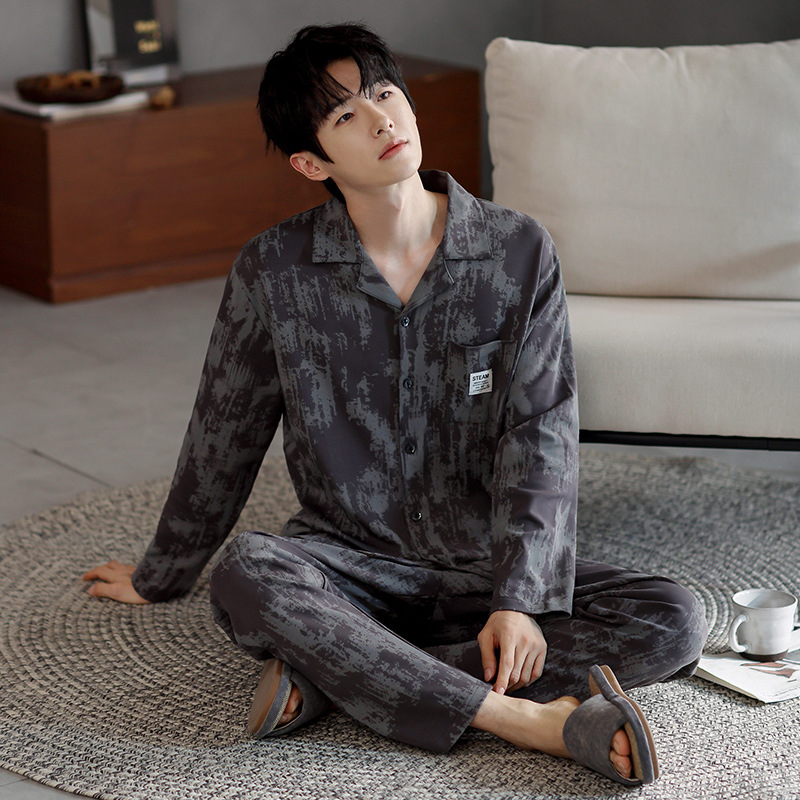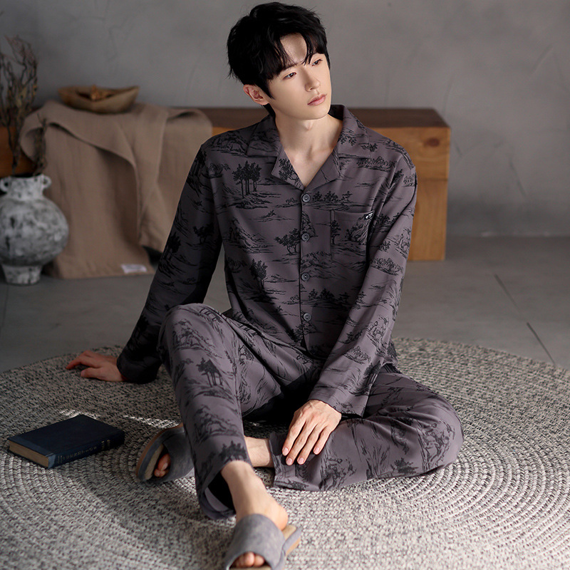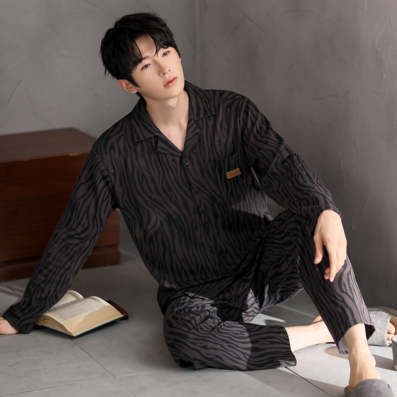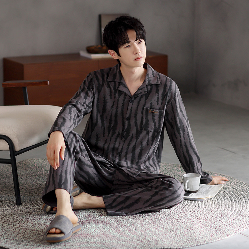 줄무늬 잠옷 남성용 봄 가을 순면 긴팔 2025 신상 외출 가능 고급스러운 남성 홈웨어 가을 겨울스토어 가기