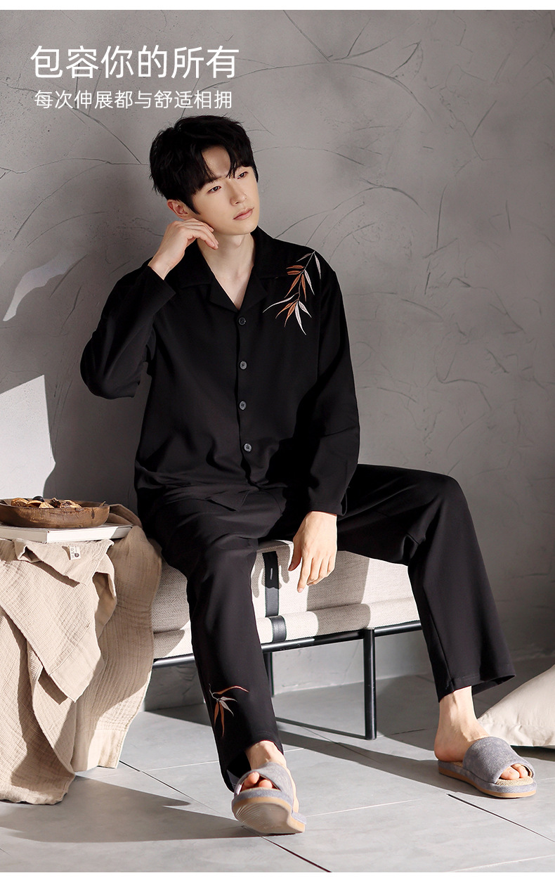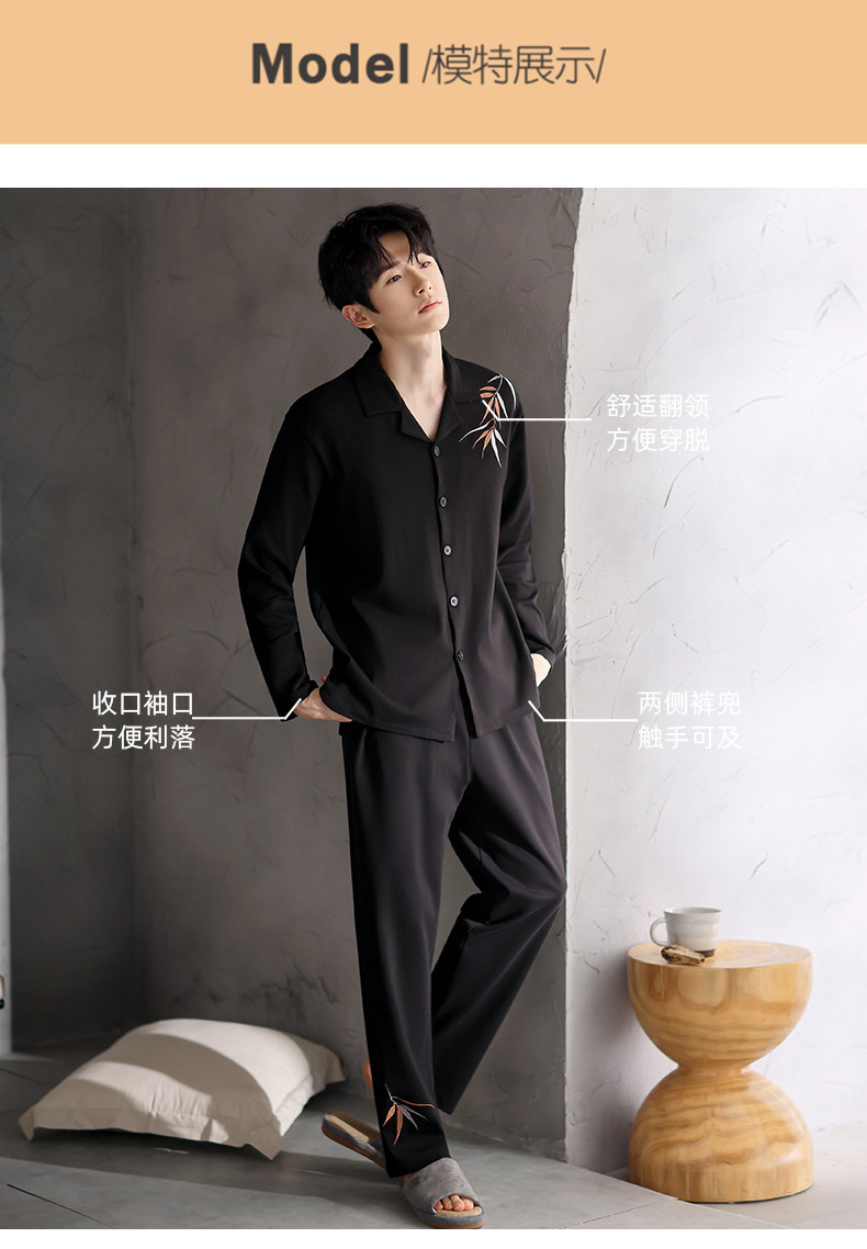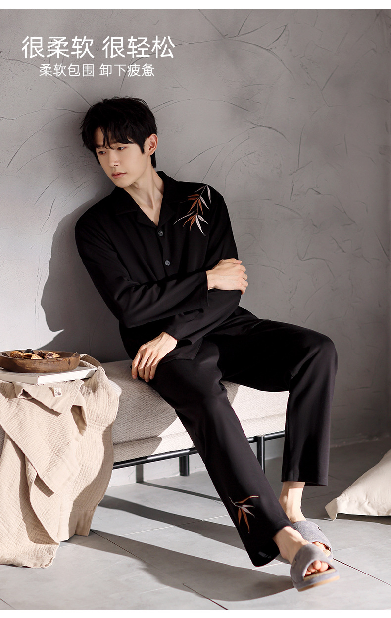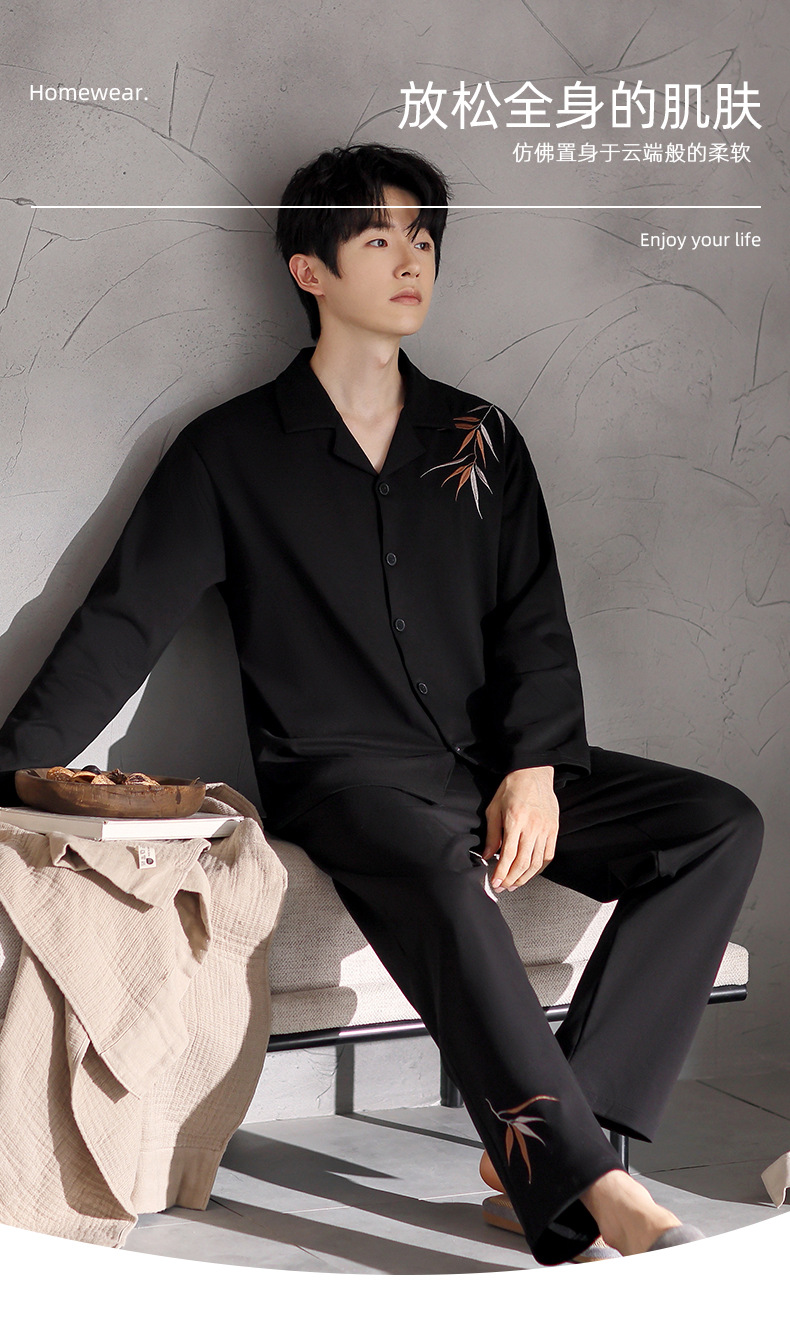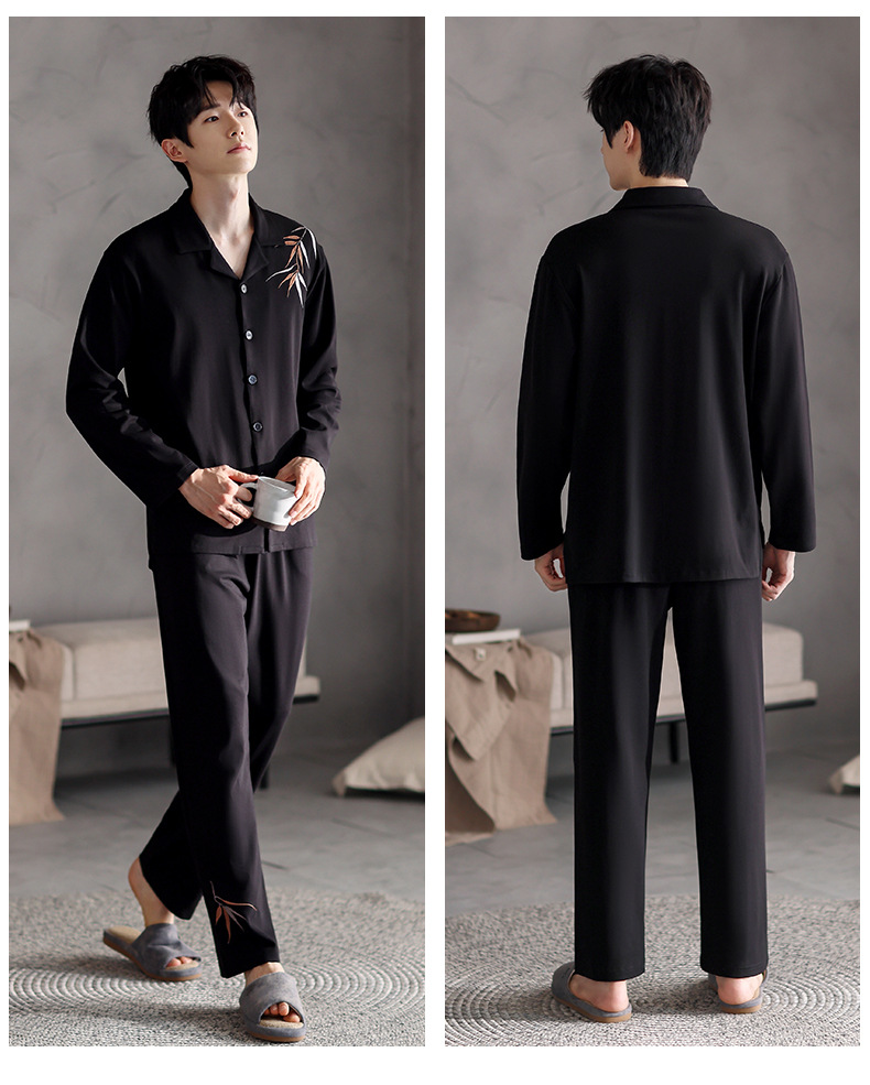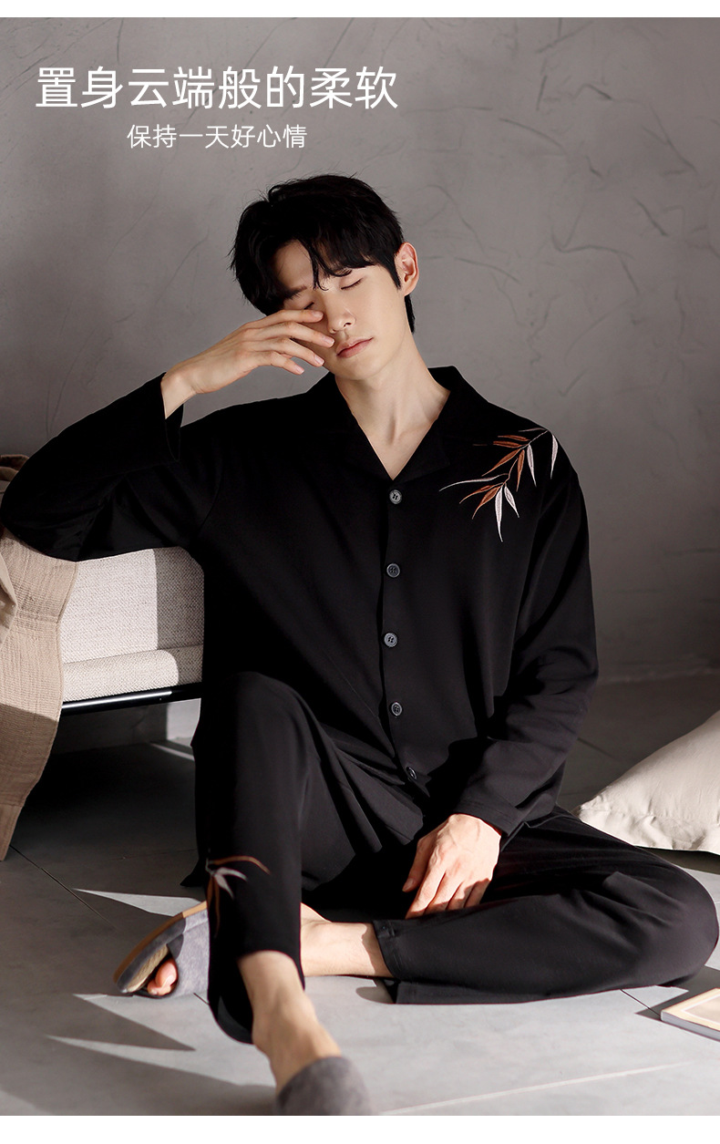 줄무늬 잠옷 남성용 봄 가을 순면 긴팔 2025 신상 외출 가능 고급스러운 남성 홈웨어 가을 겨울스토어 가기