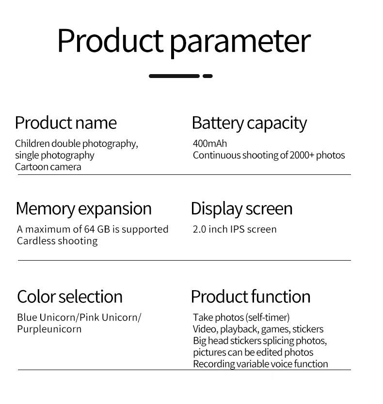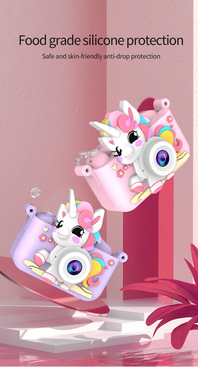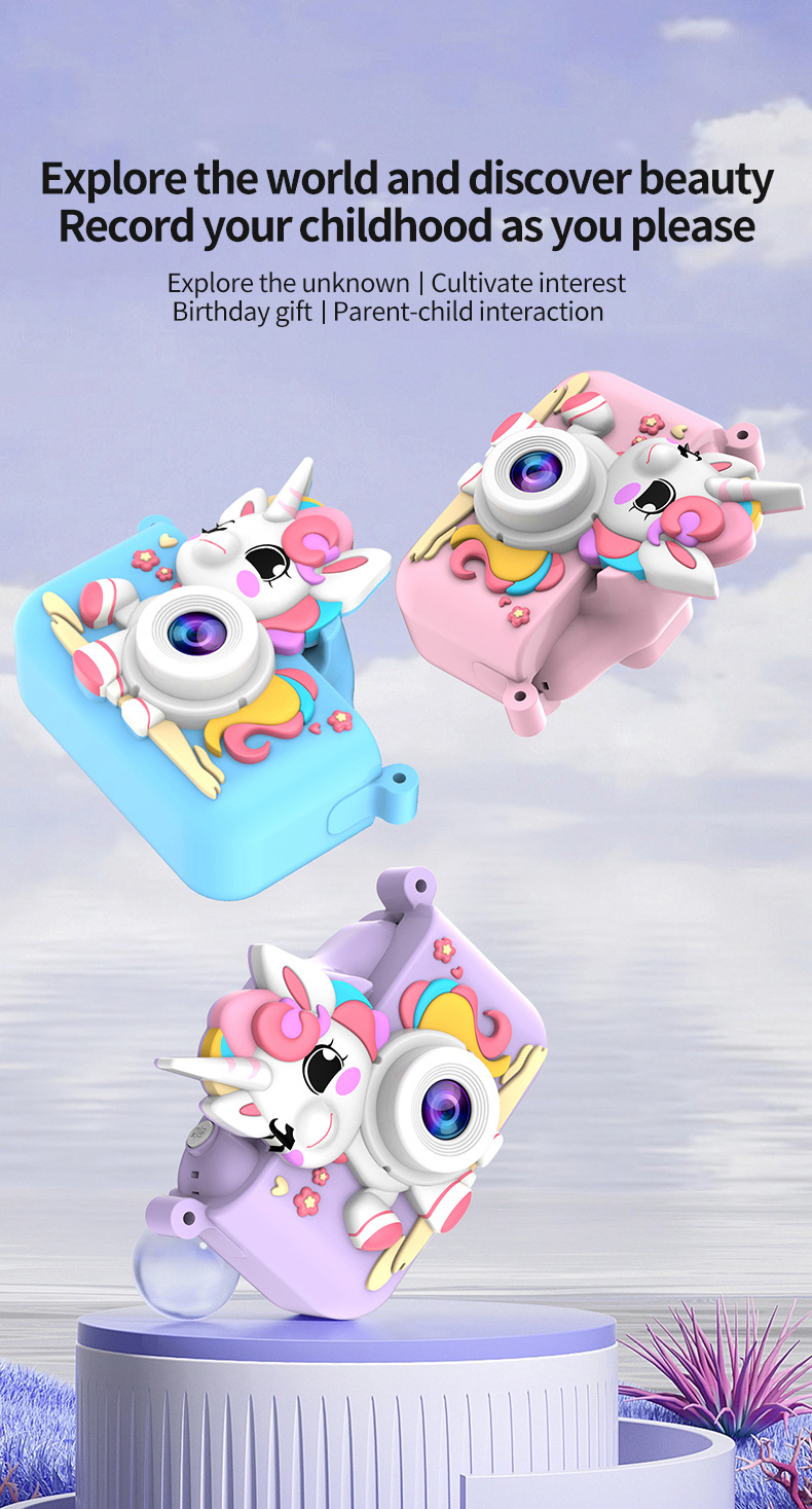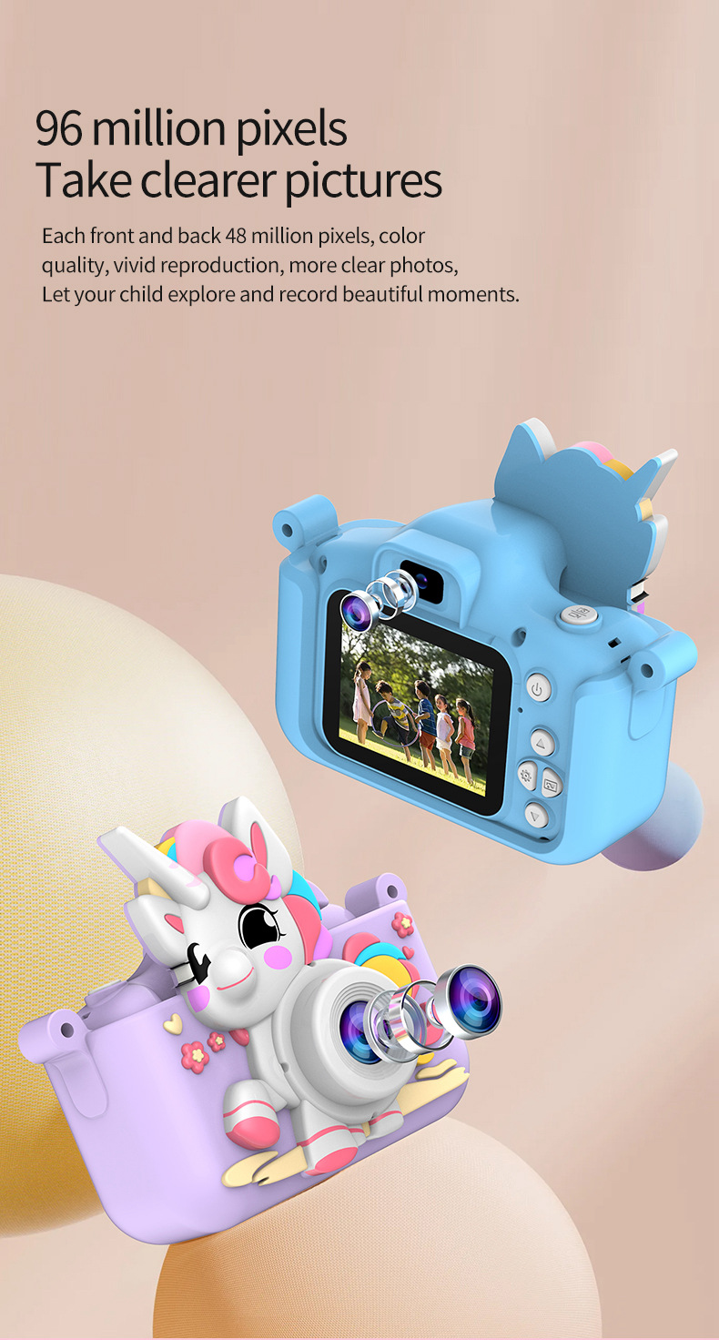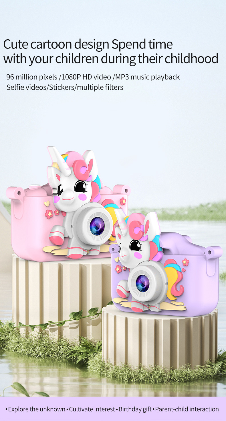 어린이 미니 디지털 카메라 카메라 사진 비디오 높은 픽셀 만화 SLR 선물 유니콘 귀여운