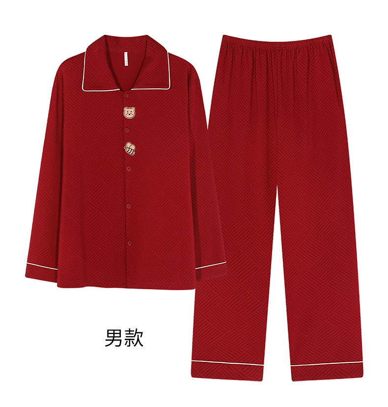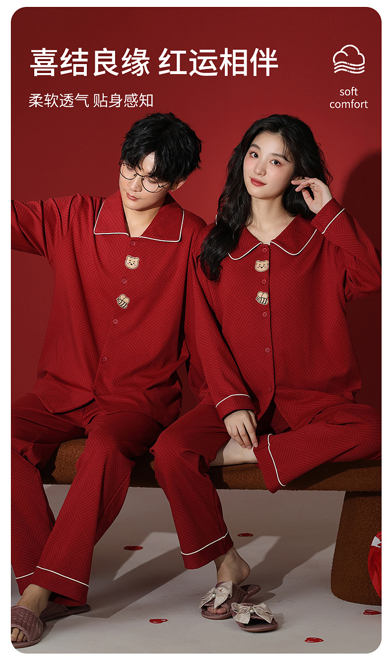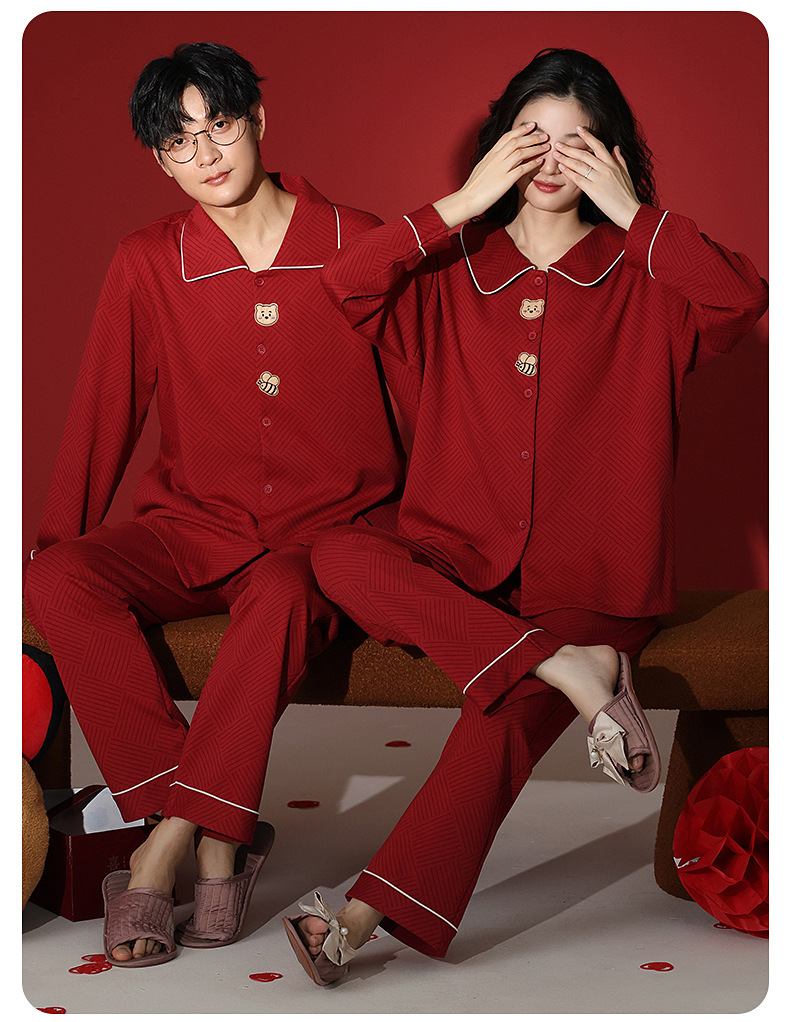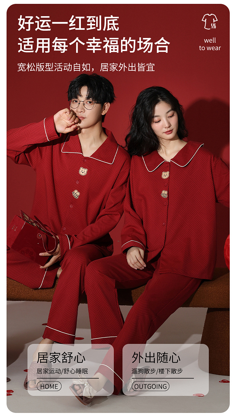 [순면] 커플 잠옷 여성 봄, 가을, 겨울 신혼 동물 년 2025 새로운 홈웨어 긴 소매 레드