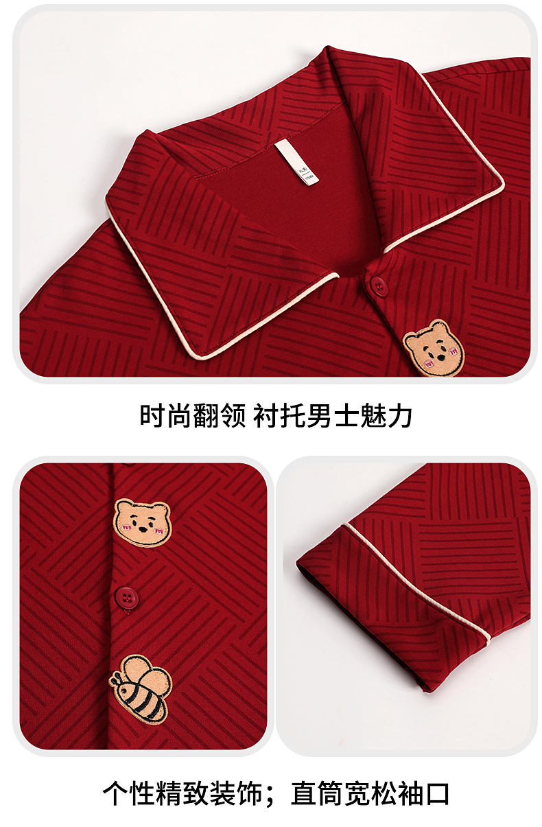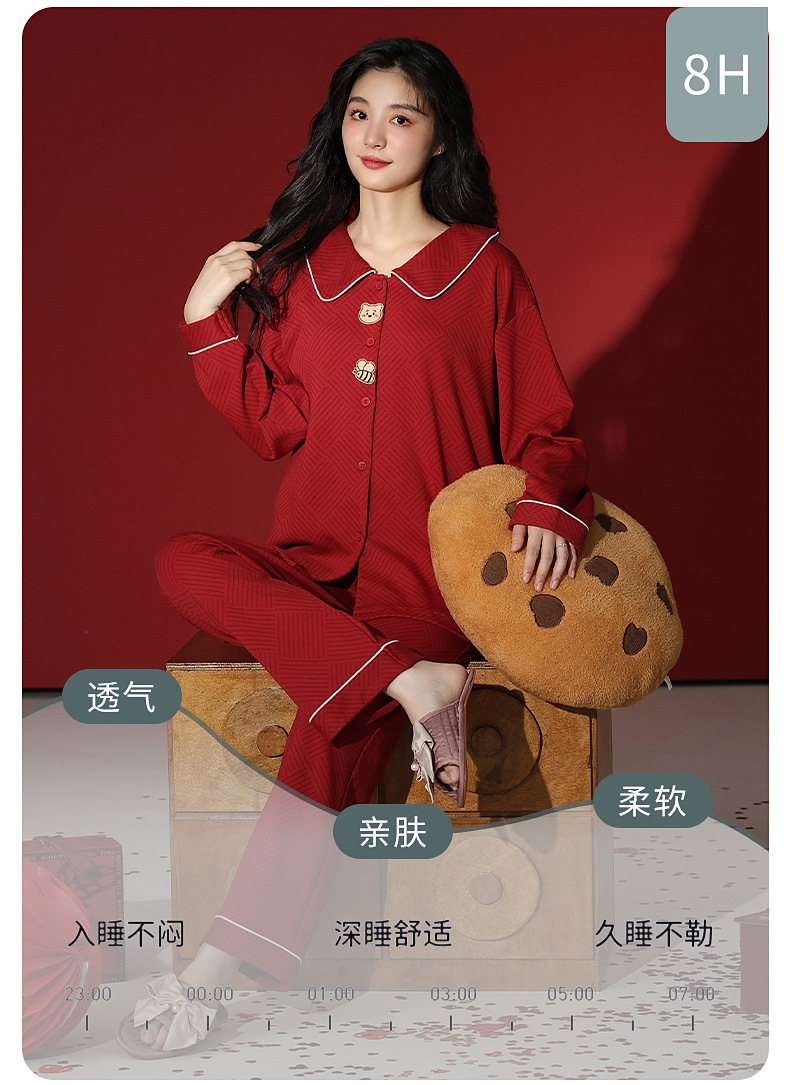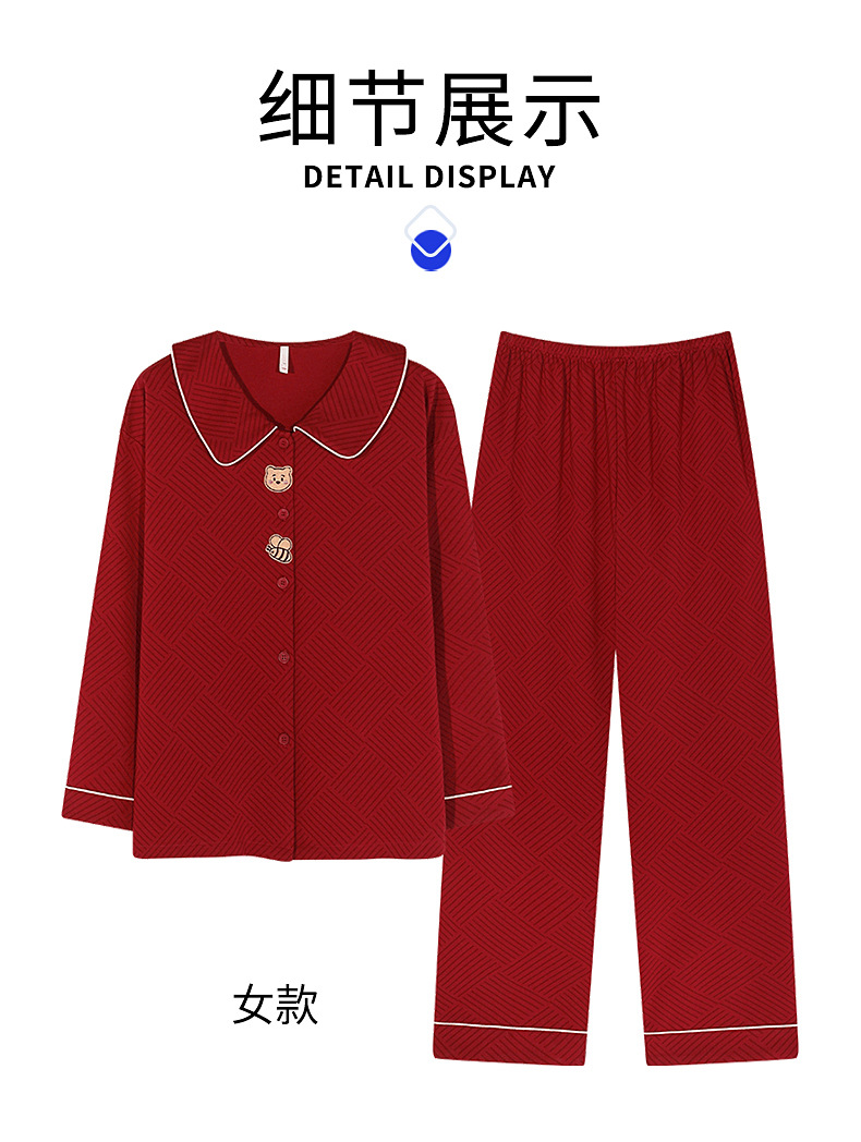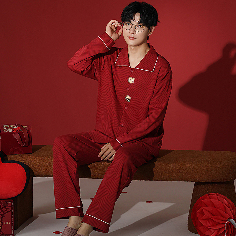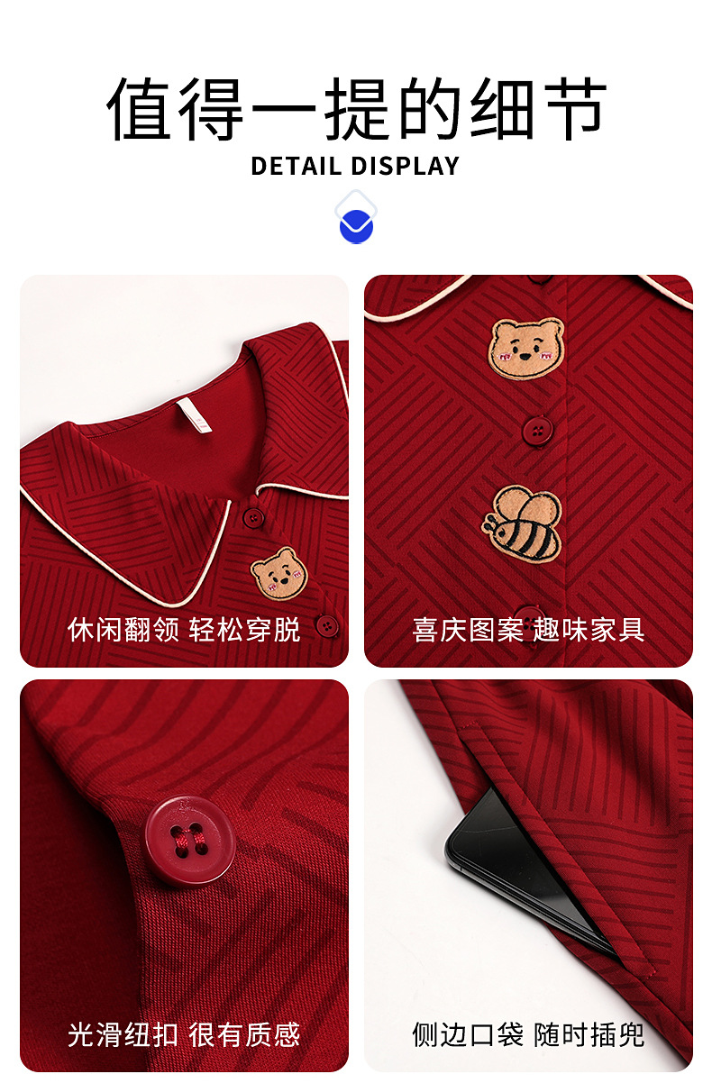 [순면] 커플 잠옷 여성 봄, 가을, 겨울 신혼 동물 년 2025 새로운 홈웨어 긴 소매 레드