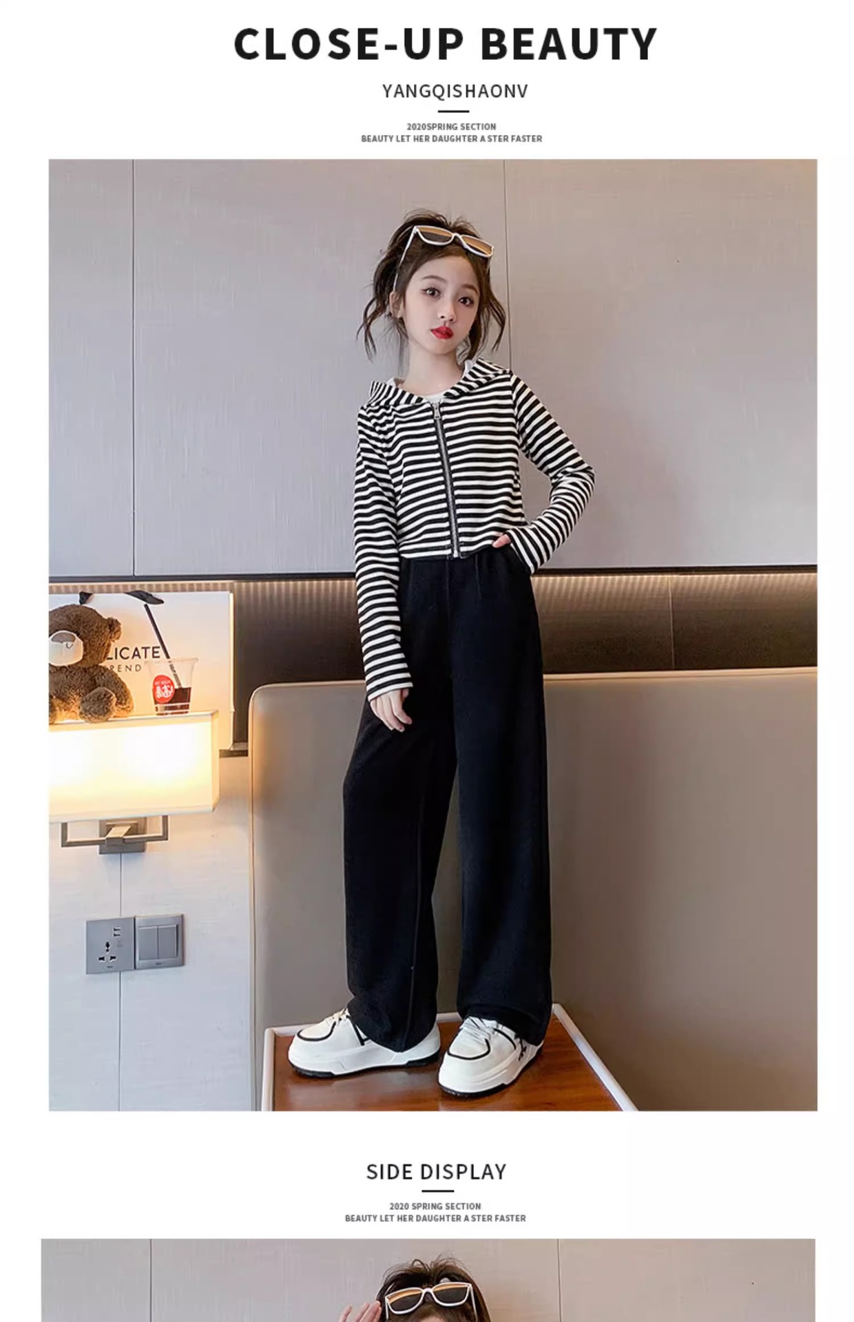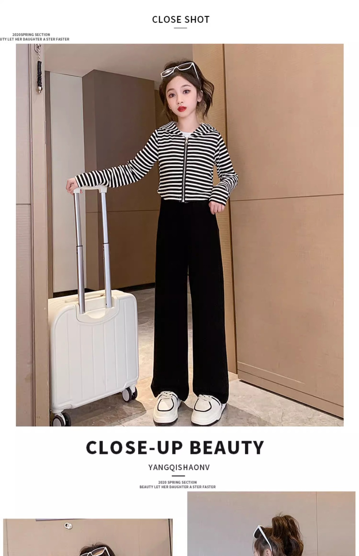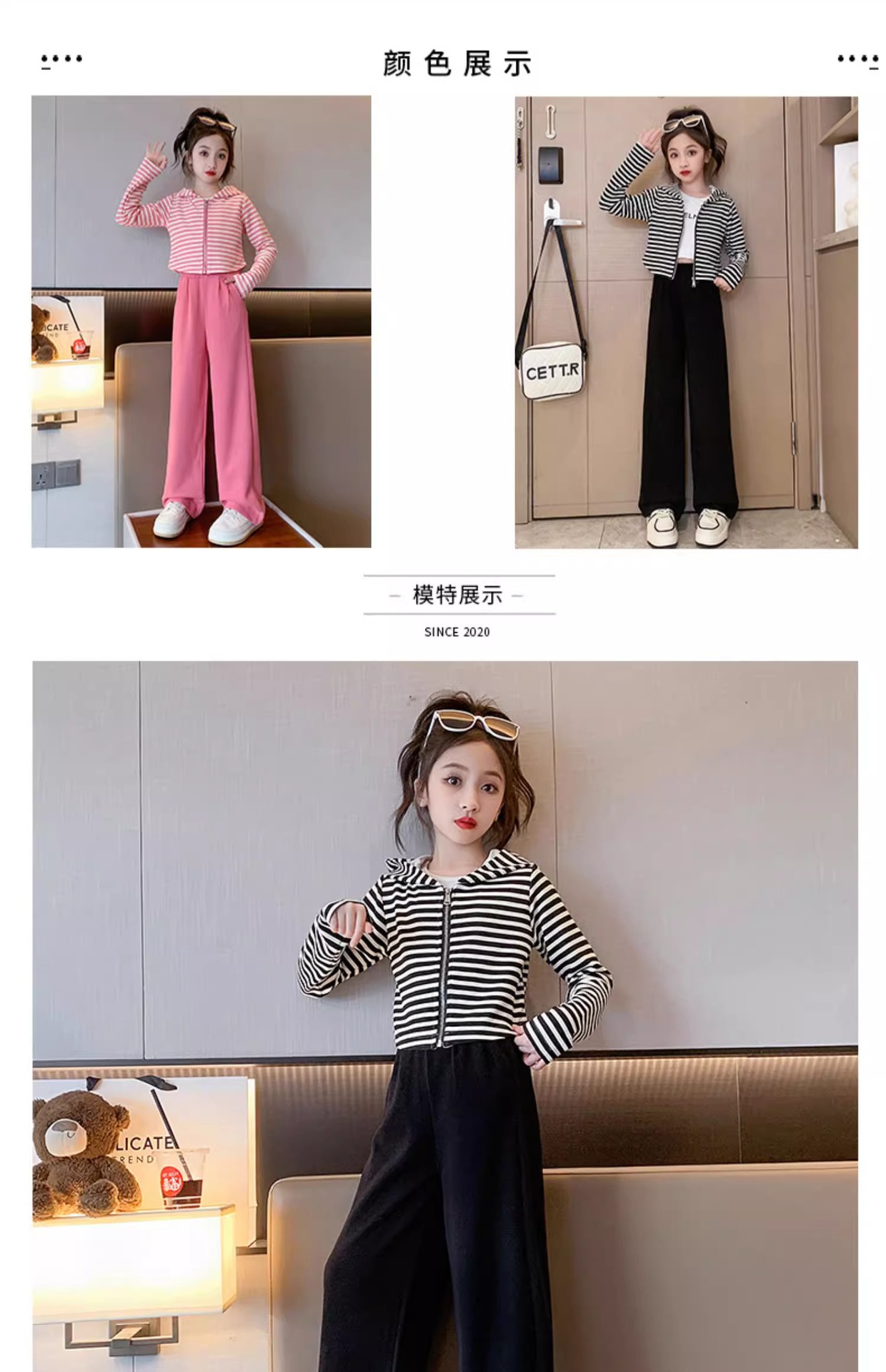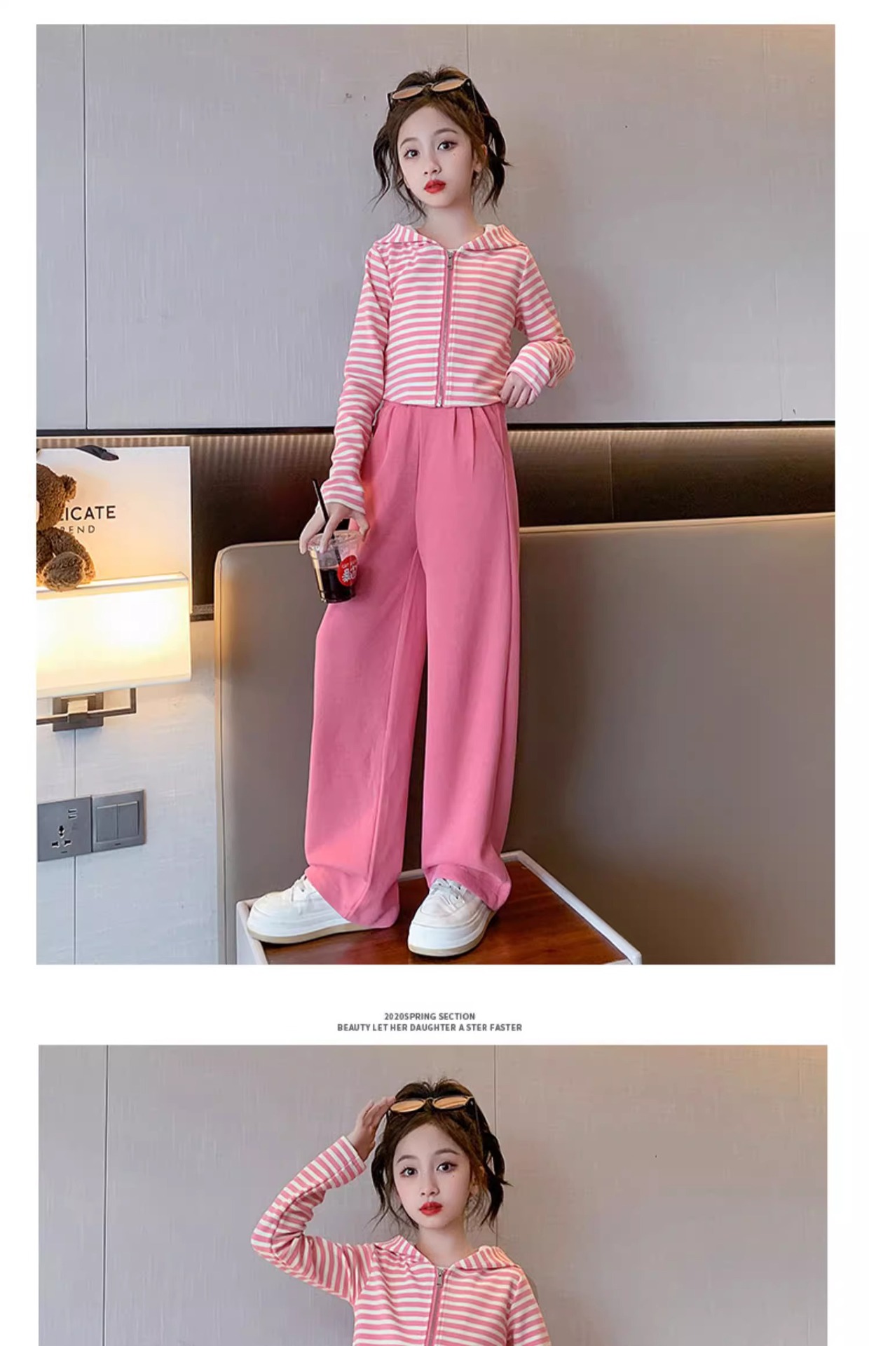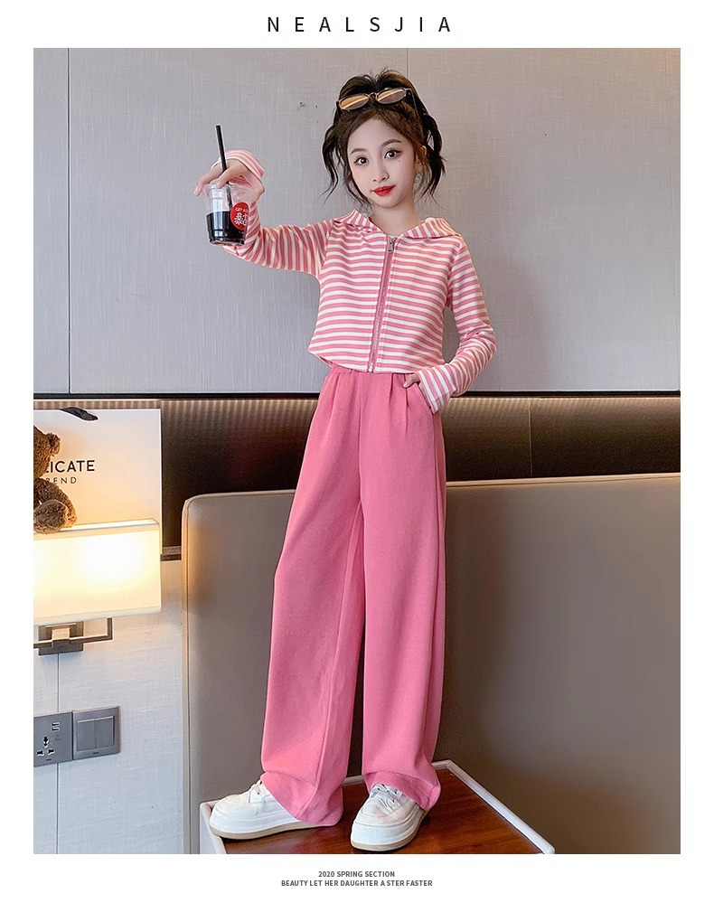 2024 새로운 소녀의 봄 세트 어린이 서양식 소녀 봄 줄무늬 후드 카디건 캐주얼 투피스 세트스토어 가기