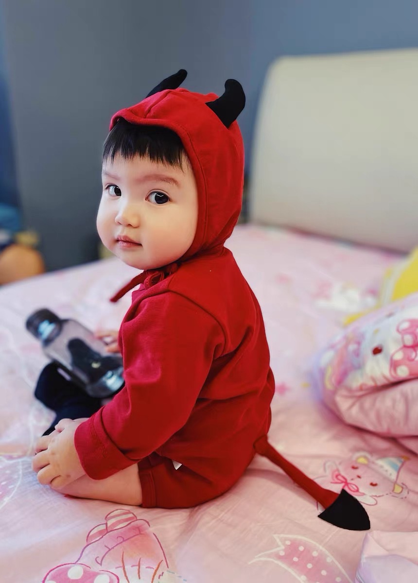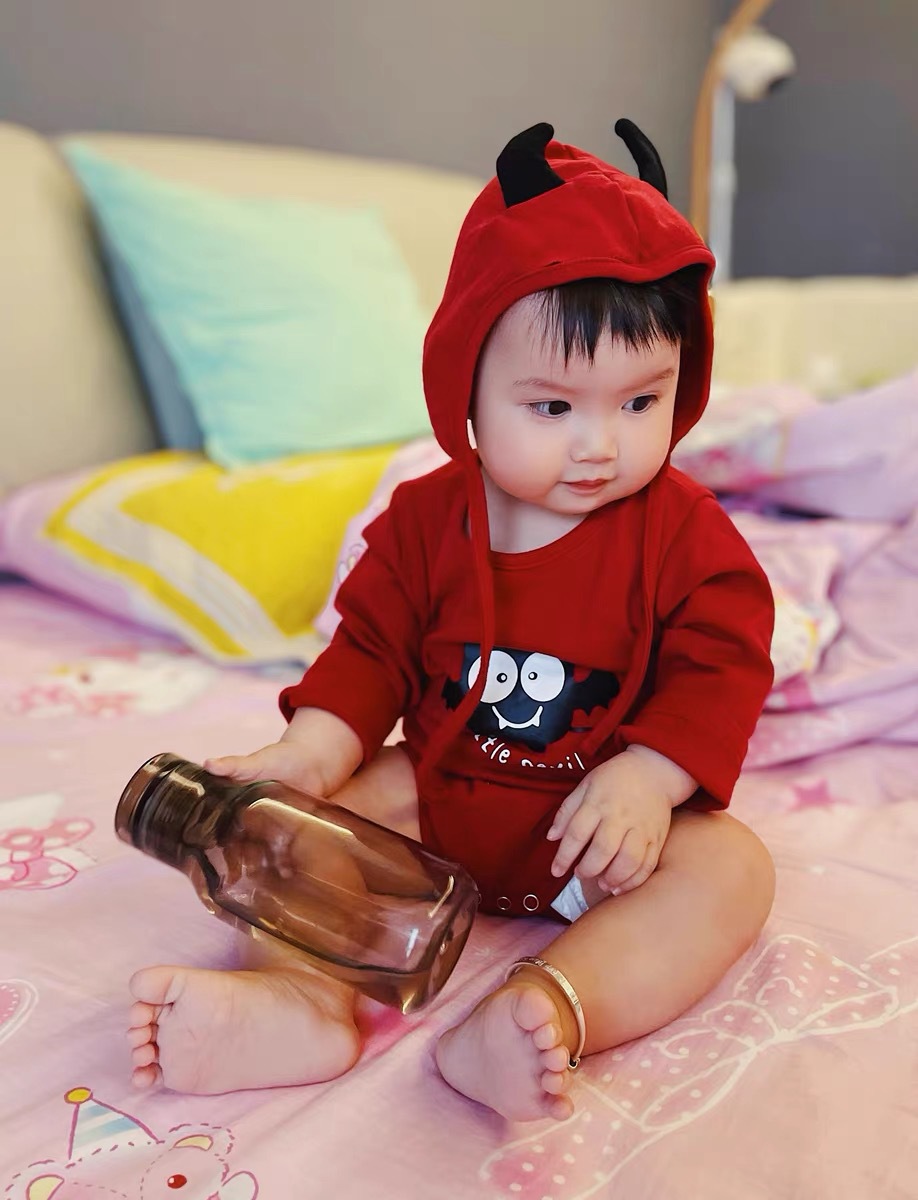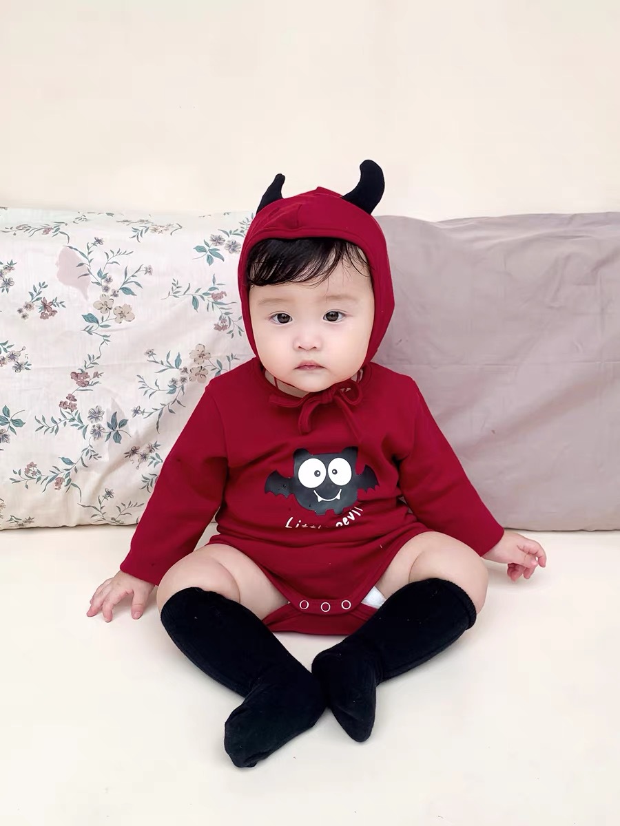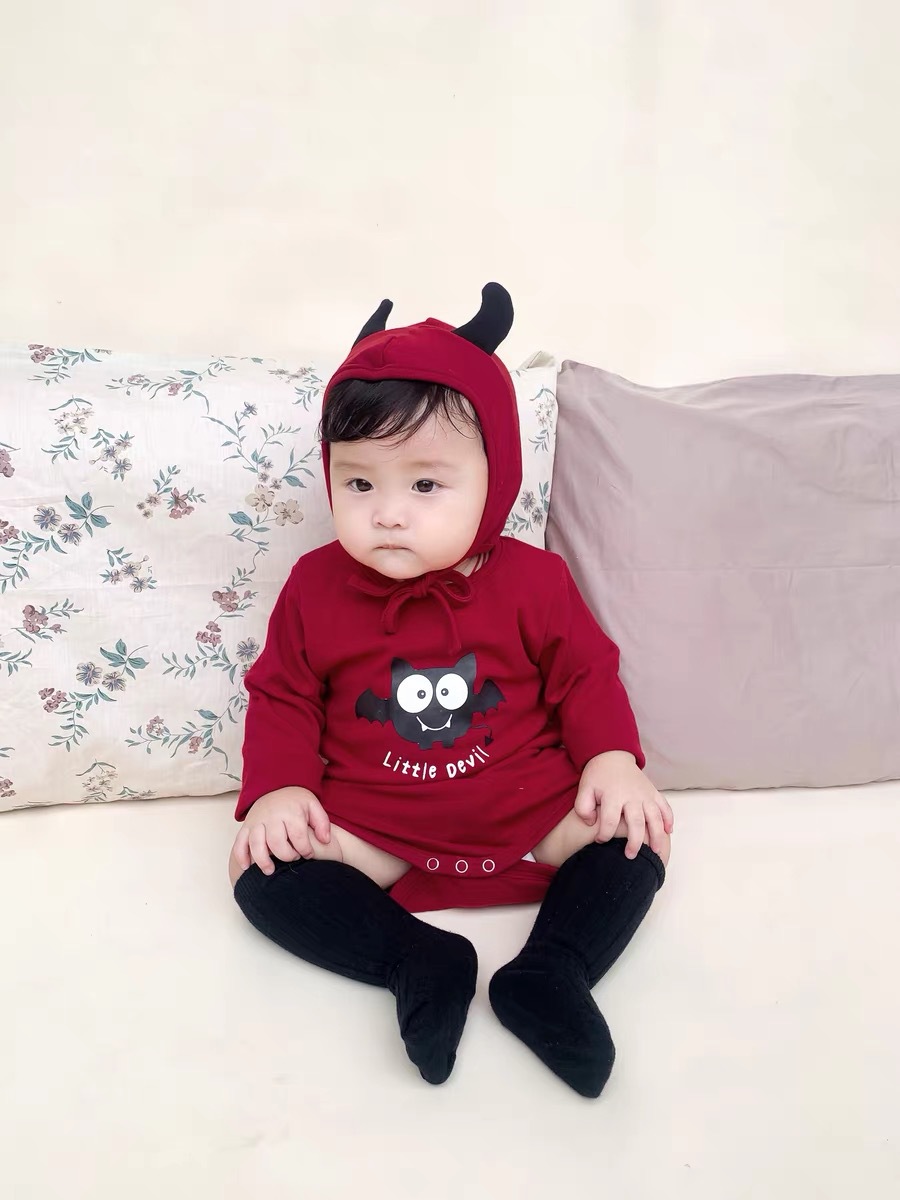 봄과 가을 한국 스타일 긴팔 어린이 점프 수트 할로윈 시리즈 임프 악마 박쥐 인쇄 가방 방귀 옷스토어 가기