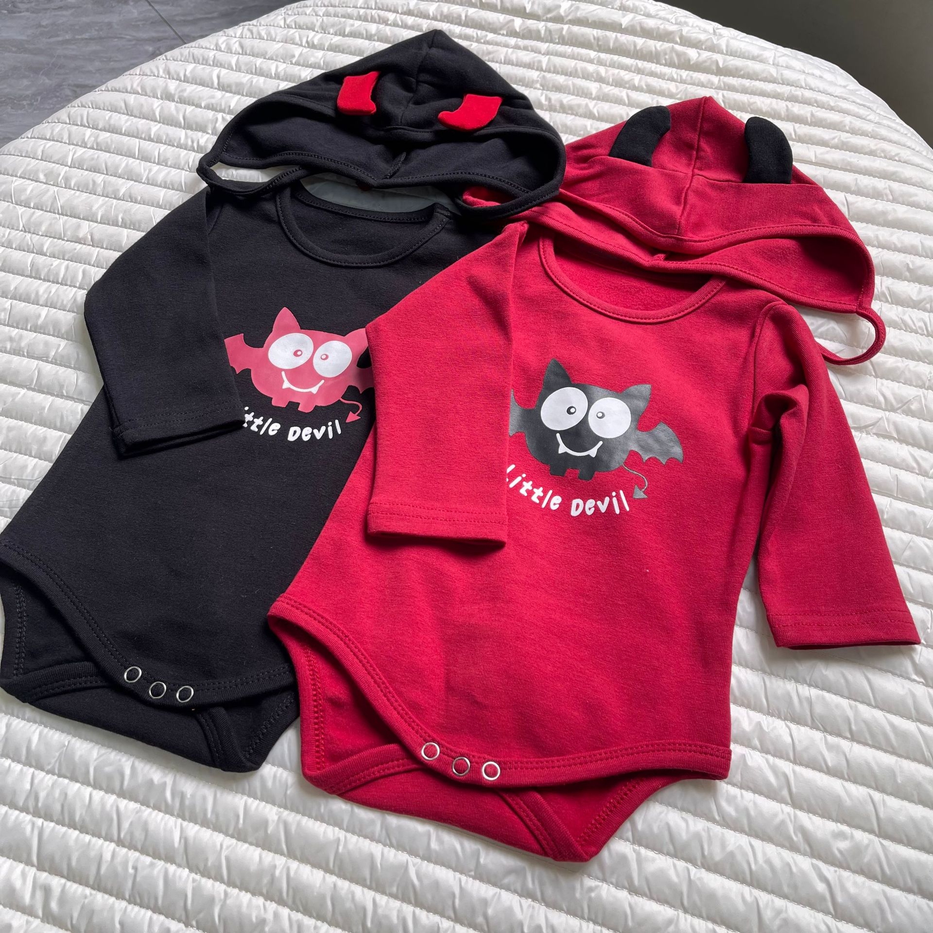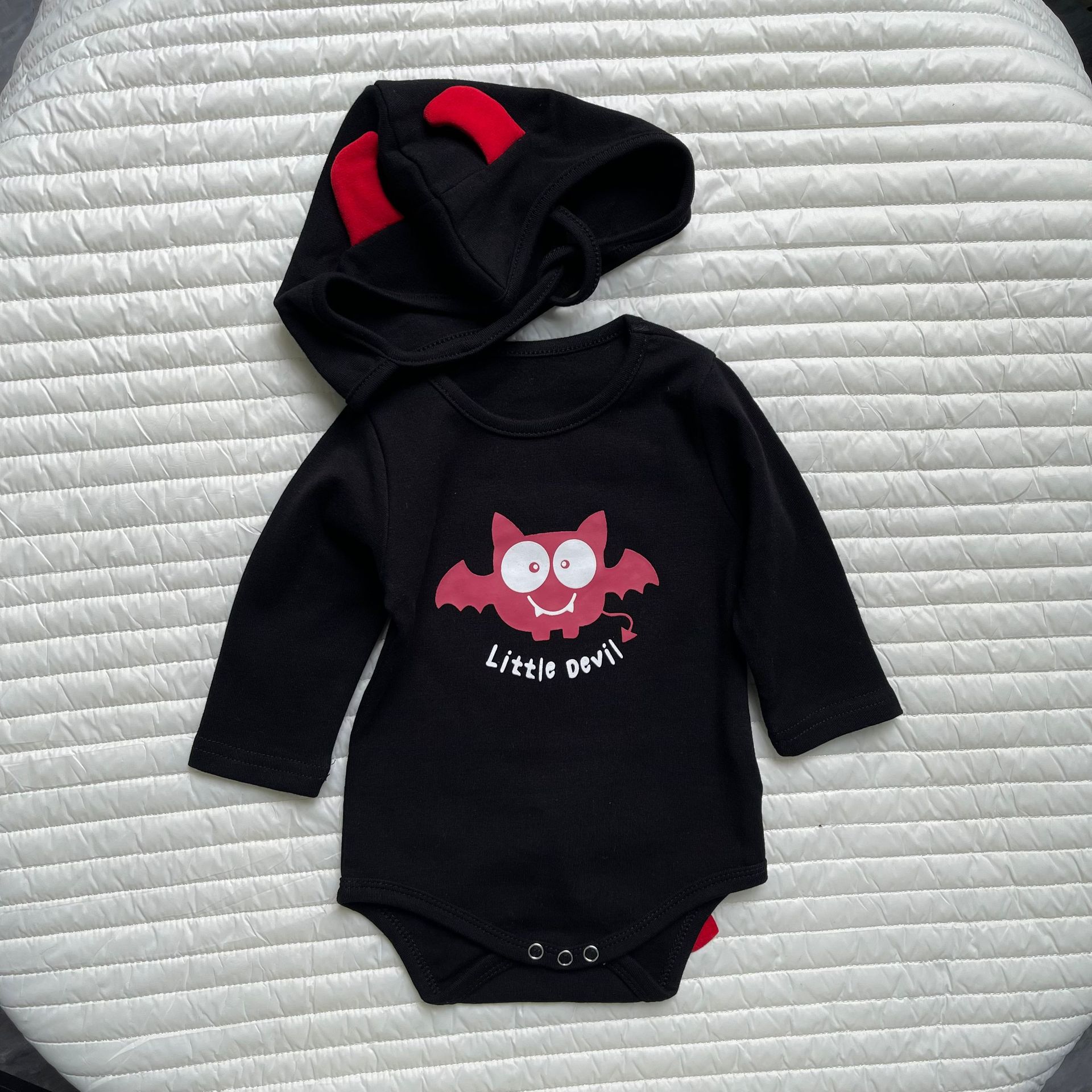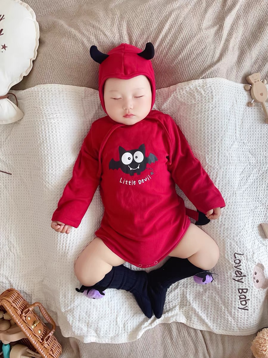 봄과 가을 한국 스타일 긴팔 어린이 점프 수트 할로윈 시리즈 임프 악마 박쥐 인쇄 가방 방귀 옷