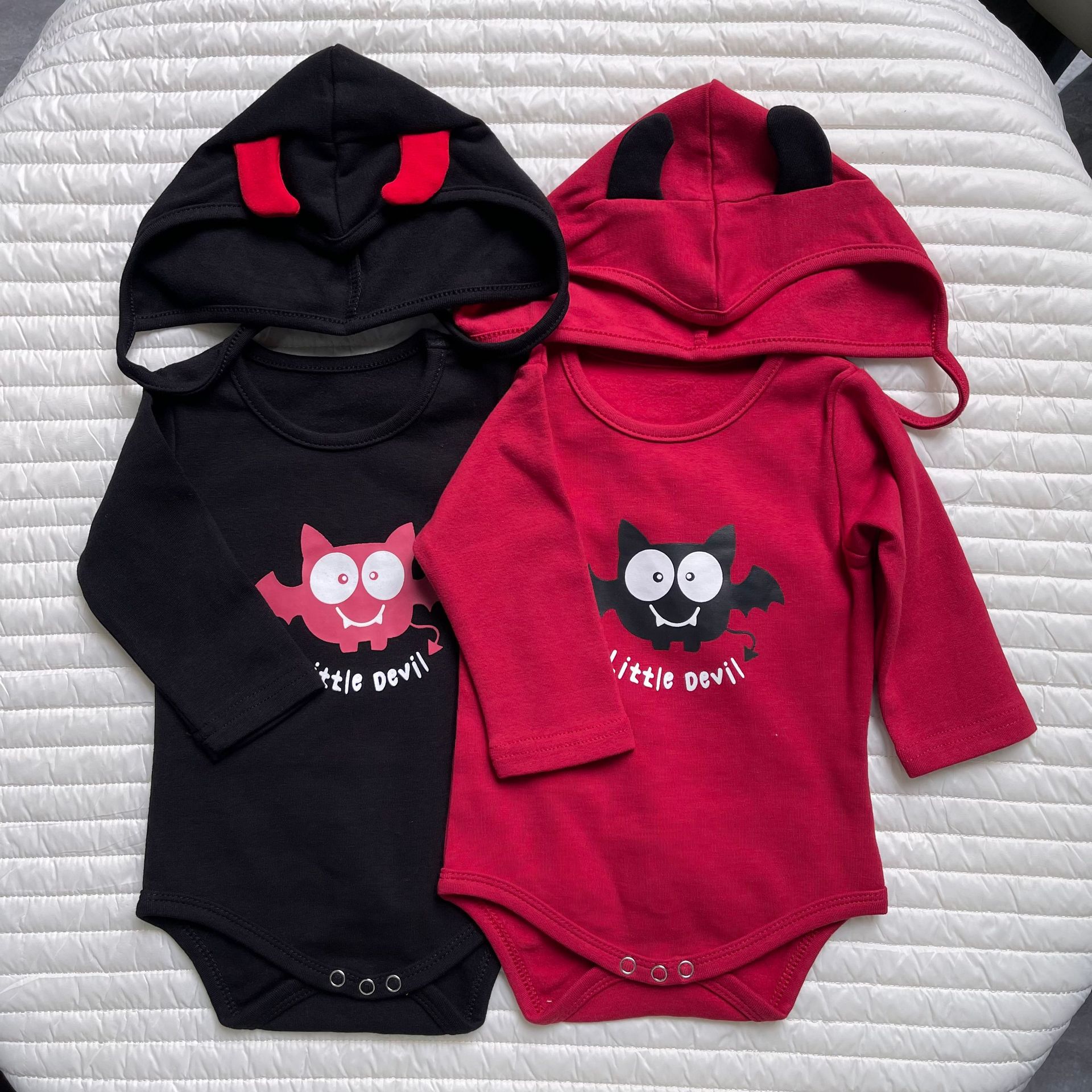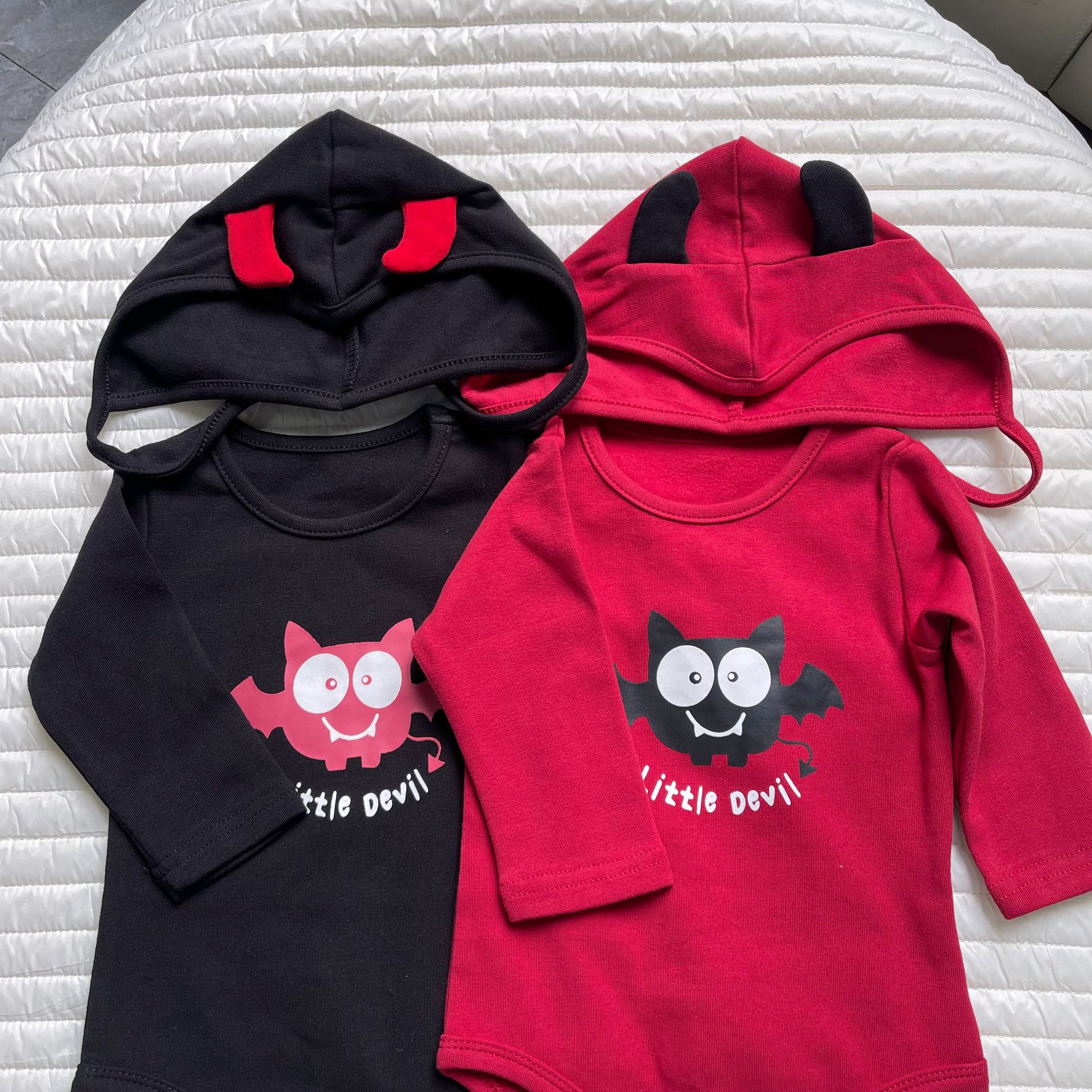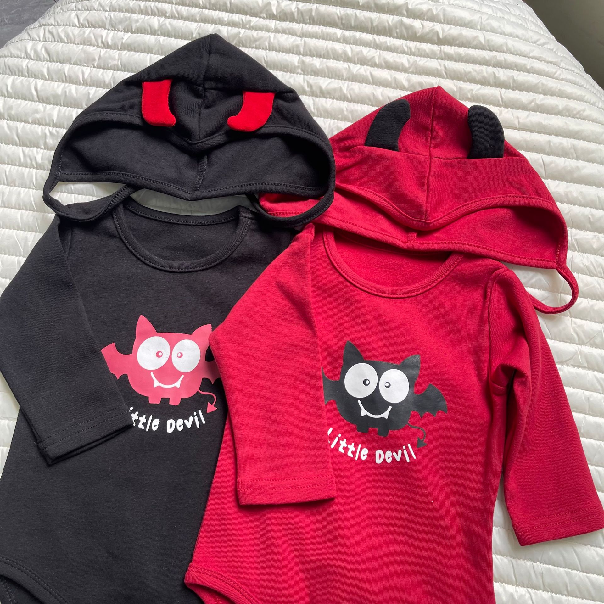 봄과 가을 한국 스타일 긴팔 어린이 점프 수트 할로윈 시리즈 임프 악마 박쥐 인쇄 가방 방귀 옷