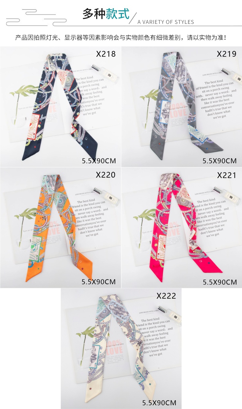 체스와 카드 실크 스카프 공장 도매 작은 실크 스카프 가방 실크 스카프 긴 스트립 좁은 실크 스카프 헤어 벨트 리본 선물 상자 동반자 선물