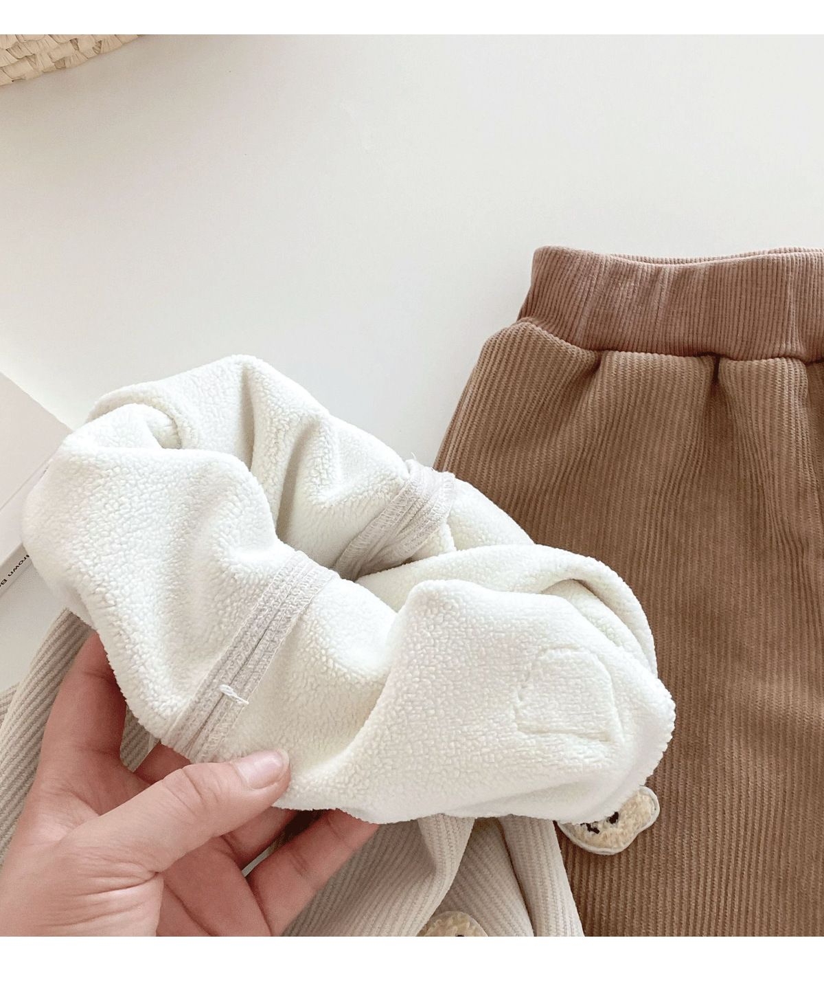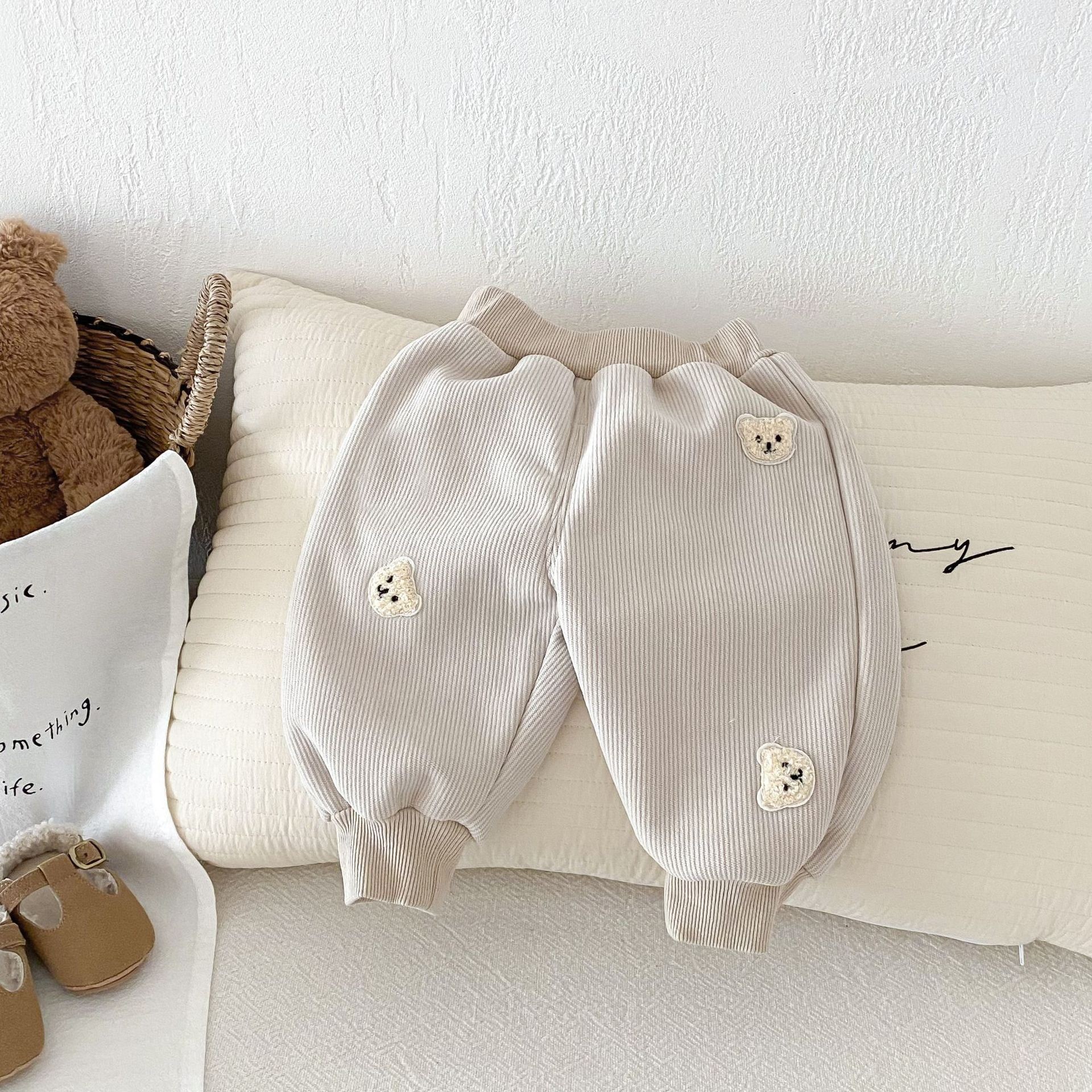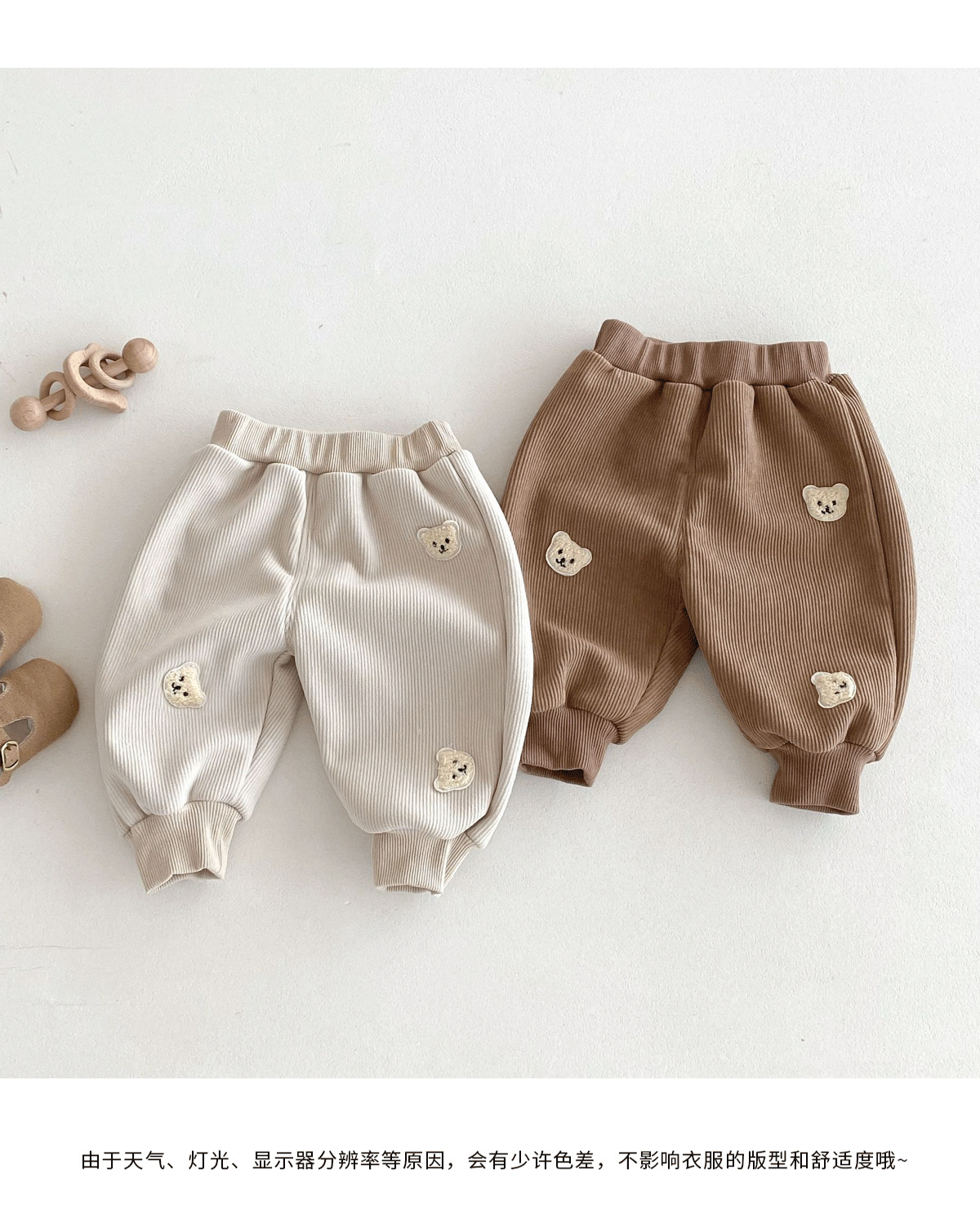 어린이 기모 베어 캐주얼 바지 2024 겨울 한국 어린이 착용 코듀로이 바지 아기 서양식 겨울복