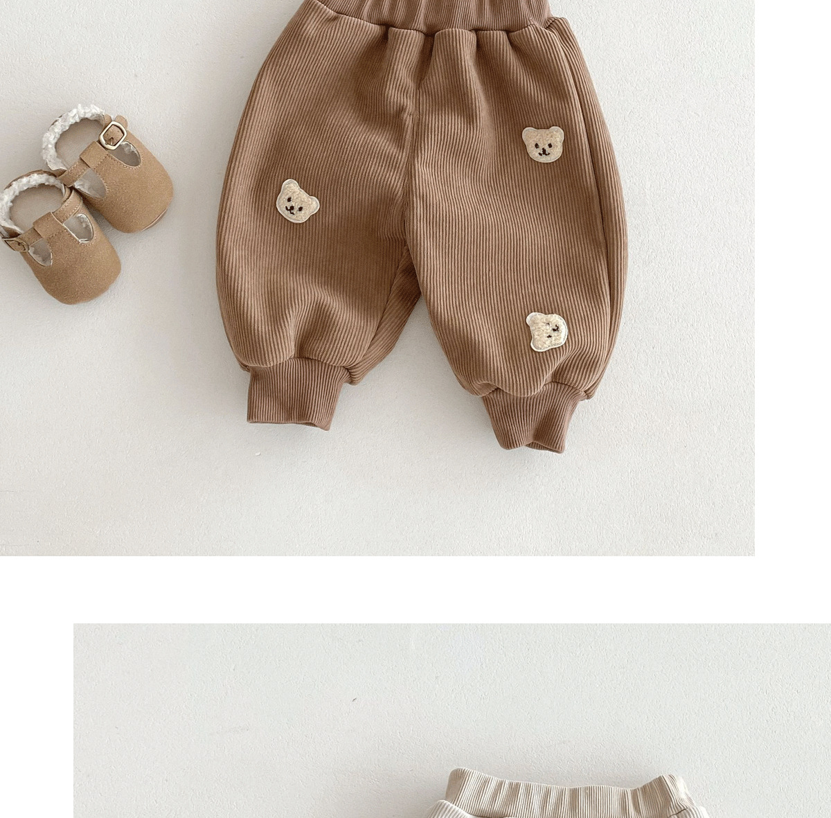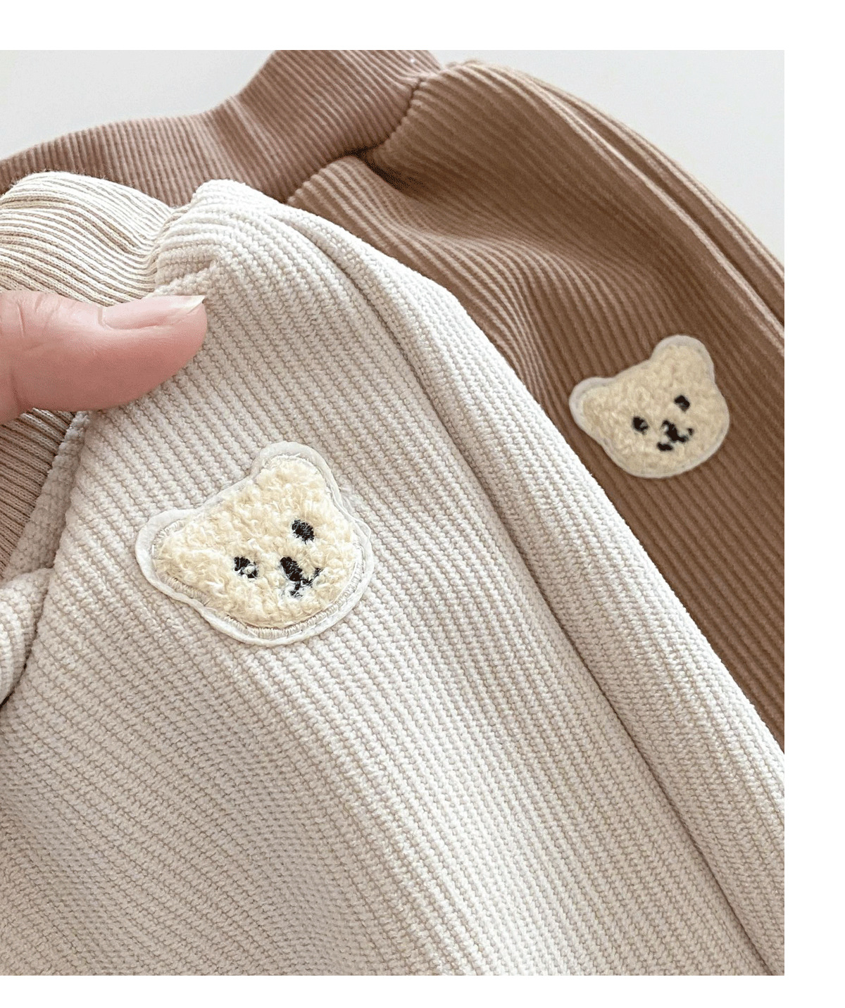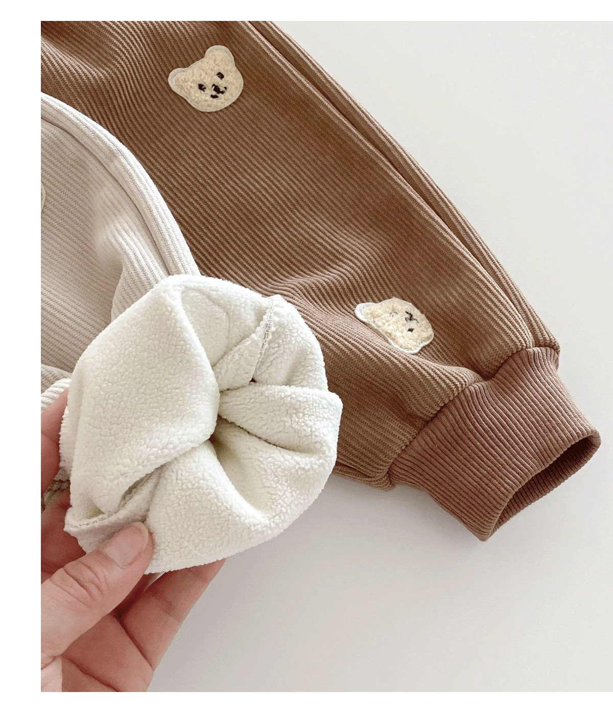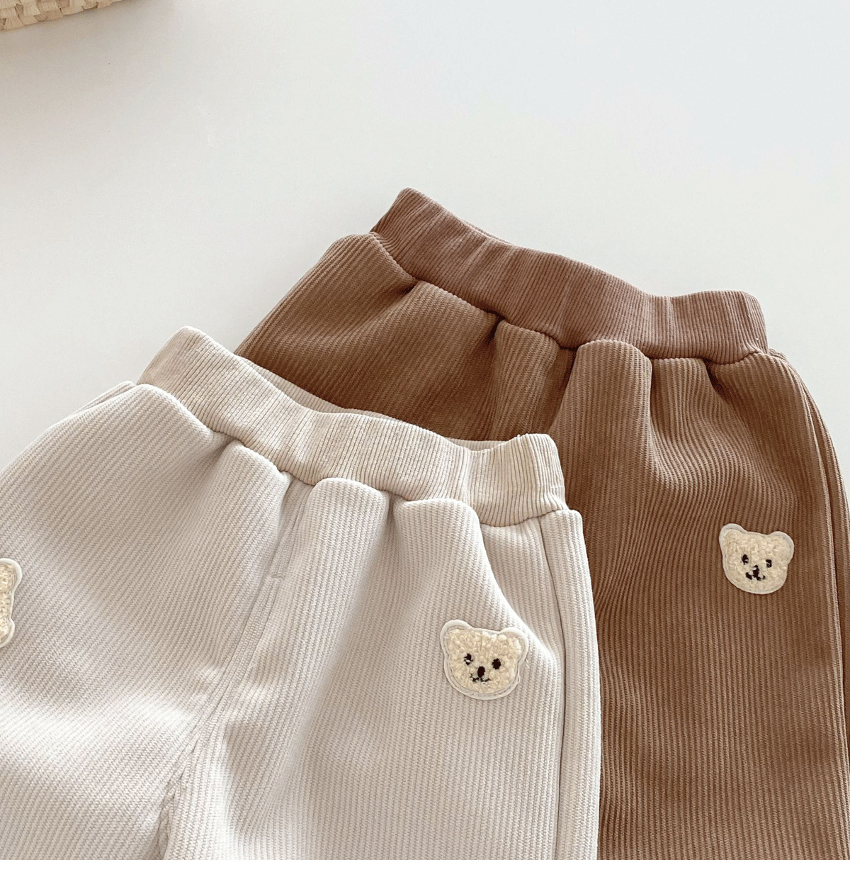 어린이 기모 베어 캐주얼 바지 2024 겨울 한국 어린이 착용 코듀로이 바지 아기 서양식 겨울복