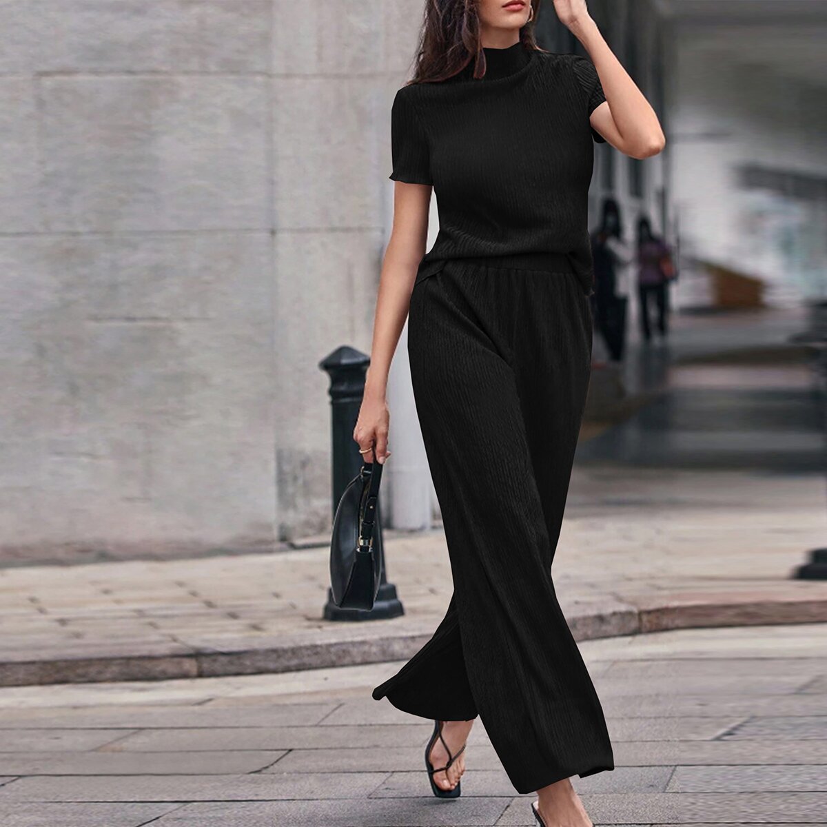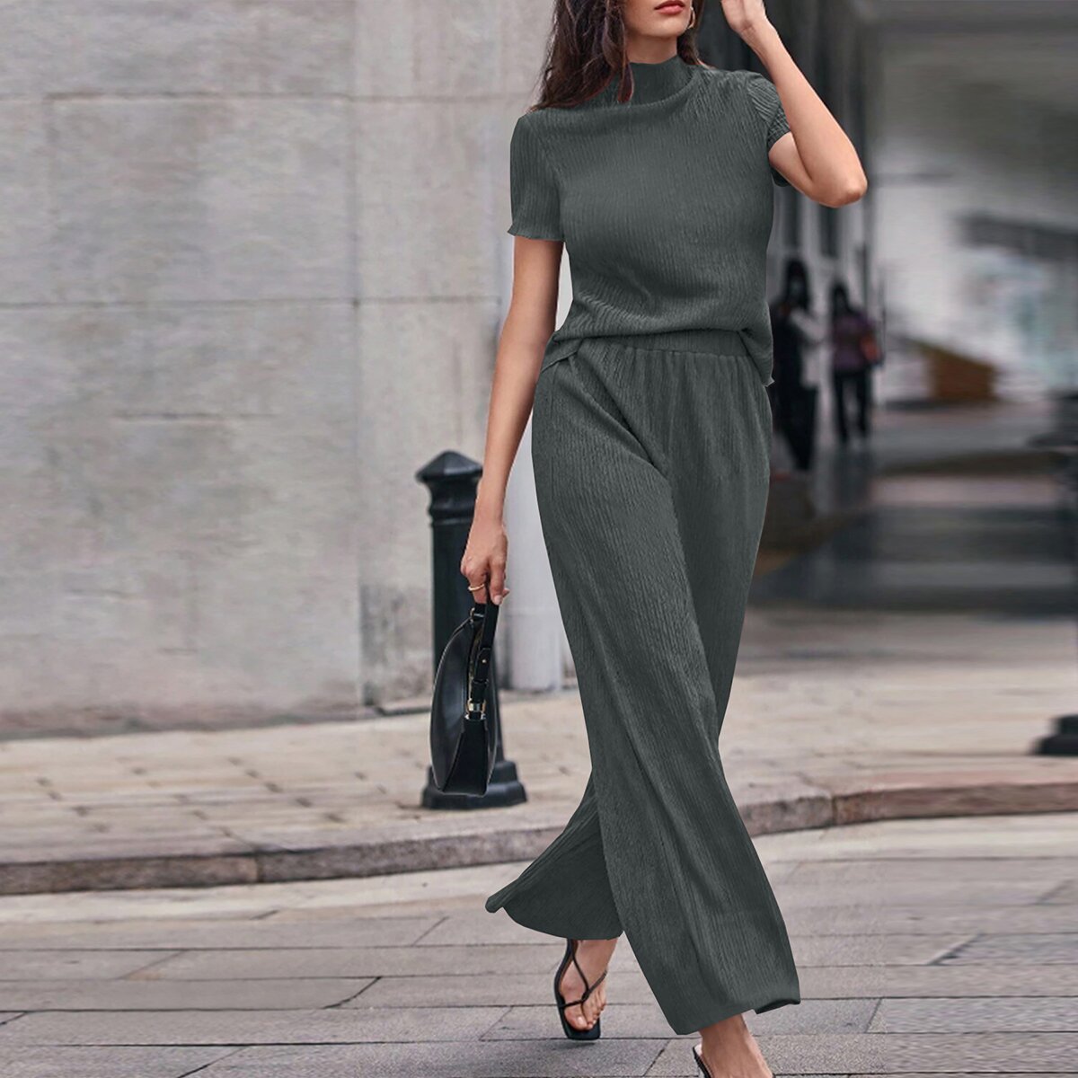 트레이드 글로벌 유럽 및 미국 매장의 보물 2026 봄/여름 핫세일 도시풍 주름 3부 소매 패션 캐주얼 세트