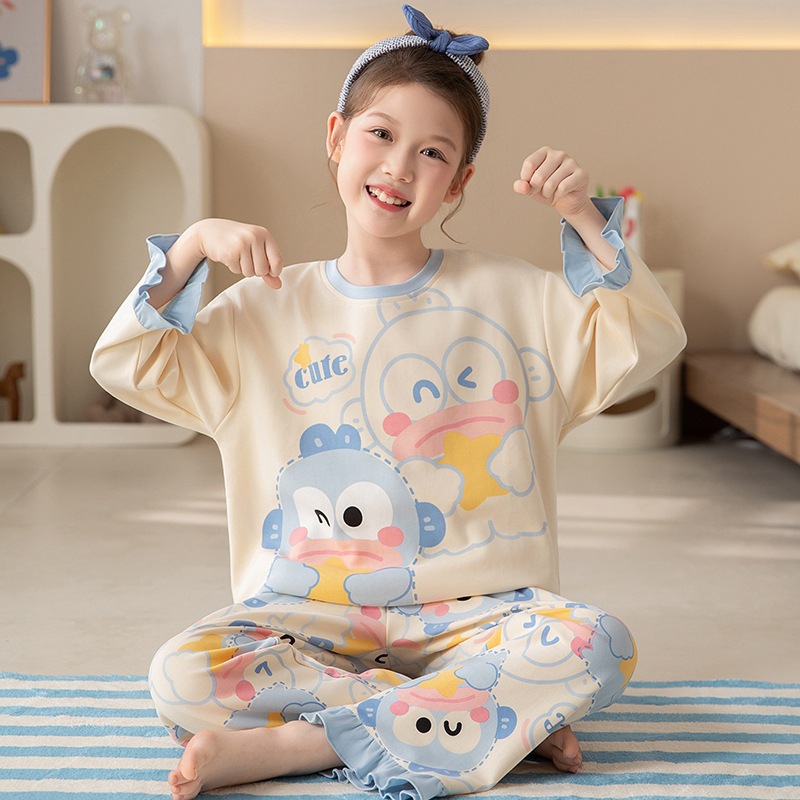 2025 새로운 순수 코튼 소녀 잠옷 얇은 긴 소매 봄, 가을 만화 에그 보이 파티 소녀와 어린이 홈웨어