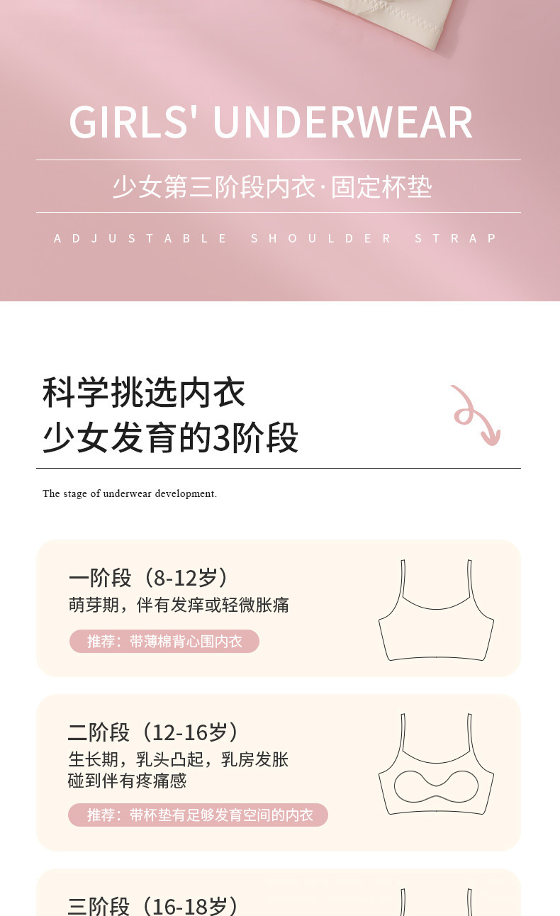 얇은 조끼 속옷을 개발하는 어린 소녀 16 세 학생 중학생 고등학생 3 단계 브라