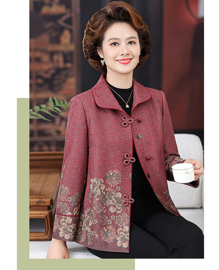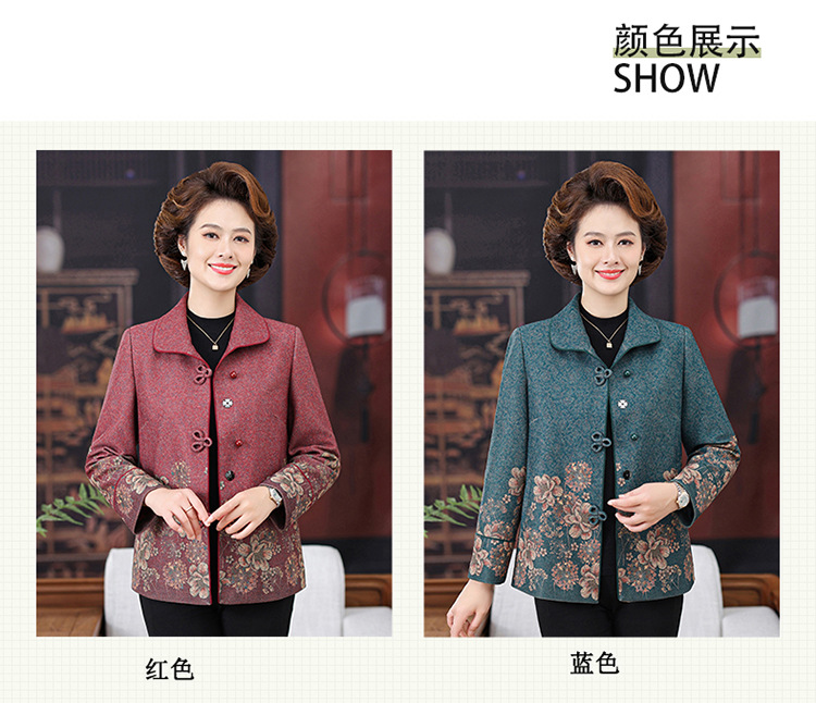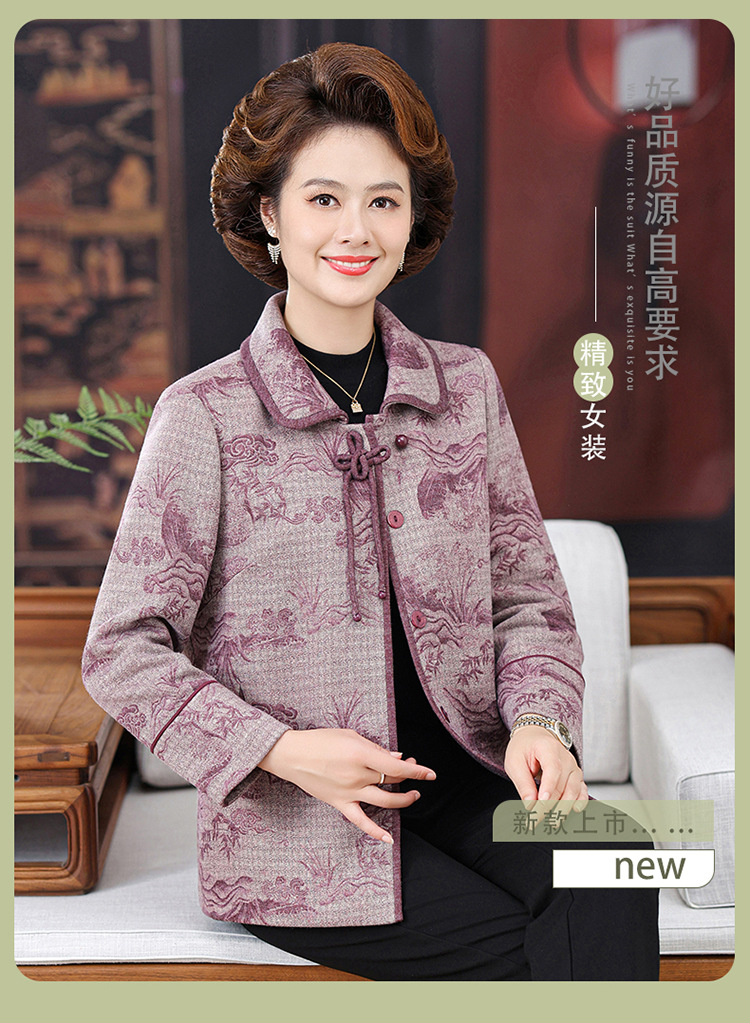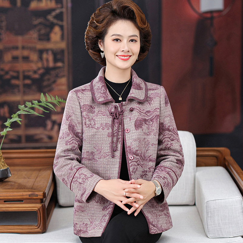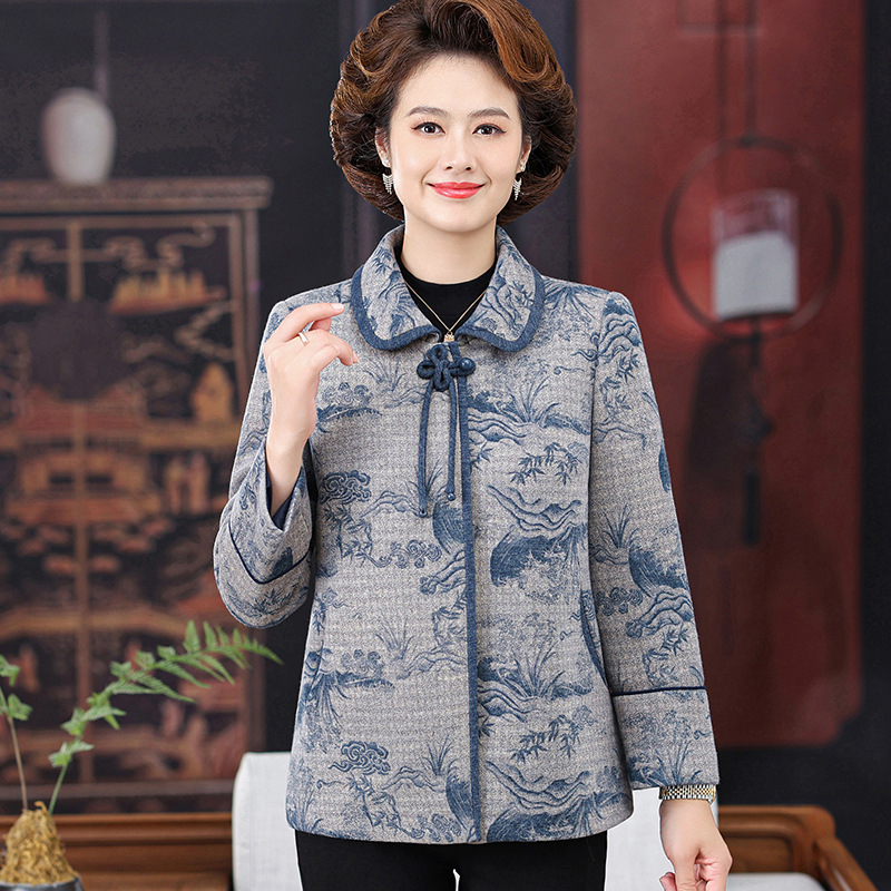가을 새로운 중년 및 노인 모직 트위드 탑 노부인 서양식 새로운 중국 가을 카디건 코트스토어 가기