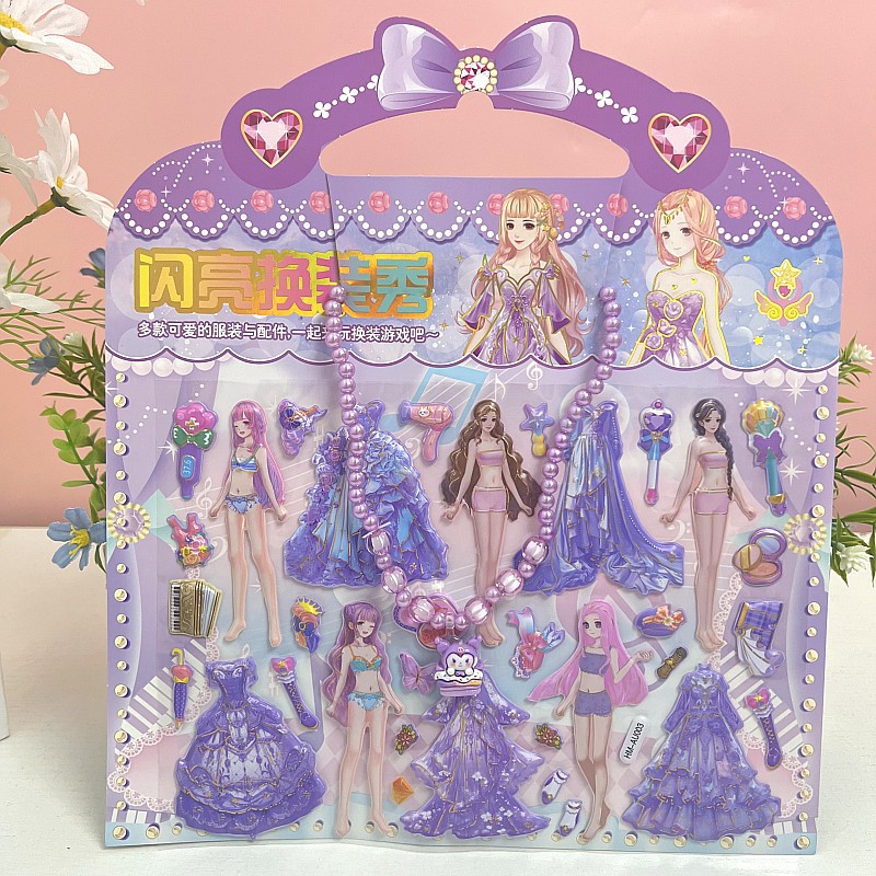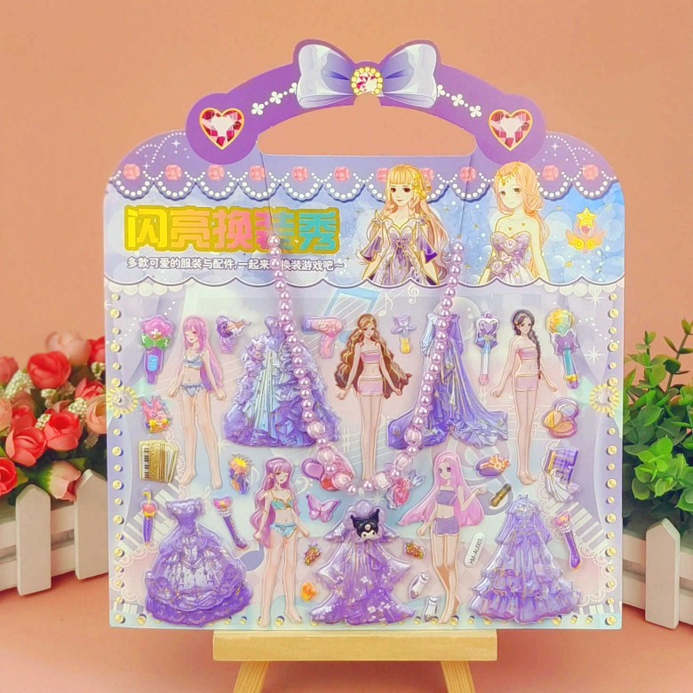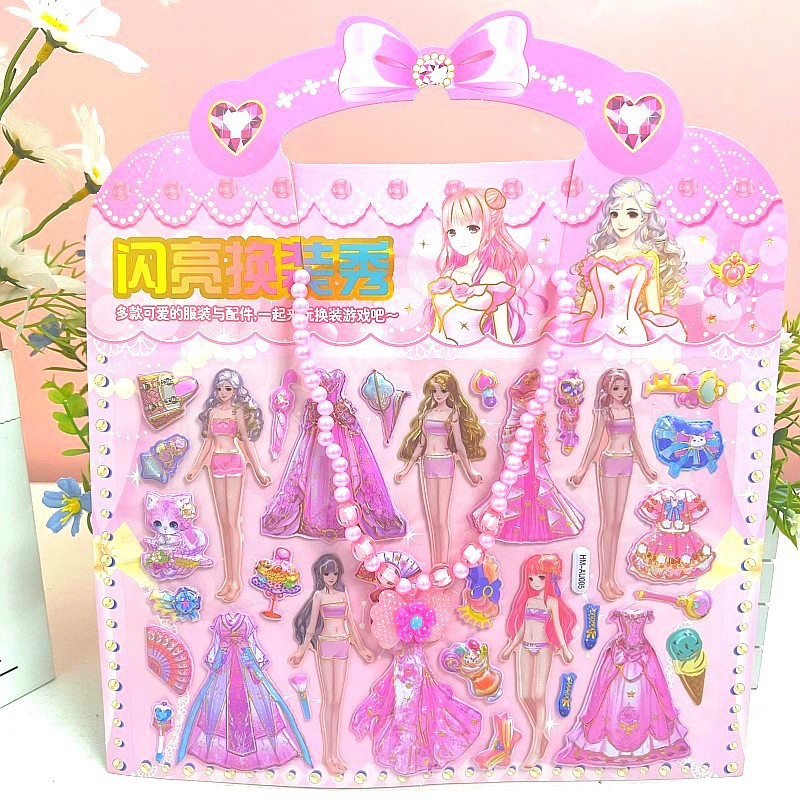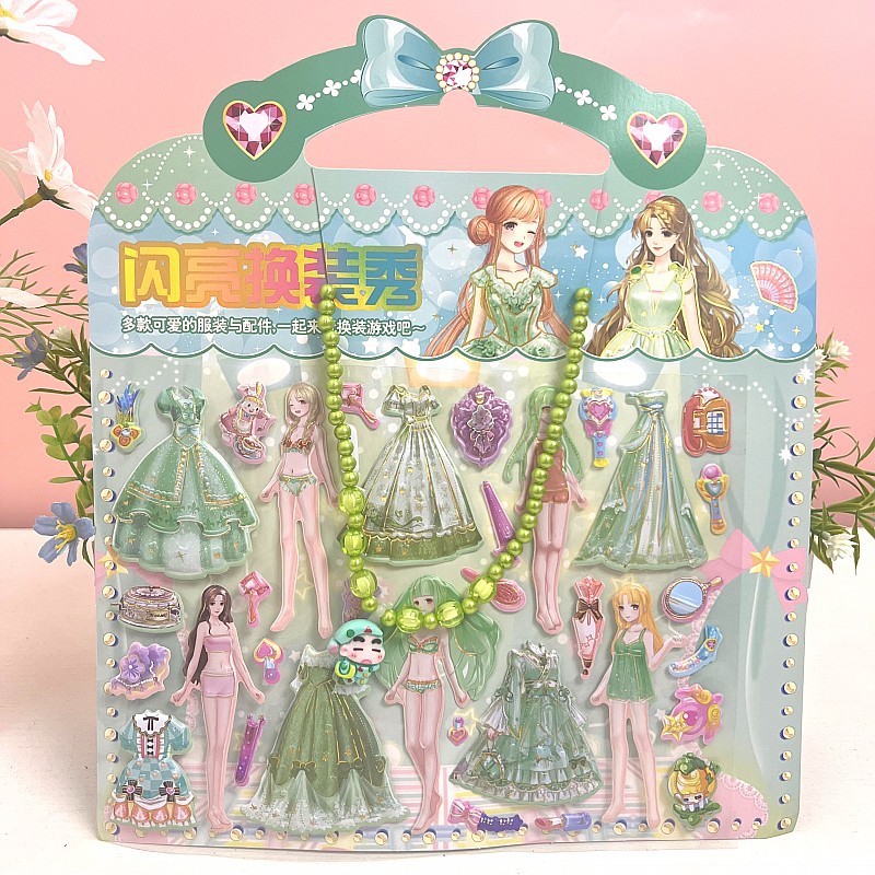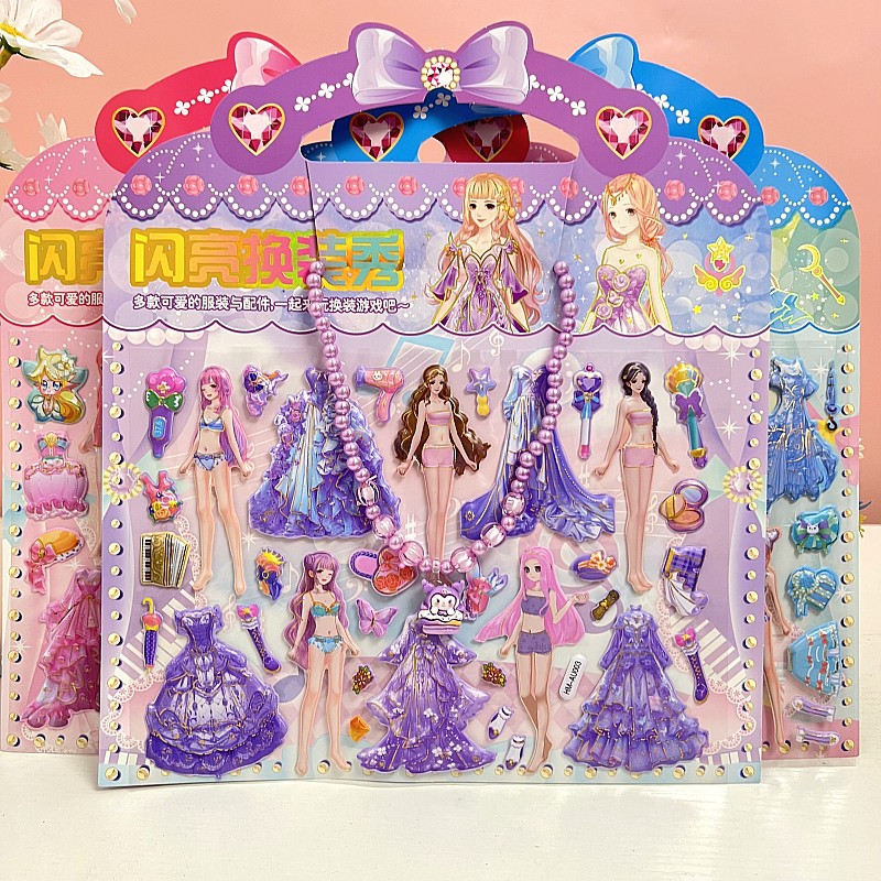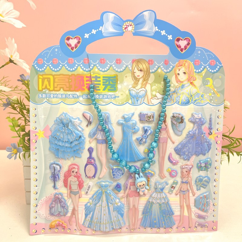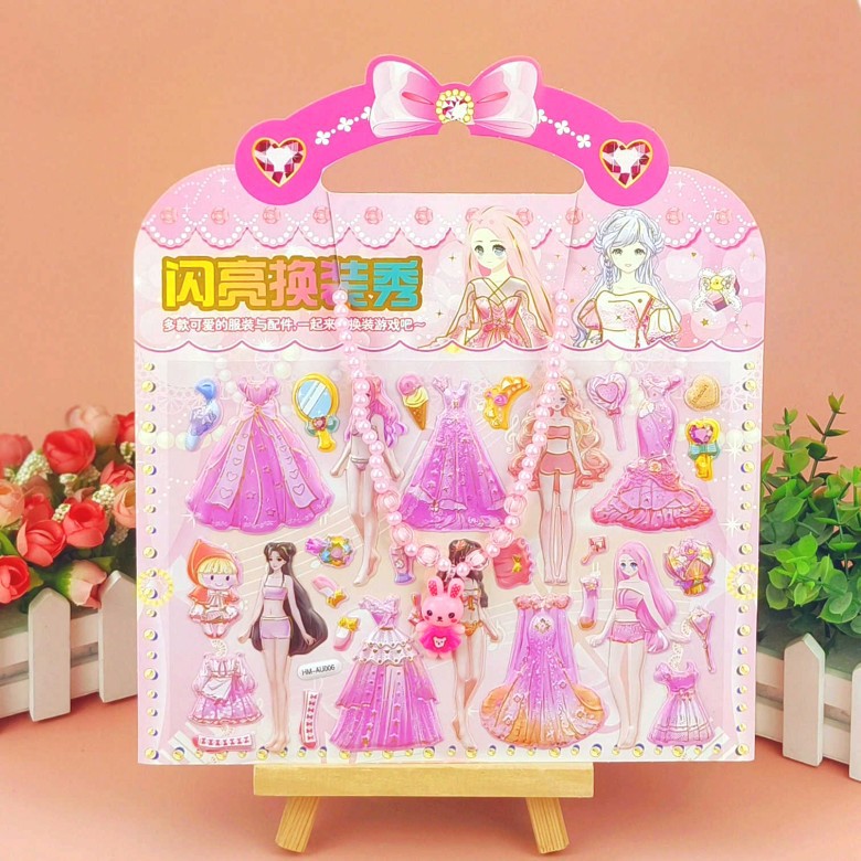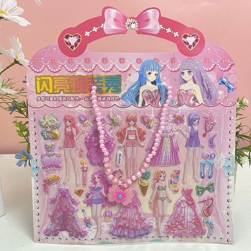 어린이 목걸이 원피스 스티커 소녀 만화 공주 원피스 업 스티커 상 입체 원피스 업 스티커 장난감스토어 가기