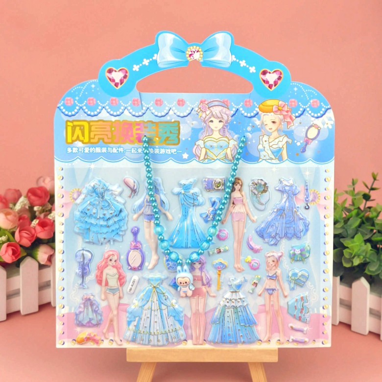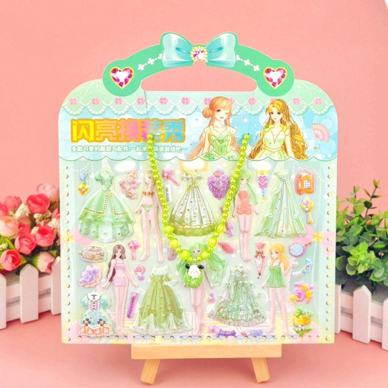 어린이 목걸이 원피스 스티커 소녀 만화 공주 원피스 업 스티커 상 입체 원피스 업 스티커 장난감