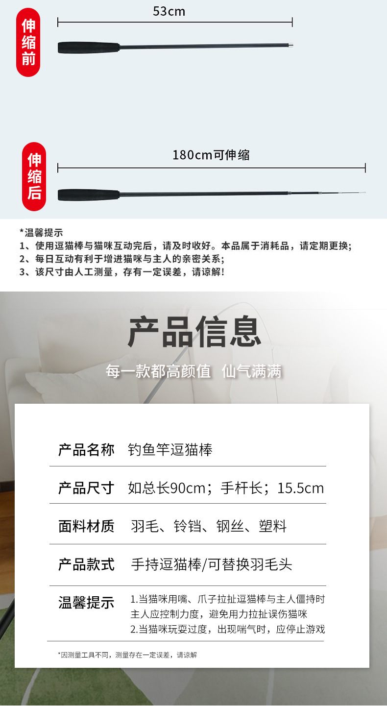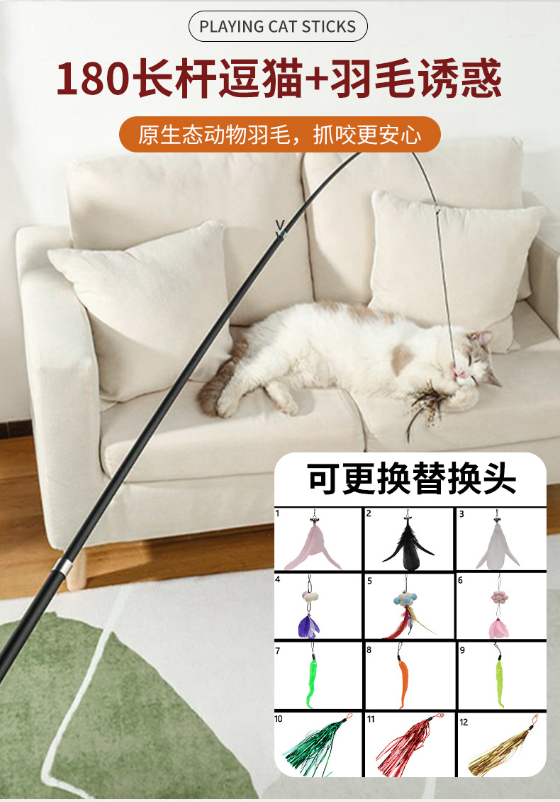 • 【 1.8m 낚싯대 】 흰색 깃털 【 엄선된 소재, 튼튼하고 재미있게 가지고 놀 수 있음 】