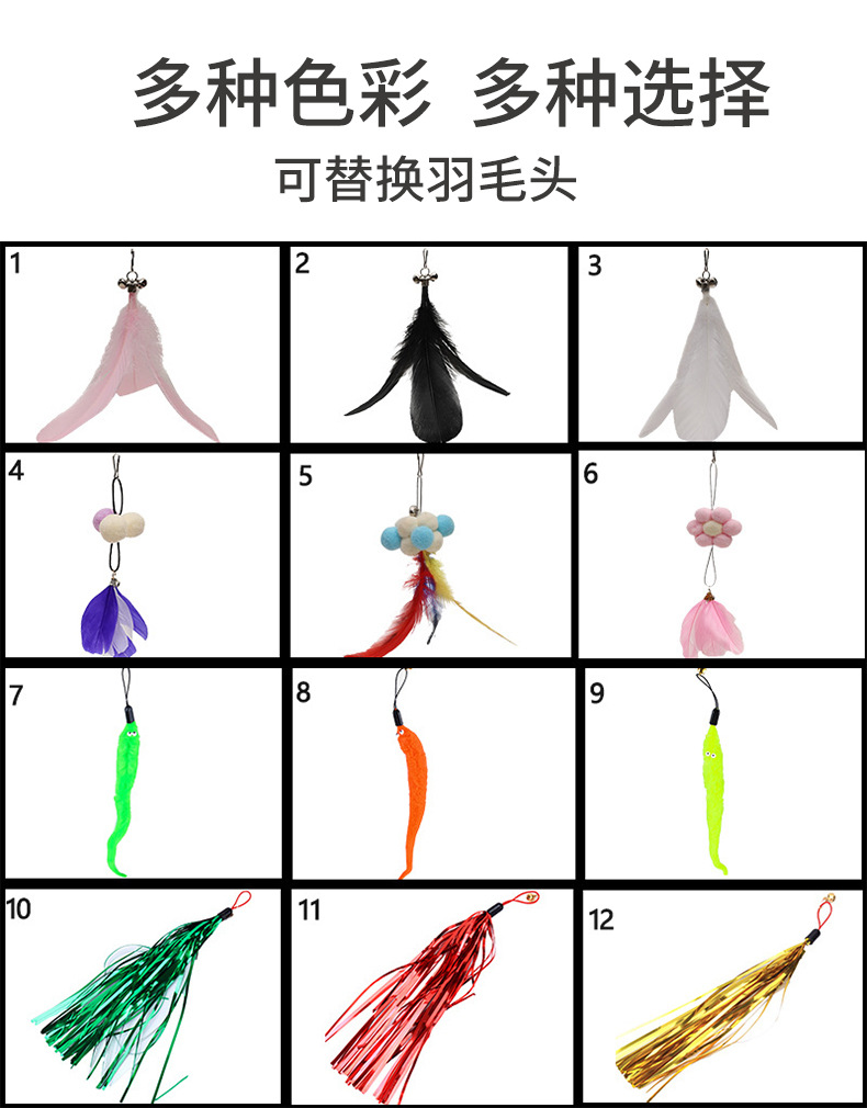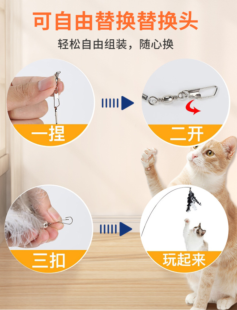 • 【낚싯대】 깃털 3개 + 털 폼폼 3개. 【엄선된 재료, 튼튼하고 오래 사용 가능】