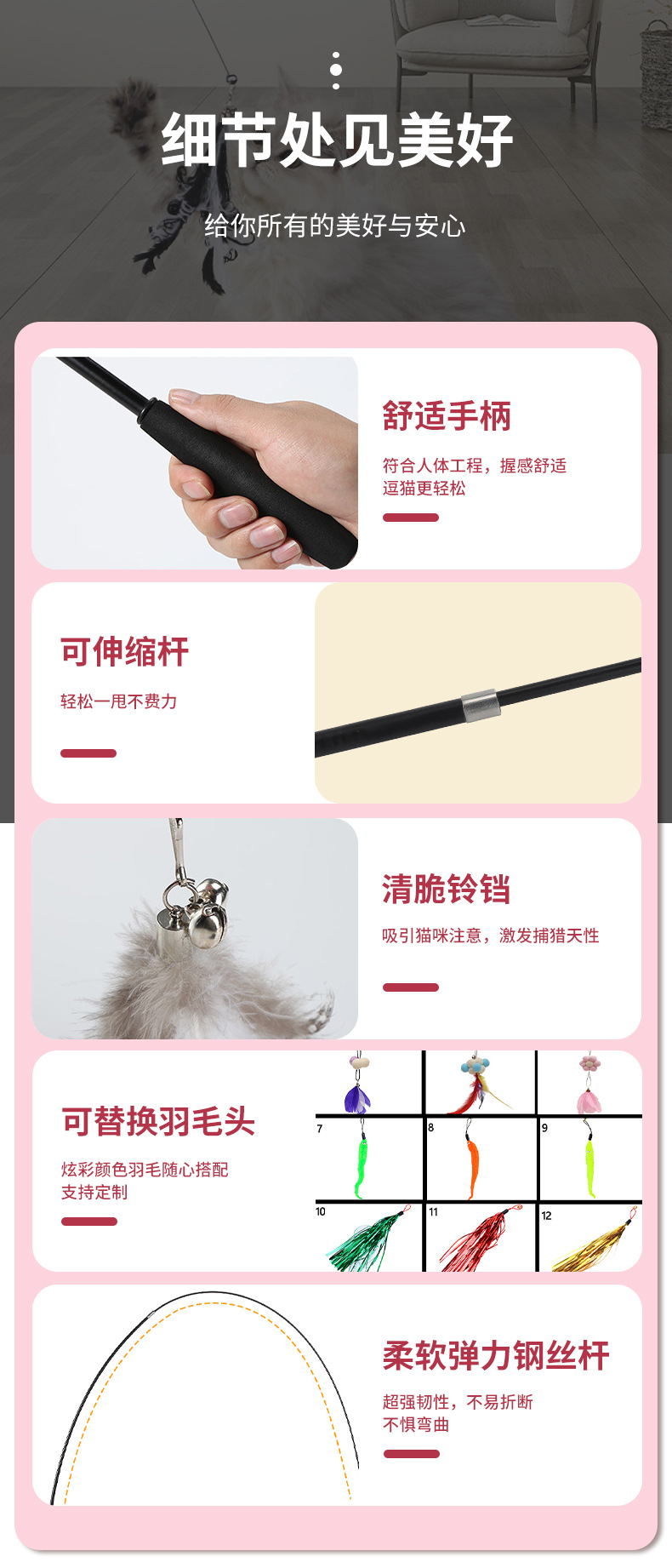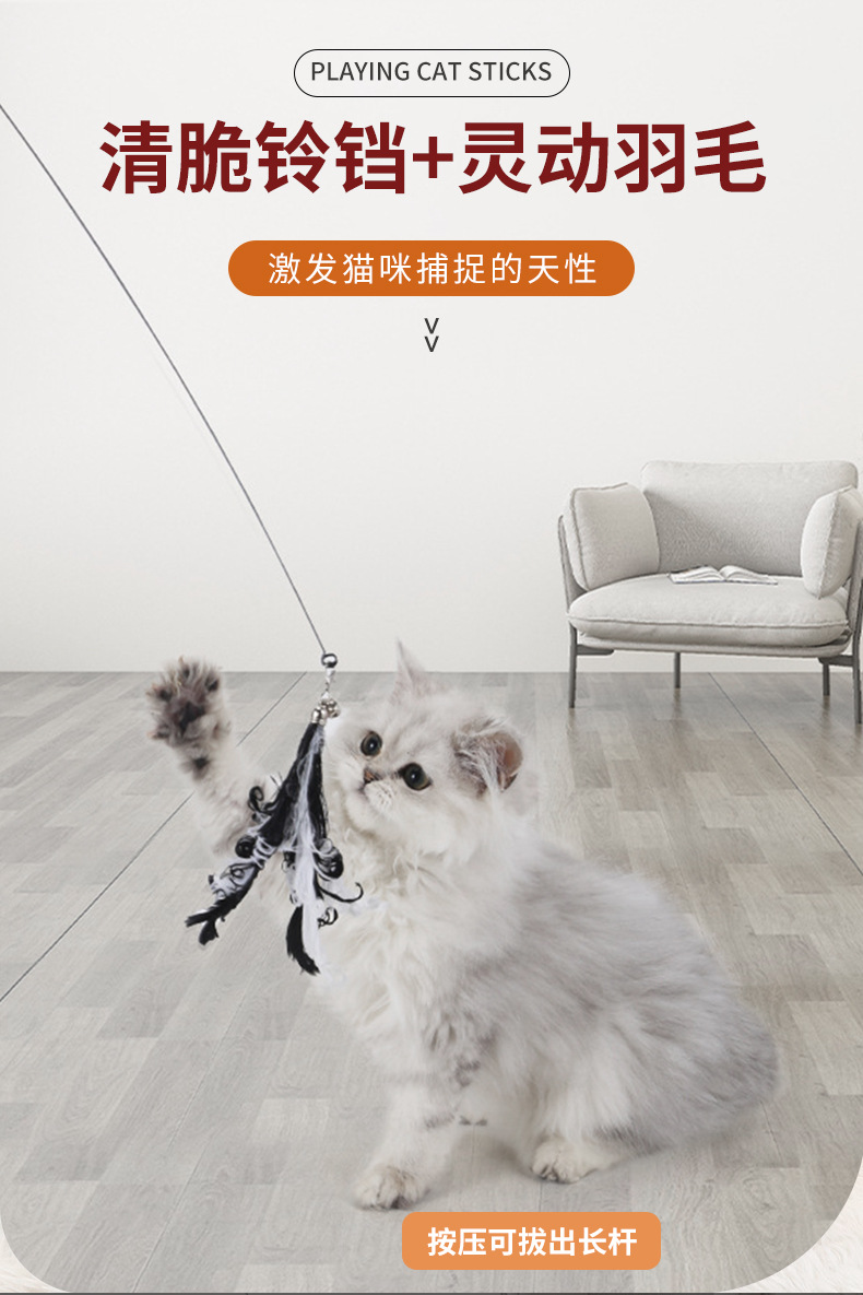 도매 긴 고양이 스틱 텔레스코픽 막대를 분리 할 수있는 새로운 고양이 자기 답답한 애완 동물 장난감 고양이 장난감