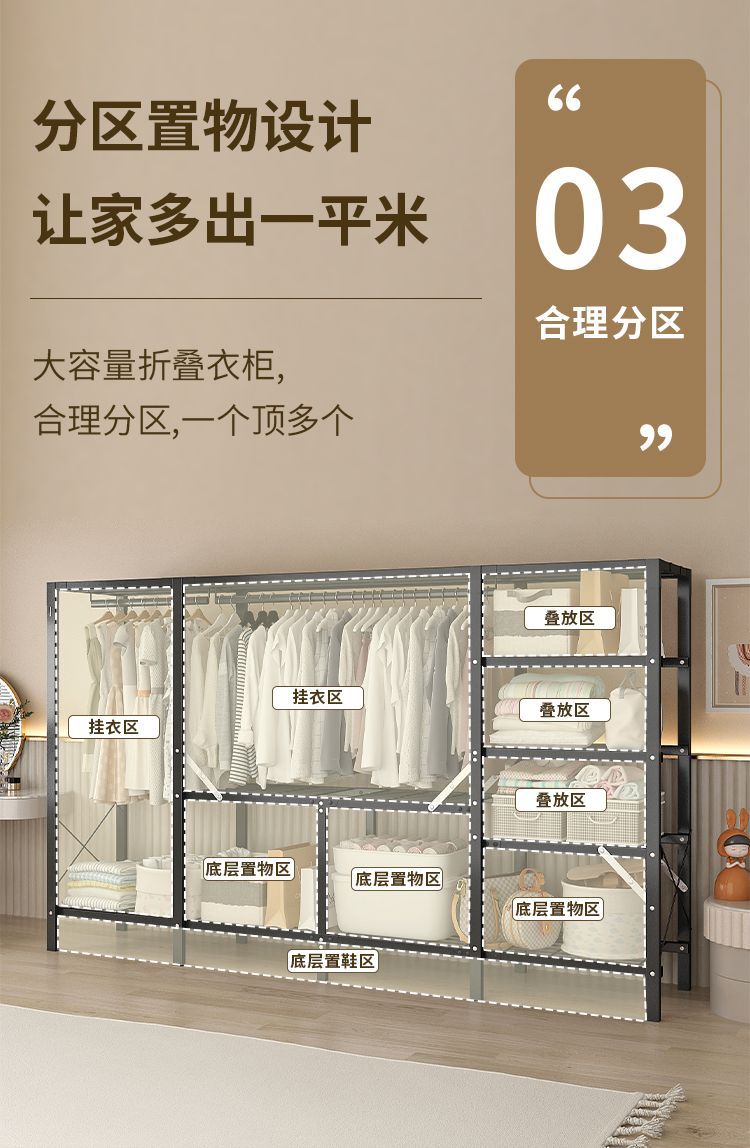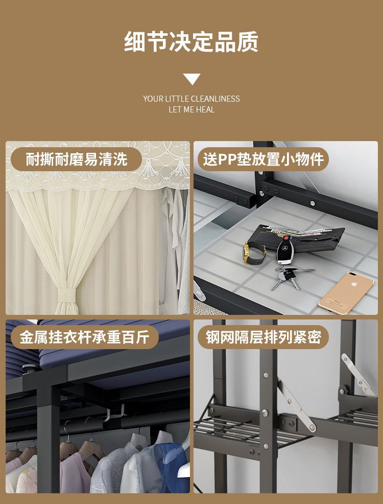 설치-무료 접이식 옷장 홈 침실 간단한 천 옷장 두꺼운 금속 옷장 공장 아울렛