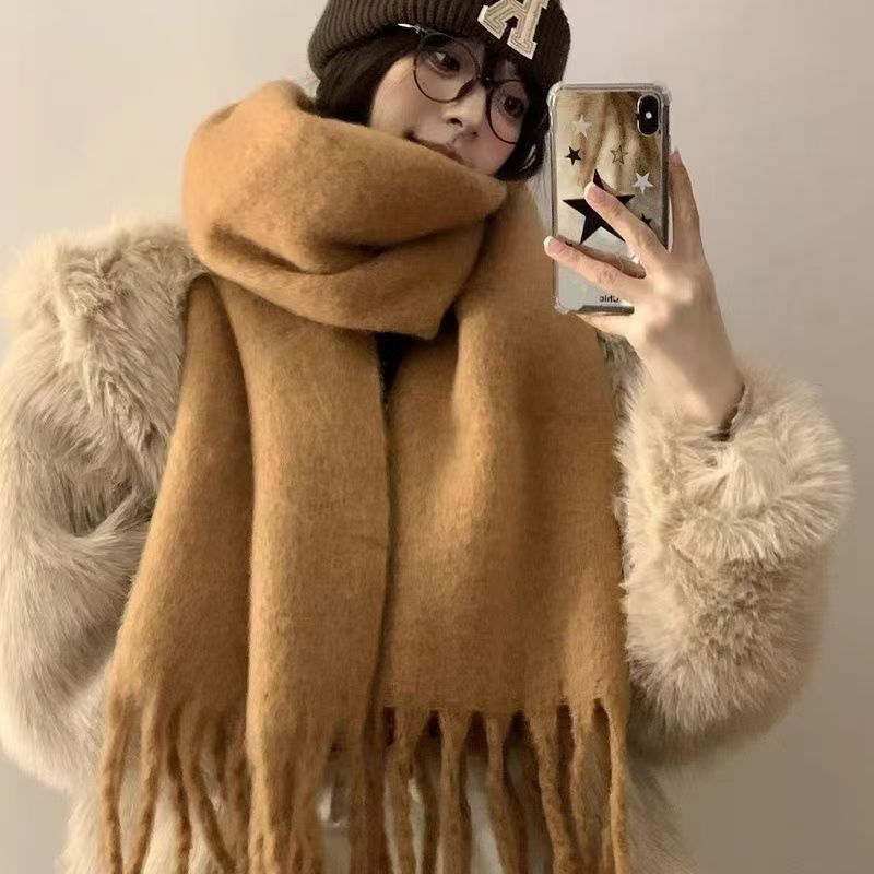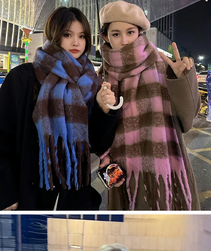 겨울 스카프 여성의 긴 두꺼운 국경 간 술 격자 무늬 스카프 인터넷 연예인 같은 스타일 AC 따뜻한 목도리 스카프 무지개스토어 가기