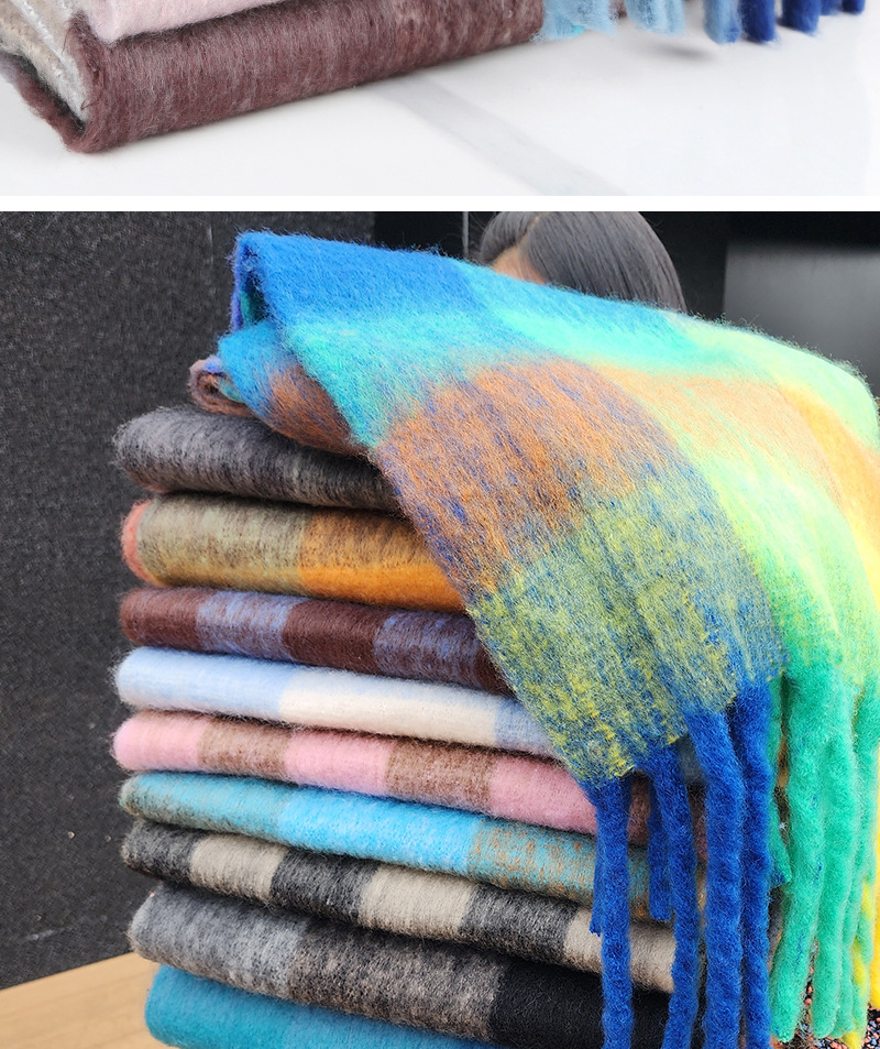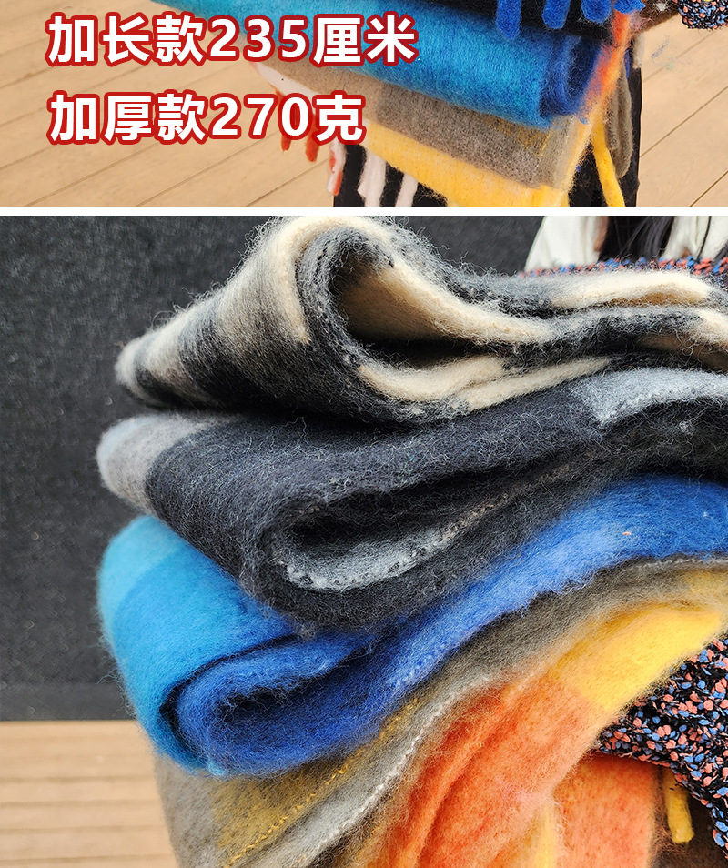 겨울 스카프 여성의 긴 두꺼운 국경 간 술 격자 무늬 스카프 인터넷 연예인 같은 스타일 AC 따뜻한 목도리 스카프 무지개