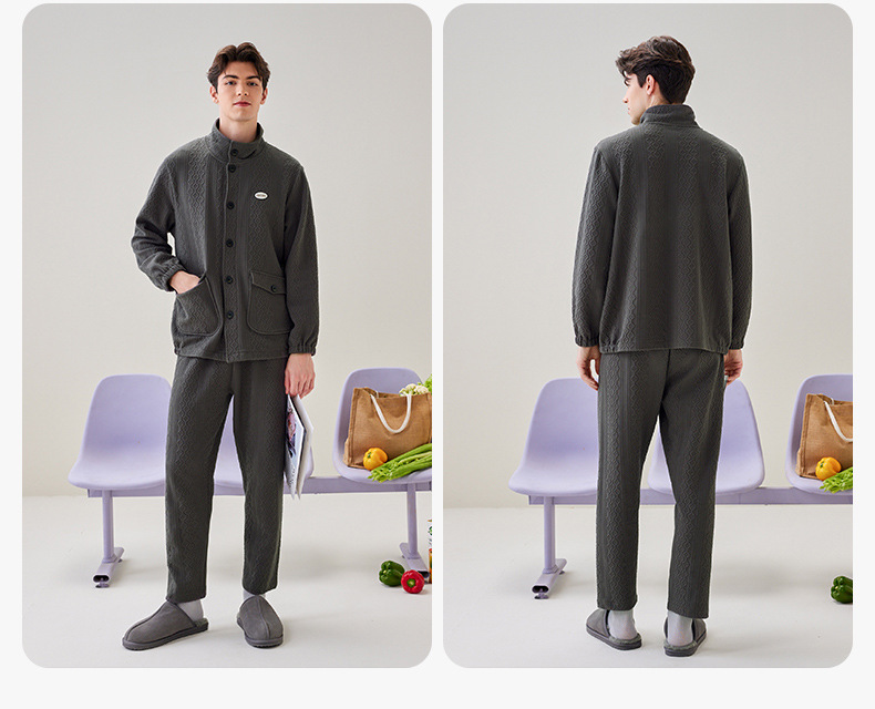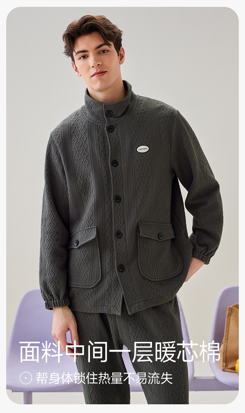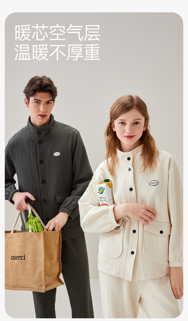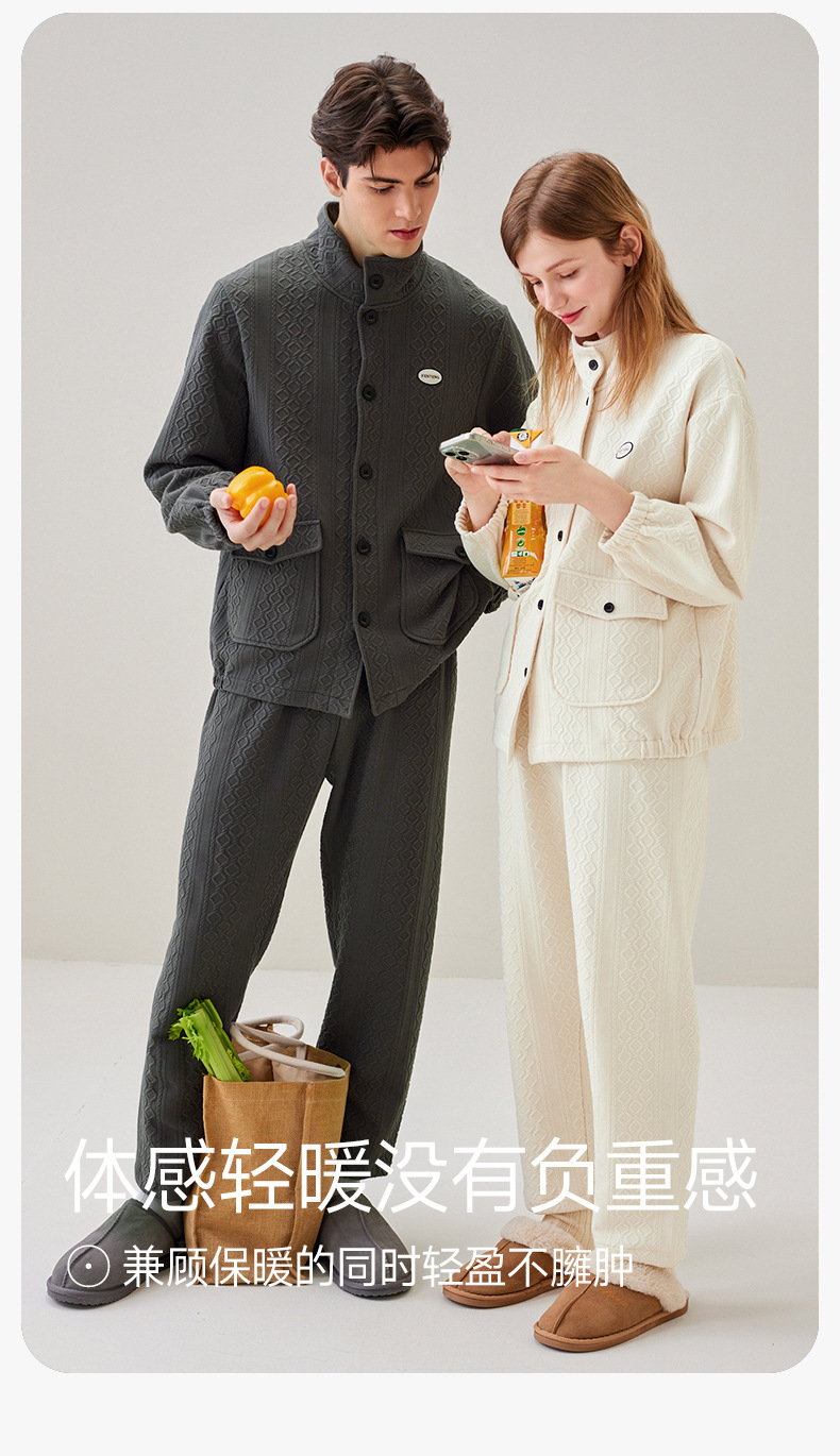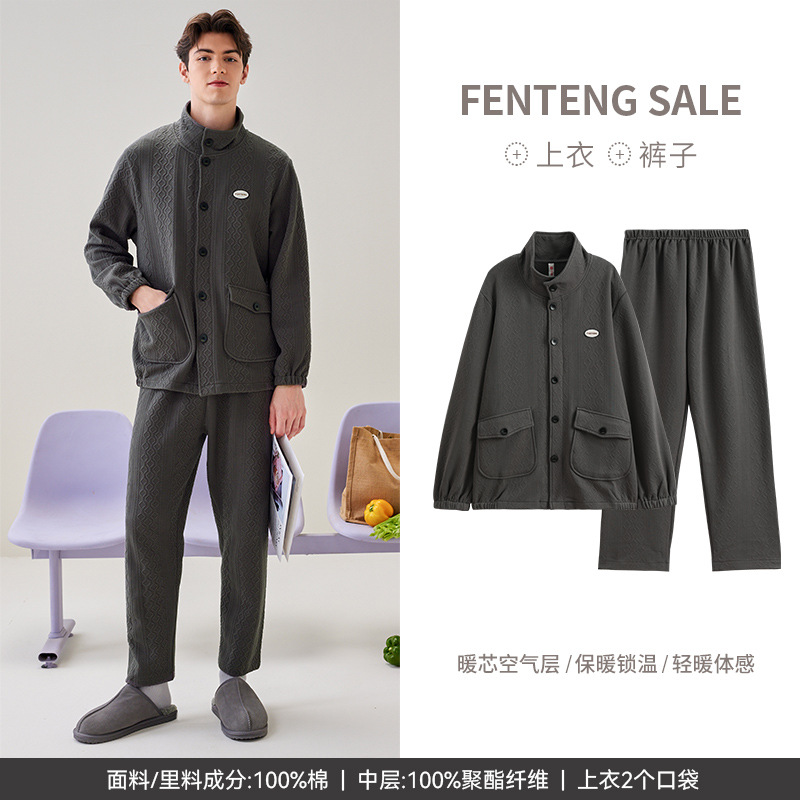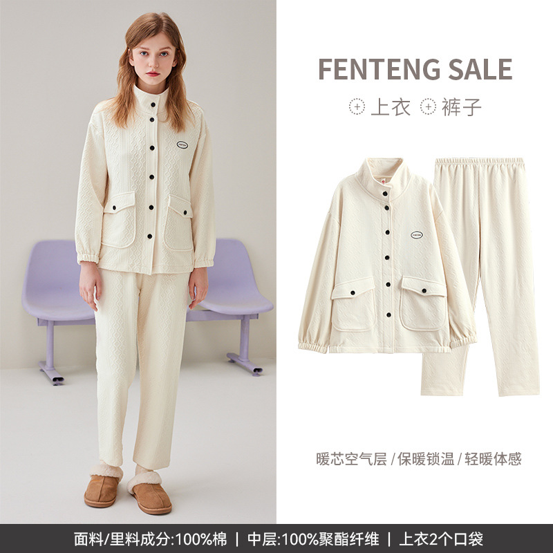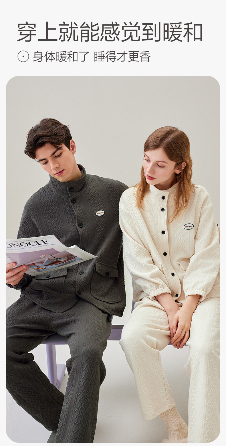 [따뜻한 코어 에어면 인터레이어] 커플 파자마 코튼 긴소매 가을과 겨울 여성은 겉집 남자 세트 입을 수 있습니다스토어 가기