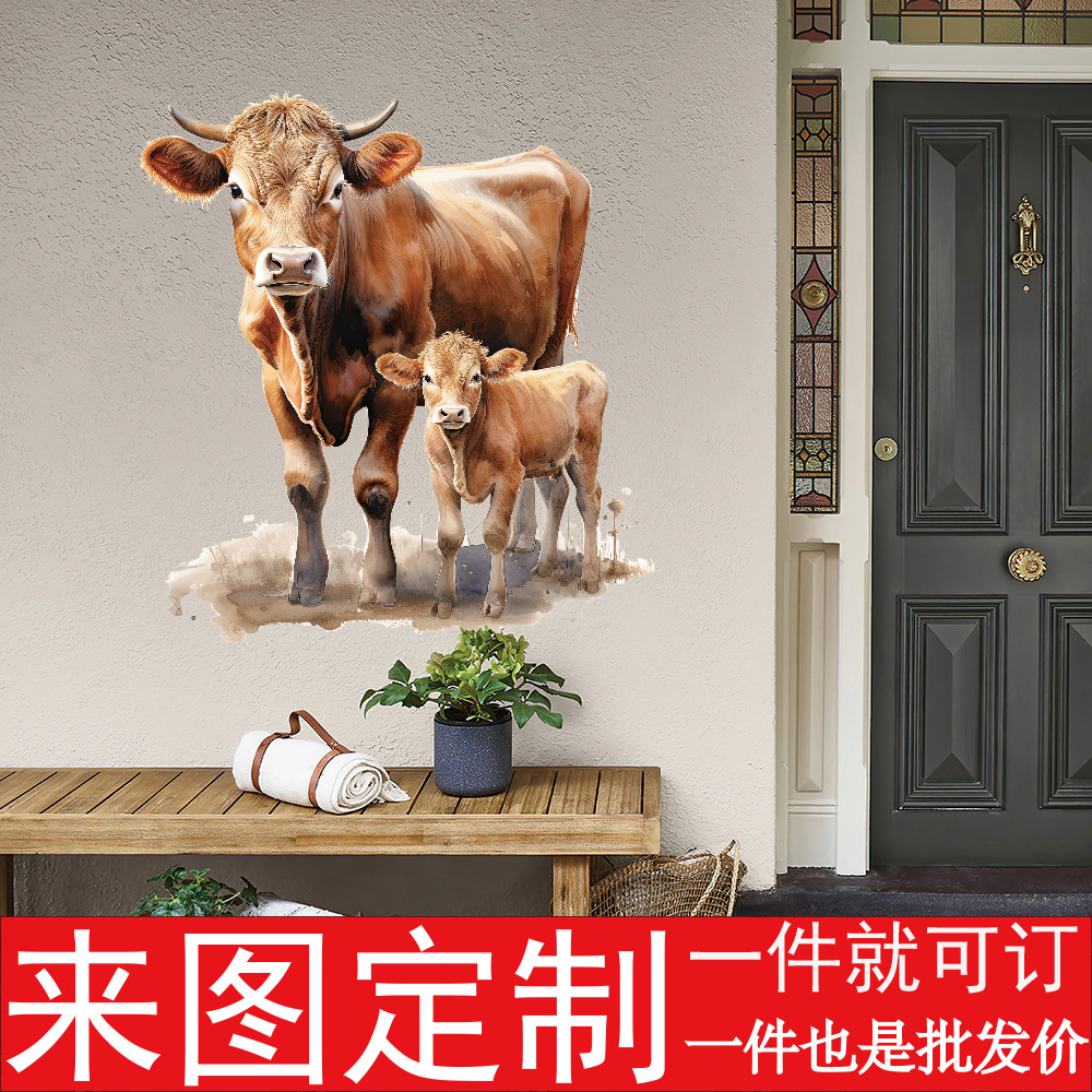국경 간 대외 무역 새로운 창조적 인 동물 벽 스티커 소 방수 벽 스티커 거실 침실 창 방수 스티커