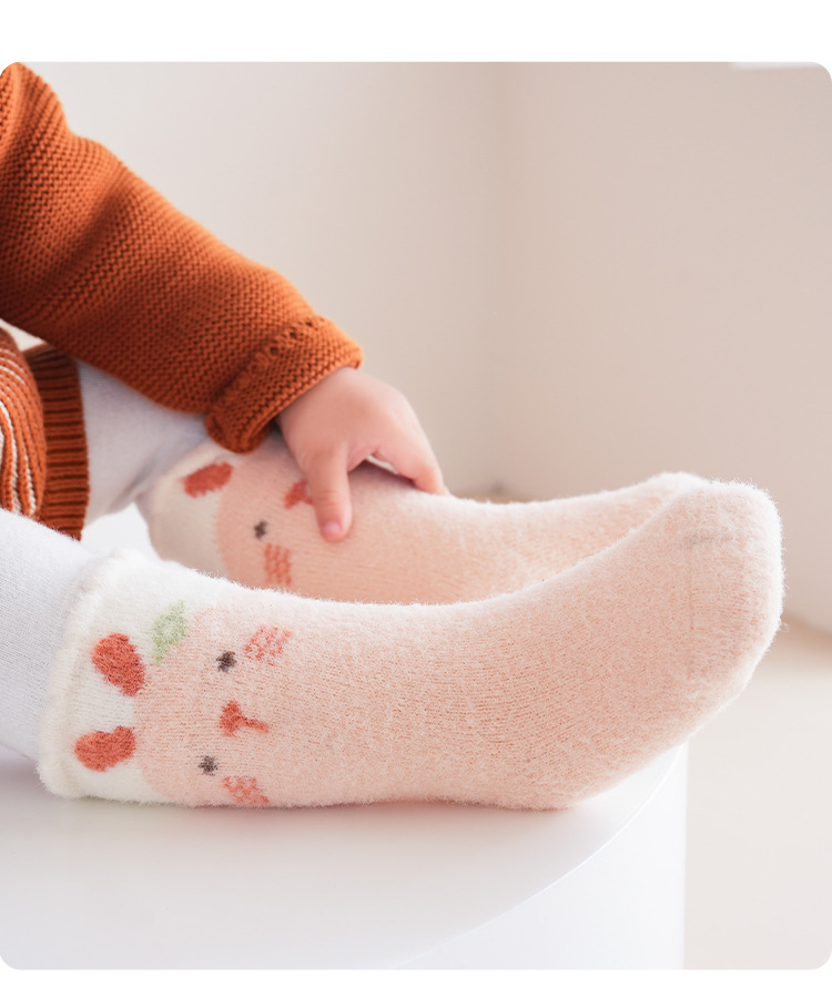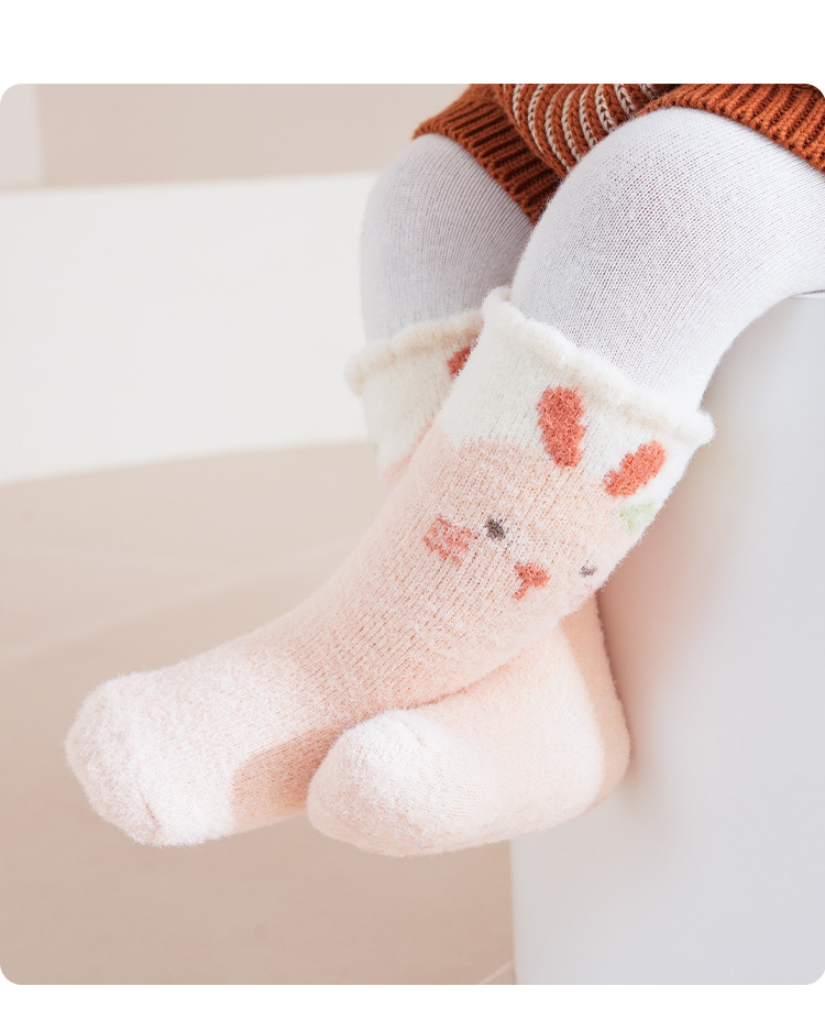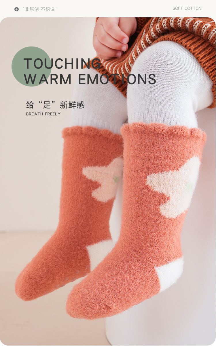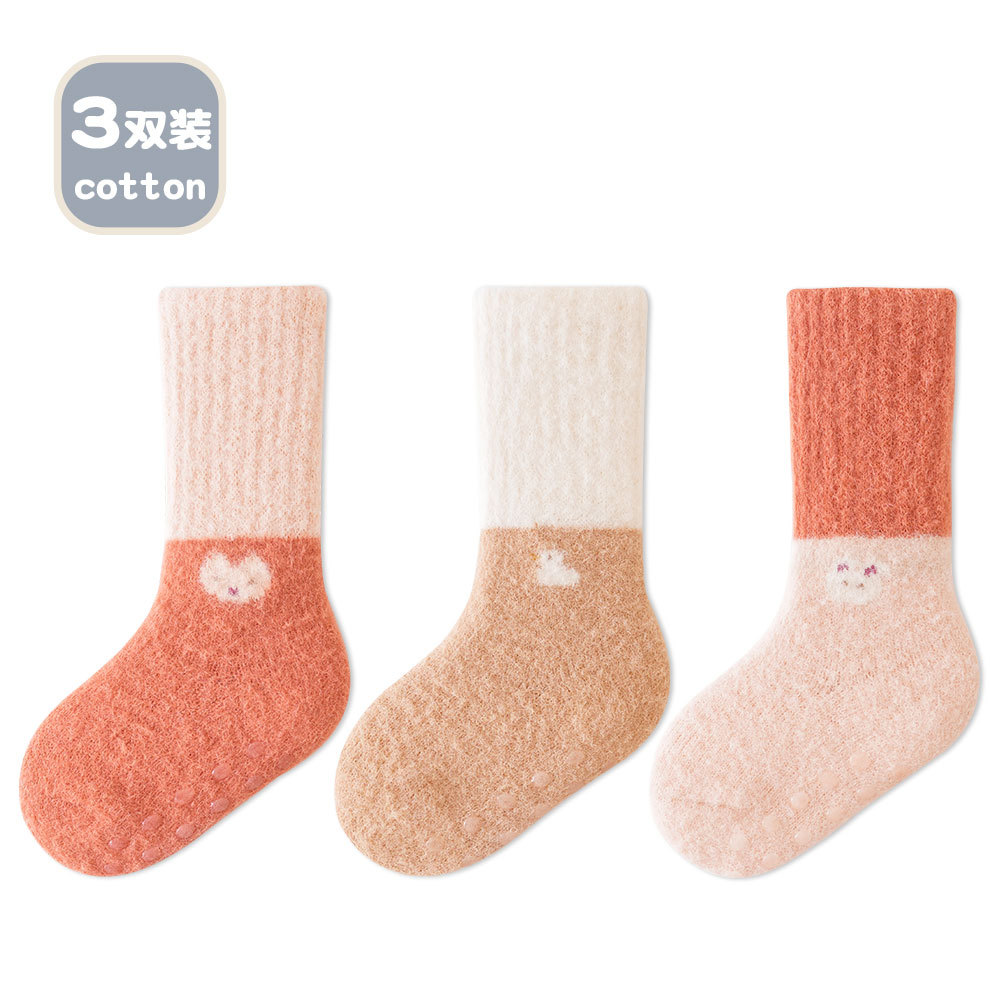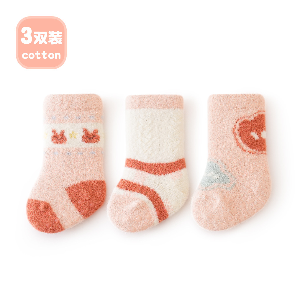 가을 겨울 두꺼운 보온 아기 바닥 양말 만화 토끼 실내 아기 미끄럼 방지 걸음마 양말 점착 어린이 양말
