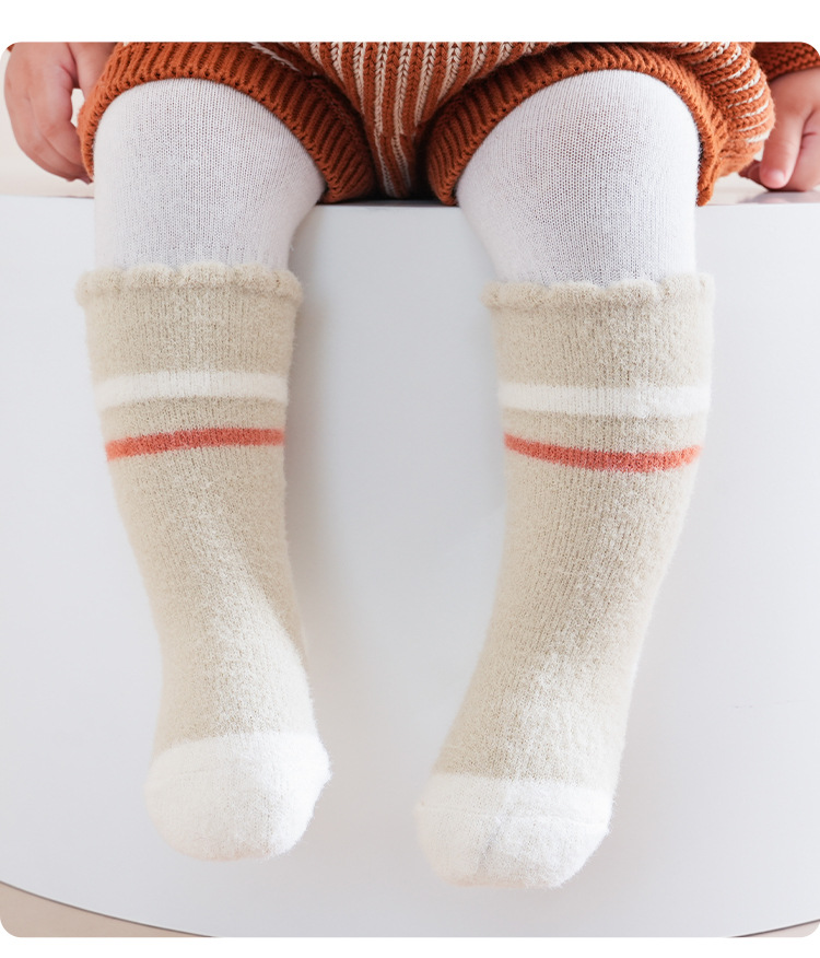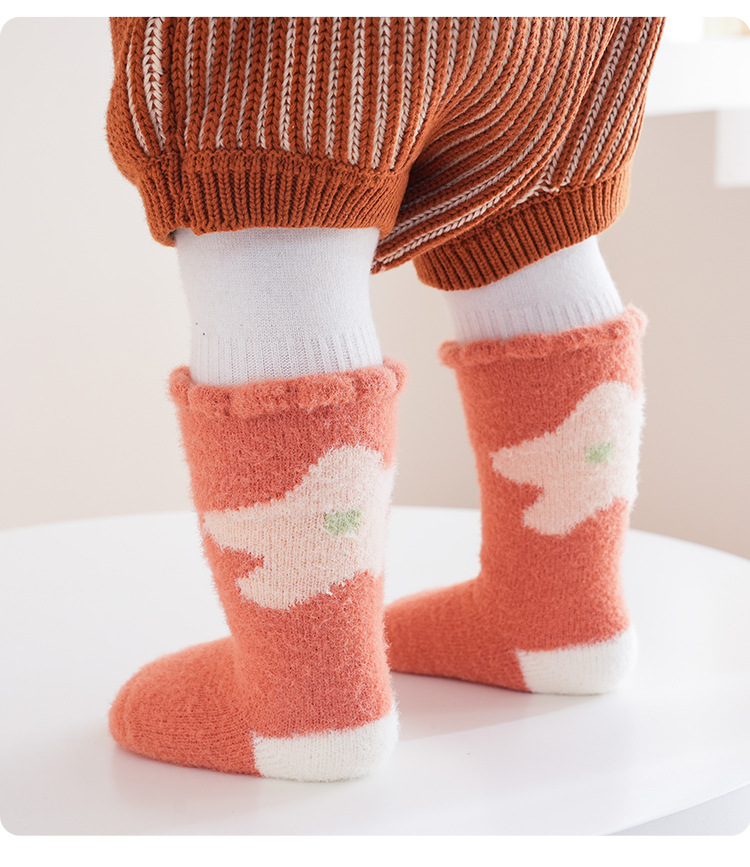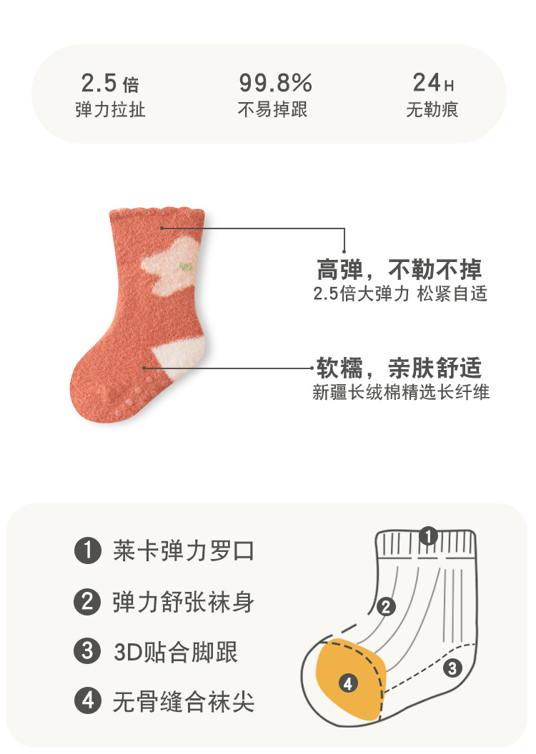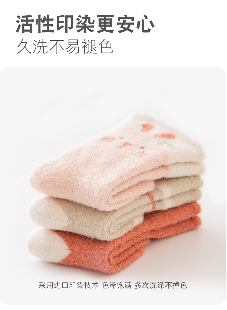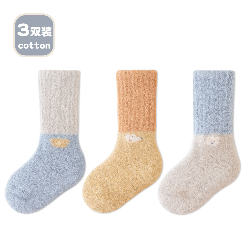 가을 겨울 두꺼운 보온 아기 바닥 양말 만화 토끼 실내 아기 미끄럼 방지 걸음마 양말 점착 어린이 양말