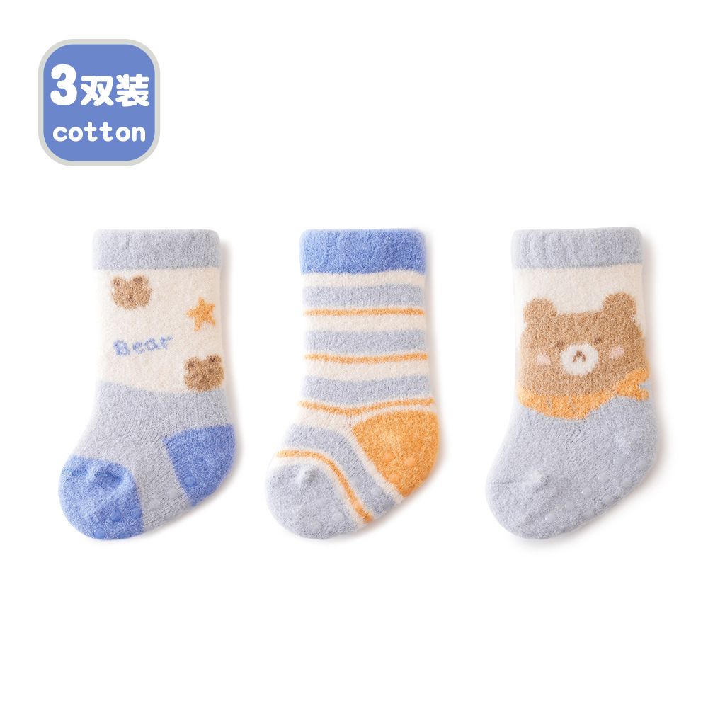 가을 겨울 두꺼운 보온 아기 바닥 양말 만화 토끼 실내 아기 미끄럼 방지 걸음마 양말 점착 어린이 양말스토어 가기