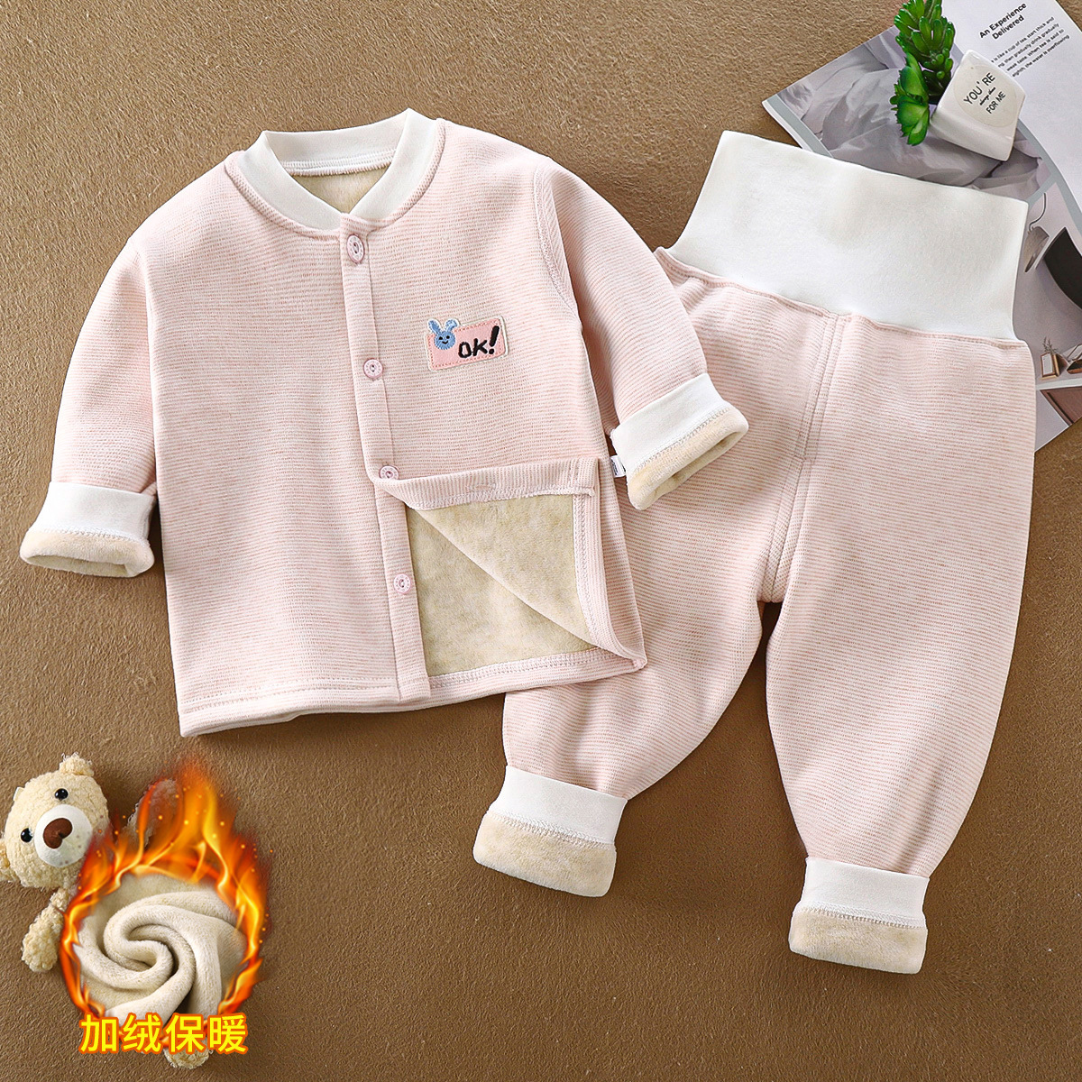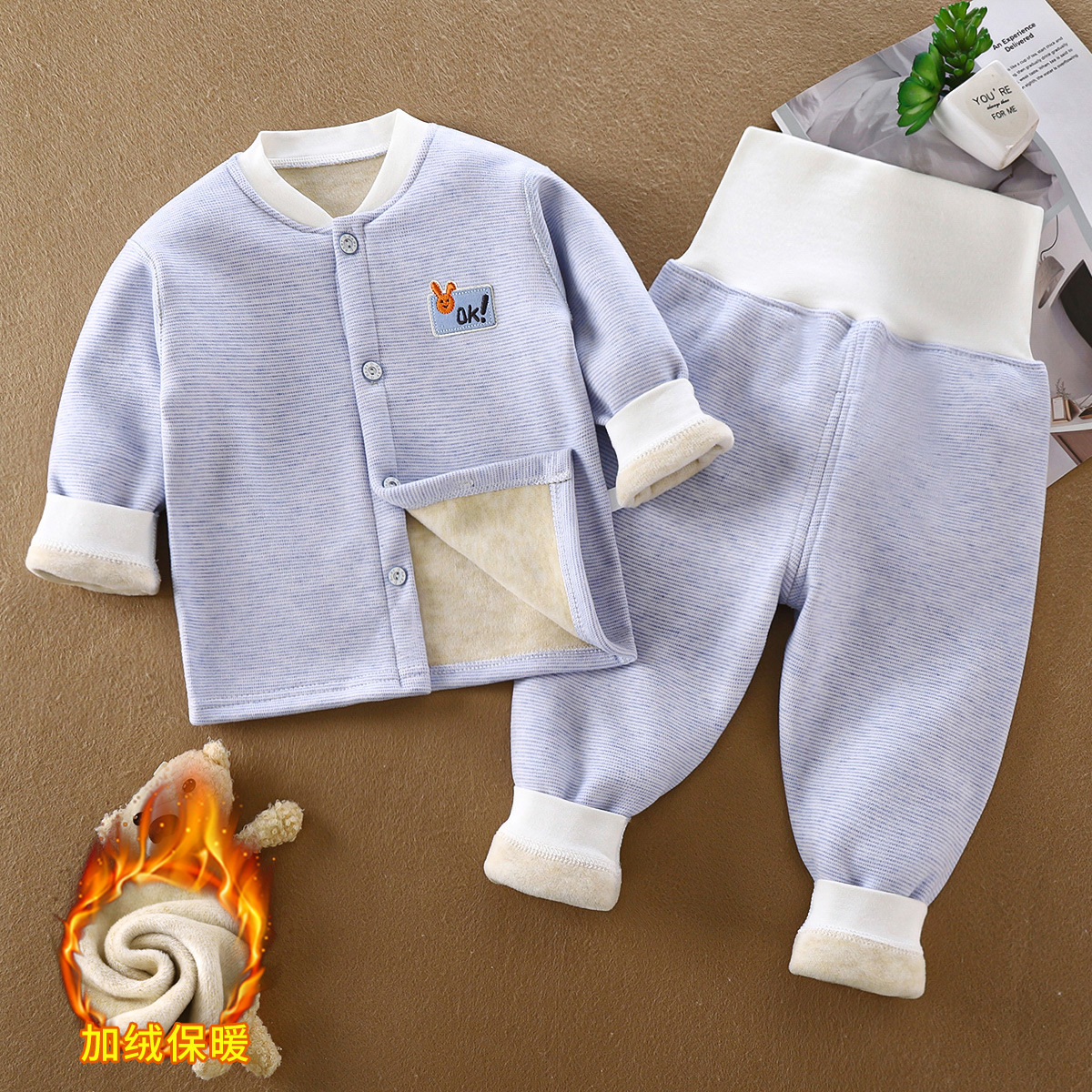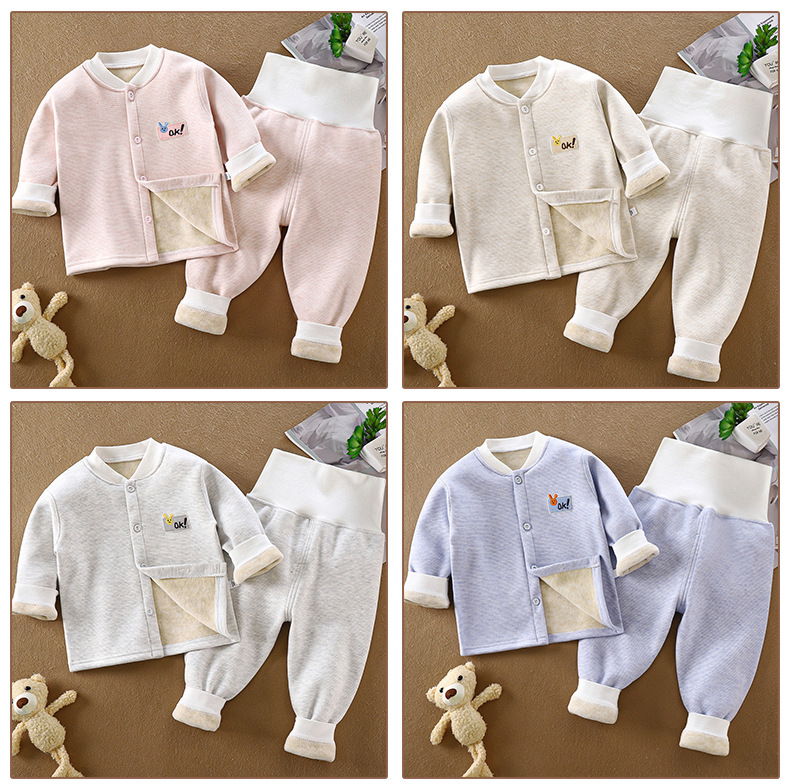 아기용 플리스 세트, 아동용 무봉제 하이웨이스트 보온 내의, 유아용 두꺼운 봄가을 남녀공용 잠옷, 가을겨울용스토어 가기