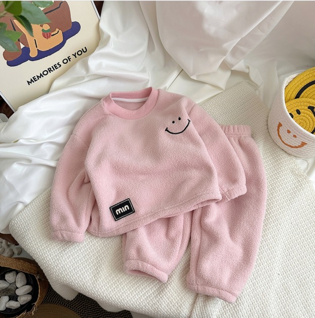어린이 잠옷 세트 따뜻한 가을과 겨울 새 소년 두꺼운 가정 옷 아기 기모 옷 세트 도매