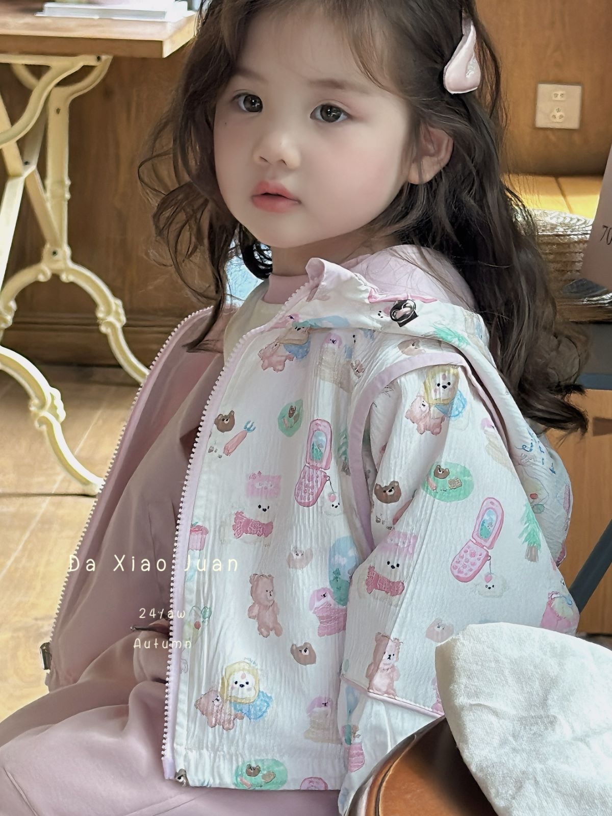 24 가을 겨울 새로운 크고 작은 한국어 버전 귀여운 만화 프린트 양면 후드 지퍼 절묘한 아동용 재킷스토어 가기