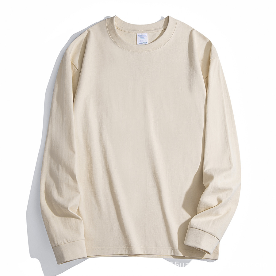 300g 무거운 패션 긴 소매 티셔츠 느슨한 솔리드 컬러 탑 화이트 티셔츠베이스 셔츠