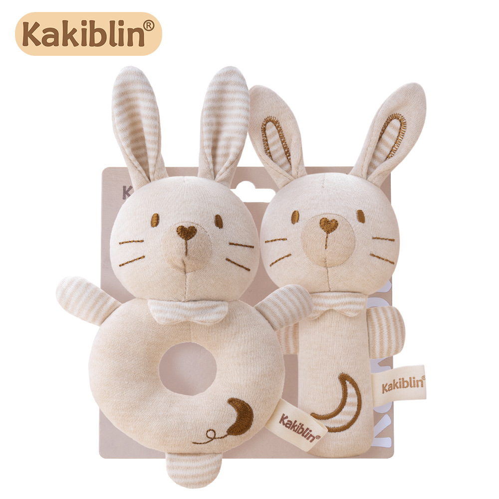 kakiblin有机棉宝宝手摇铃玩具套装婴儿手摇棒可啃咬安抚玩具批发