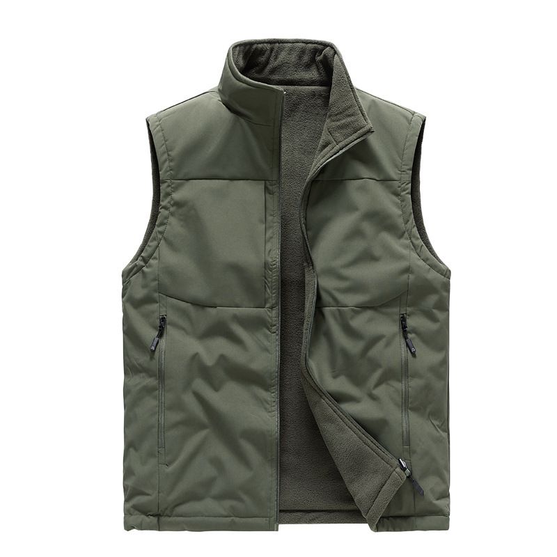 跨境秋冬款双面绒马甲男加绒宽松摇粒绒坎肩无袖背心户外工装马甲