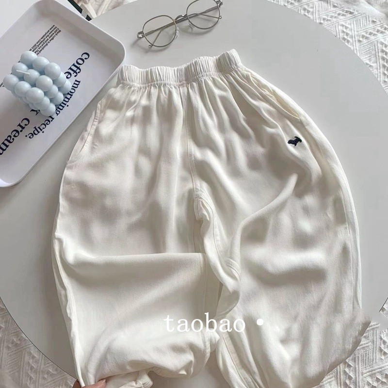 봄과 가을 어린이 바지 2025 가을 새로운 소년과 소녀 포니 자수 면 바지 아기 솔리드 컬러 캐주얼 스트레이트 다리 바지스토어 가기