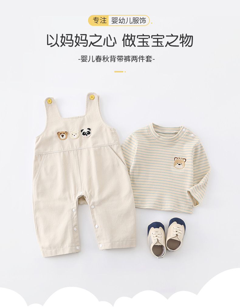 아기 봄과 가을 세트 신생아 만화 스트랩 점프 수트 아기 봄과 가을 한국 줄무늬 티셔츠 재킷스토어 가기