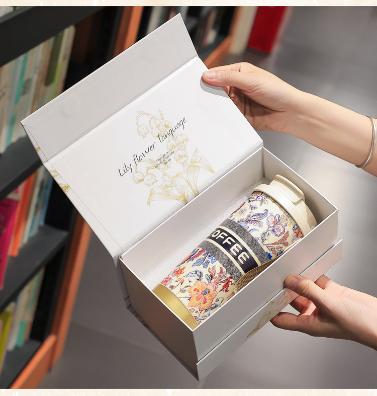 미모가 좋은 여성을 위한 보온컵 316 스테인레스 스틸 은방울꽃 커피 컵 세라믹 라이너 더블 드링크 선물 맞춤형 워터 컵
